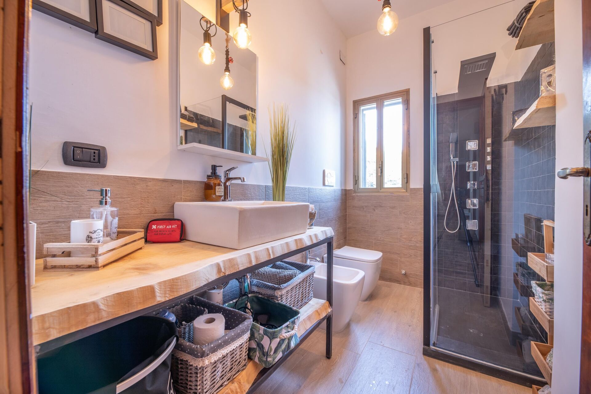 À l’extérieur de la structure: deuxième salle de bain avec douche.