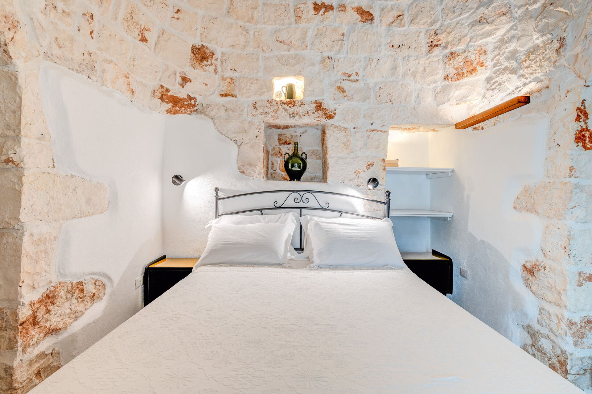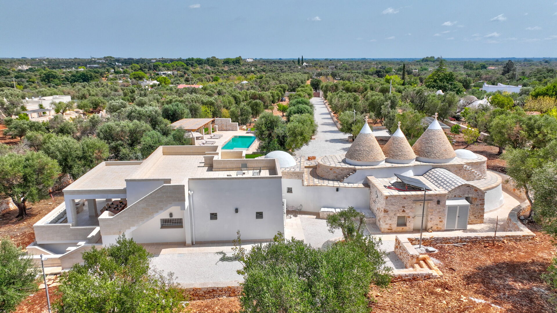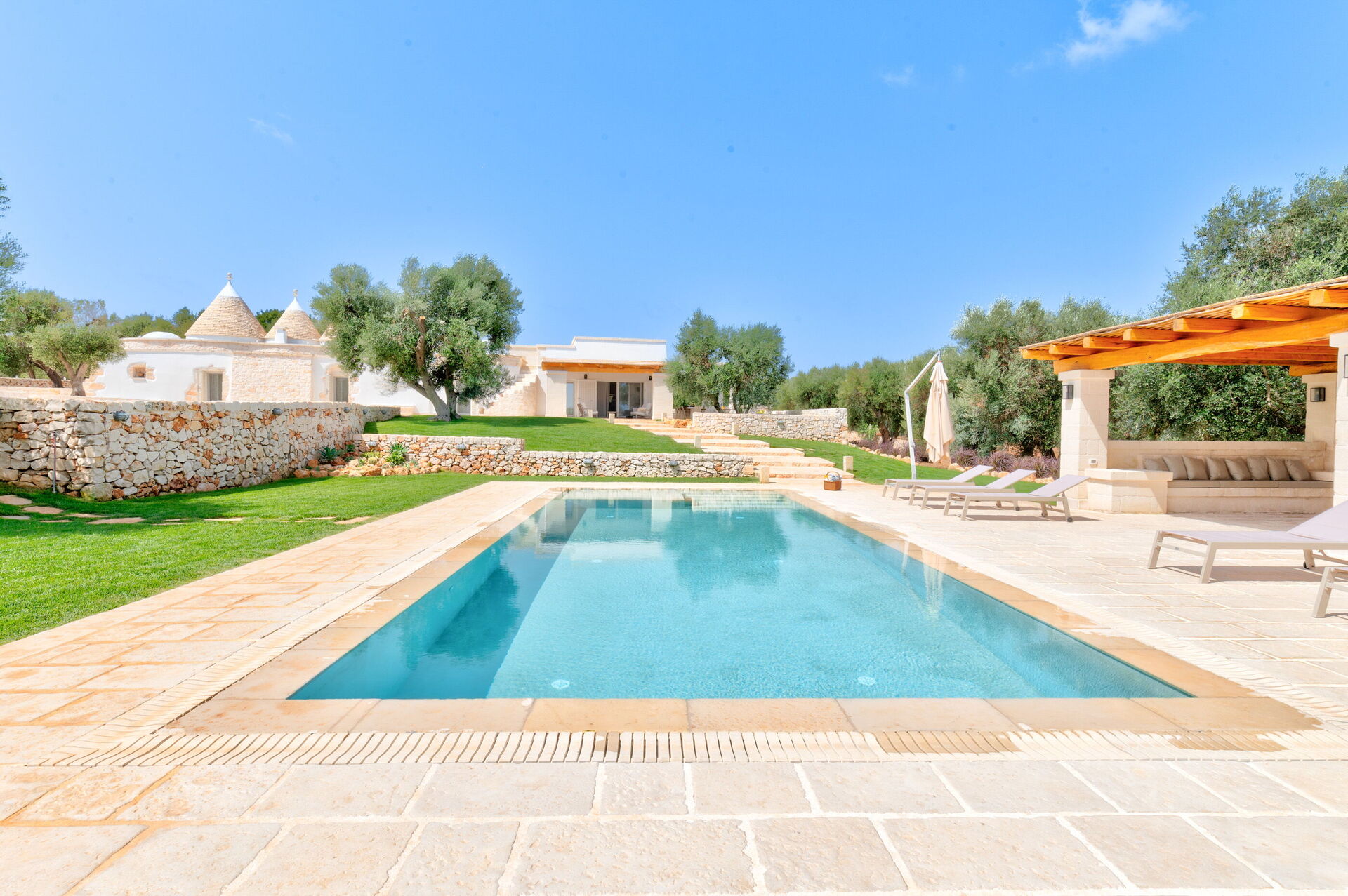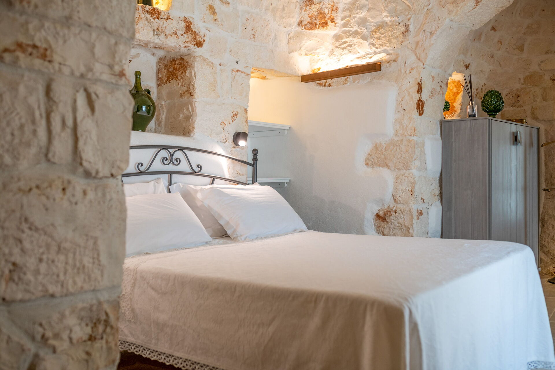 Trulli di Luccio est un trullo avec piscine privée à louer pour les vacances dans les Pouilles, dans la campagne de la célèbre "ville blanche" d'Ostuni. Cette demeure traditionnelle caractéristique des Pouilles est immergée dans un magnifique contexte rural au milieu d'oliviers centenaires ; si vous recherchez des vacances sous le signe du calme et de la nature, cette propriété est parfaite pour vos besoins. À l'intérieur, elle a été finement meublée avec goût et simplicité, créant un contraste entre le style classique et les matériaux traditionnels comme la pierre locale et le bois. Les espaces accueillants sont dotés de tout le confort et peuvent accueillir jusqu'à 6 personnes grâce aux 3 chambres. À l'extérieur, en plus d'une belle piscine à l'usage exclusif des hôtes, la propriété dispose de grands espaces pour passer des vacances en plein air : une grande véranda près de la piscine avec cuisine extérieure, barbecue et un bel espace détente sont à la disposition des clients. Trulli di Luccio est stratégiquement situé à seulement 8 km de la splendide ville d'Ostuni ("la ville blanche") ; en louant cette belle villa de vacances, vous pourrez facilement explorer les principales destinations touristiques de la région : des plages de Torre Santa Sabina et Baia dei Camerini à la réserve naturelle de Torre Guaceto, en passant par Alberobello, Locorotondo, Carovigno et Polignano a Mare.