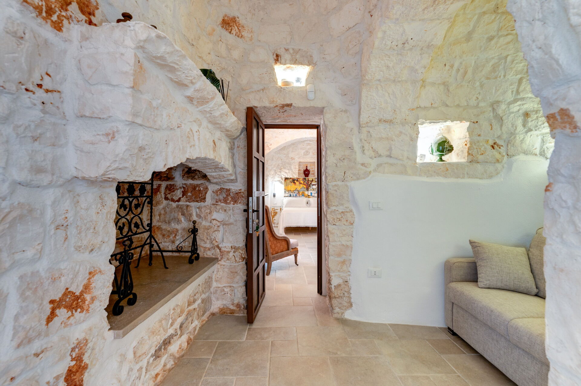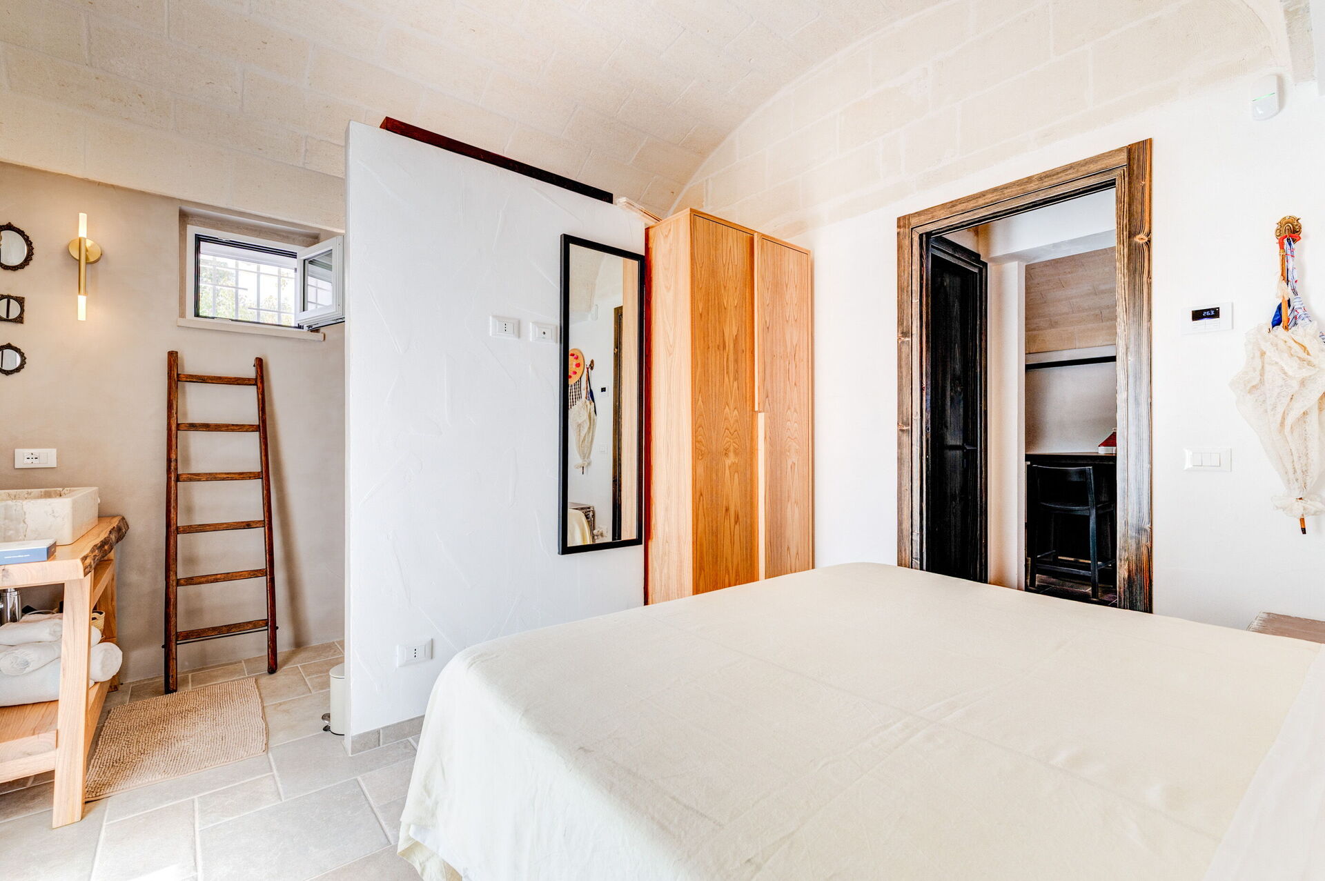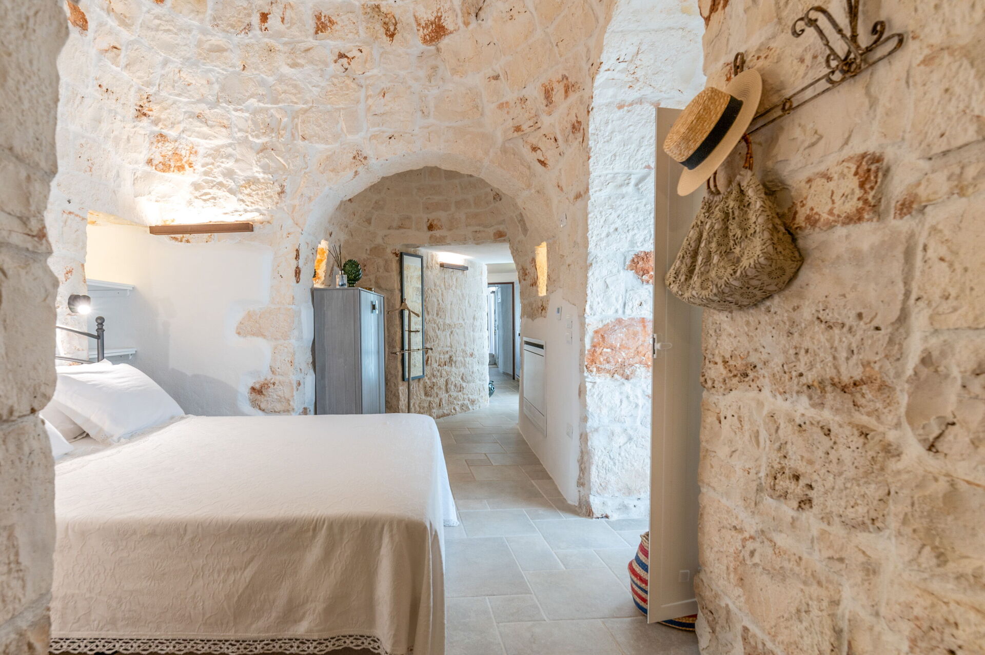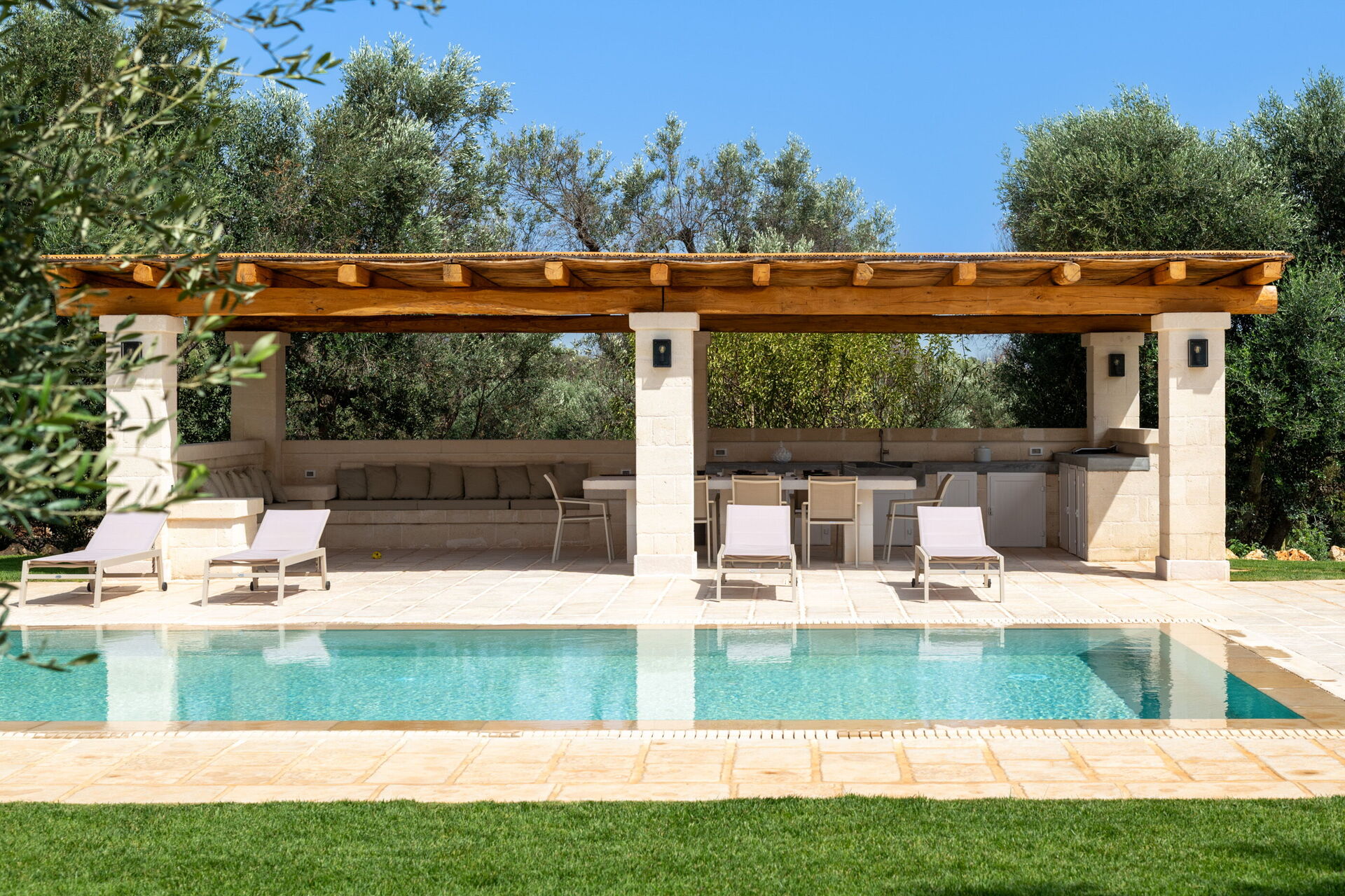 Trulli di Luccio est un trullo avec piscine privée à louer pour les vacances dans les Pouilles, dans la campagne de la célèbre "ville blanche" d'Ostuni. Cette demeure traditionnelle caractéristique des Pouilles est immergée dans un magnifique contexte rural au milieu d'oliviers centenaires ; si vous recherchez des vacances sous le signe du calme et de la nature, cette propriété est parfaite pour vos besoins. À l'intérieur, elle a été finement meublée avec goût et simplicité, créant un contraste entre le style classique et les matériaux traditionnels comme la pierre locale et le bois. Les espaces accueillants sont dotés de tout le confort et peuvent accueillir jusqu'à 6 personnes grâce aux 3 chambres. À l'extérieur, en plus d'une belle piscine à l'usage exclusif des hôtes, la propriété dispose de grands espaces pour passer des vacances en plein air : une grande véranda près de la piscine avec cuisine extérieure, barbecue et un bel espace détente sont à la disposition des clients. Trulli di Luccio est stratégiquement situé à seulement 8 km de la splendide ville d'Ostuni ("la ville blanche") ; en louant cette belle villa de vacances, vous pourrez facilement explorer les principales destinations touristiques de la région : des plages de Torre Santa Sabina et Baia dei Camerini à la réserve naturelle de Torre Guaceto, en passant par Alberobello, Locorotondo, Carovigno et Polignano a Mare.