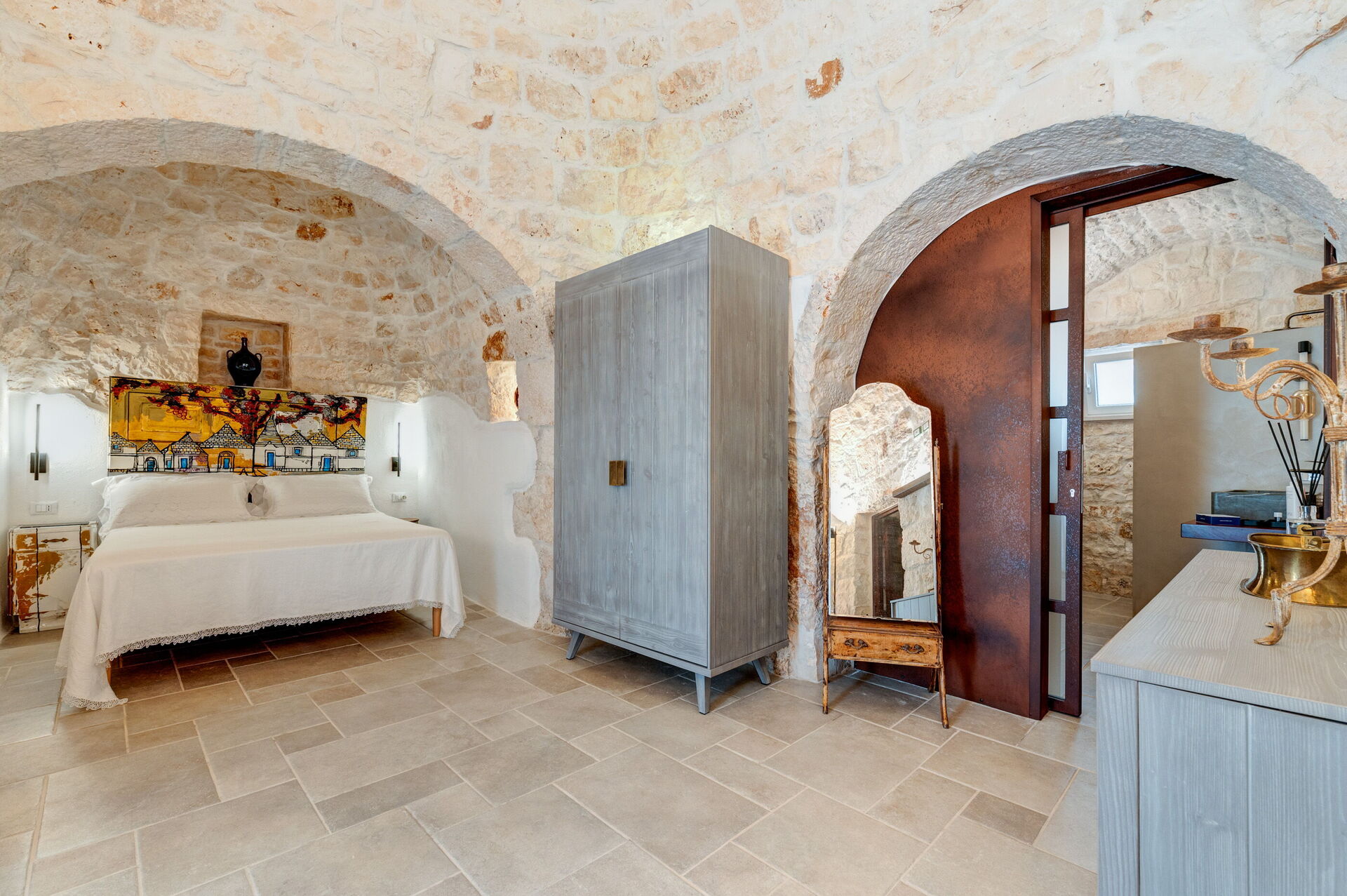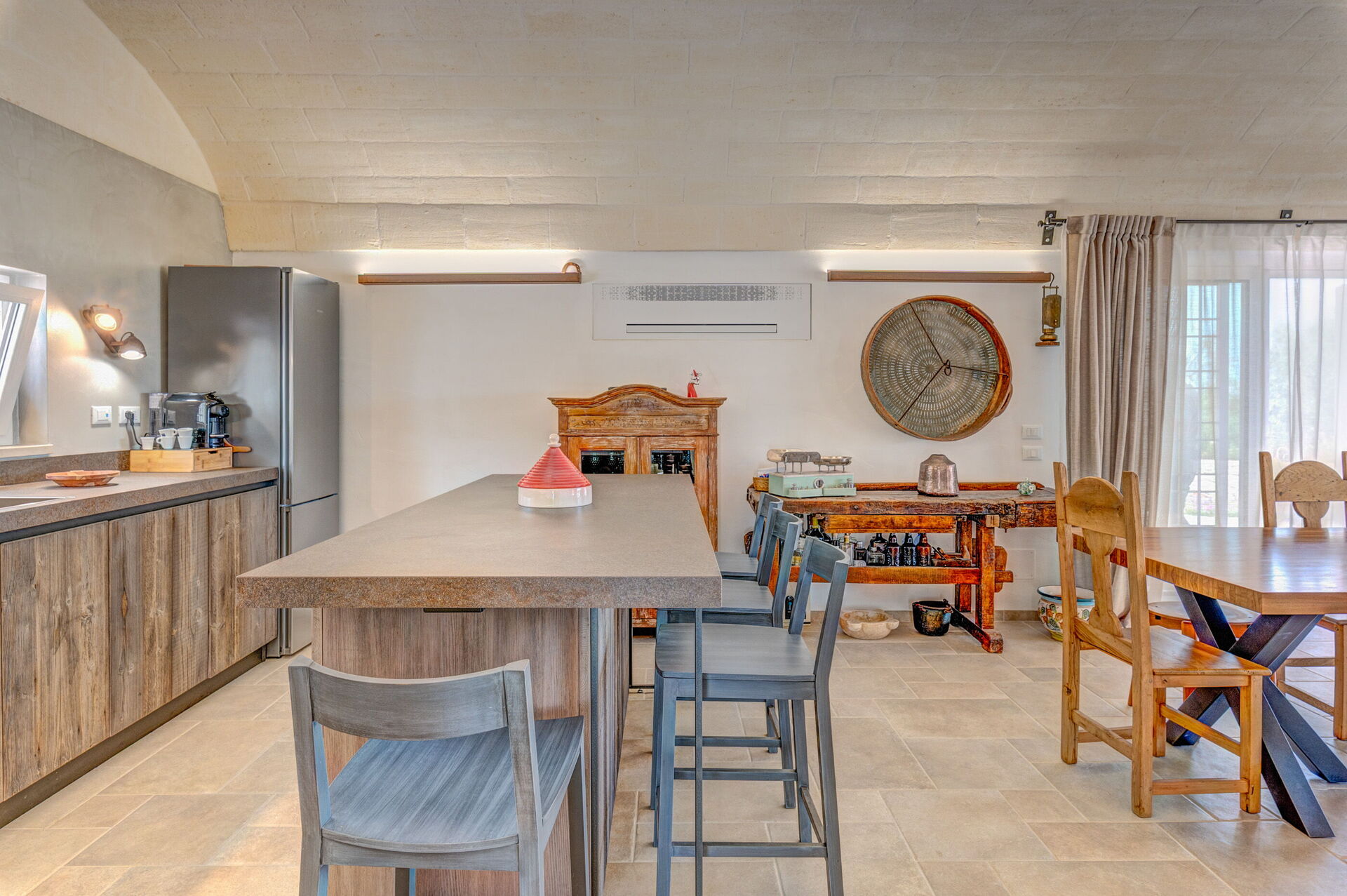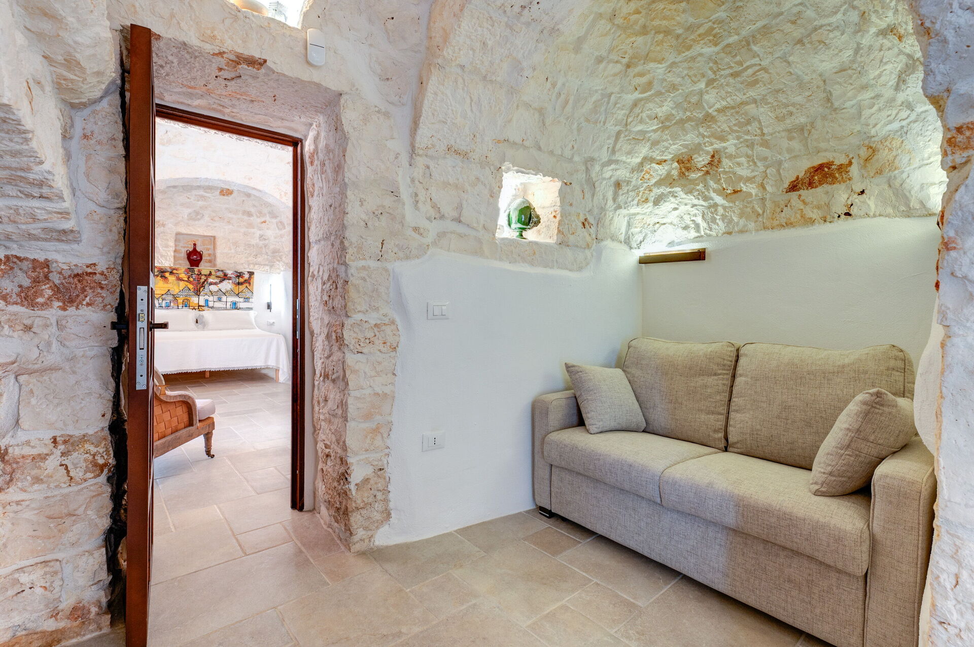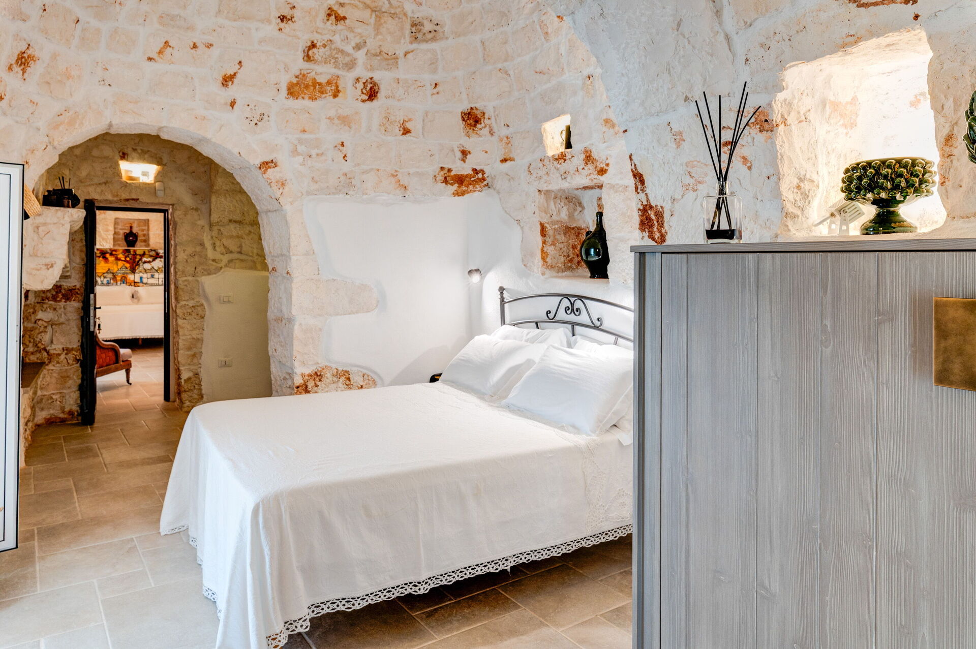 Trulli di Luccio est un trullo avec piscine privée à louer pour les vacances dans les Pouilles, dans la campagne de la célèbre "ville blanche" d'Ostuni. Cette demeure traditionnelle caractéristique des Pouilles est immergée dans un magnifique contexte rural au milieu d'oliviers centenaires ; si vous recherchez des vacances sous le signe du calme et de la nature, cette propriété est parfaite pour vos besoins. À l'intérieur, elle a été finement meublée avec goût et simplicité, créant un contraste entre le style classique et les matériaux traditionnels comme la pierre locale et le bois. Les espaces accueillants sont dotés de tout le confort et peuvent accueillir jusqu'à 6 personnes grâce aux 3 chambres. À l'extérieur, en plus d'une belle piscine à l'usage exclusif des hôtes, la propriété dispose de grands espaces pour passer des vacances en plein air : une grande véranda près de la piscine avec cuisine extérieure, barbecue et un bel espace détente sont à la disposition des clients. Trulli di Luccio est stratégiquement situé à seulement 8 km de la splendide ville d'Ostuni ("la ville blanche") ; en louant cette belle villa de vacances, vous pourrez facilement explorer les principales destinations touristiques de la région : des plages de Torre Santa Sabina et Baia dei Camerini à la réserve naturelle de Torre Guaceto, en passant par Alberobello, Locorotondo, Carovigno et Polignano a Mare.