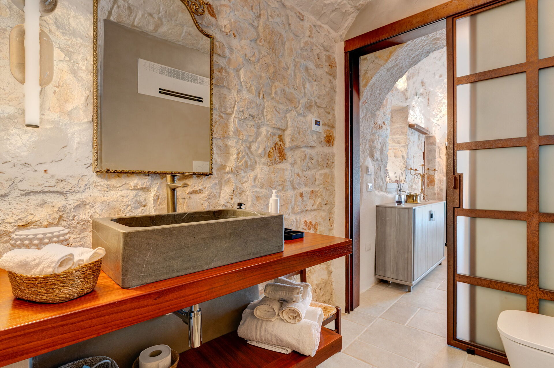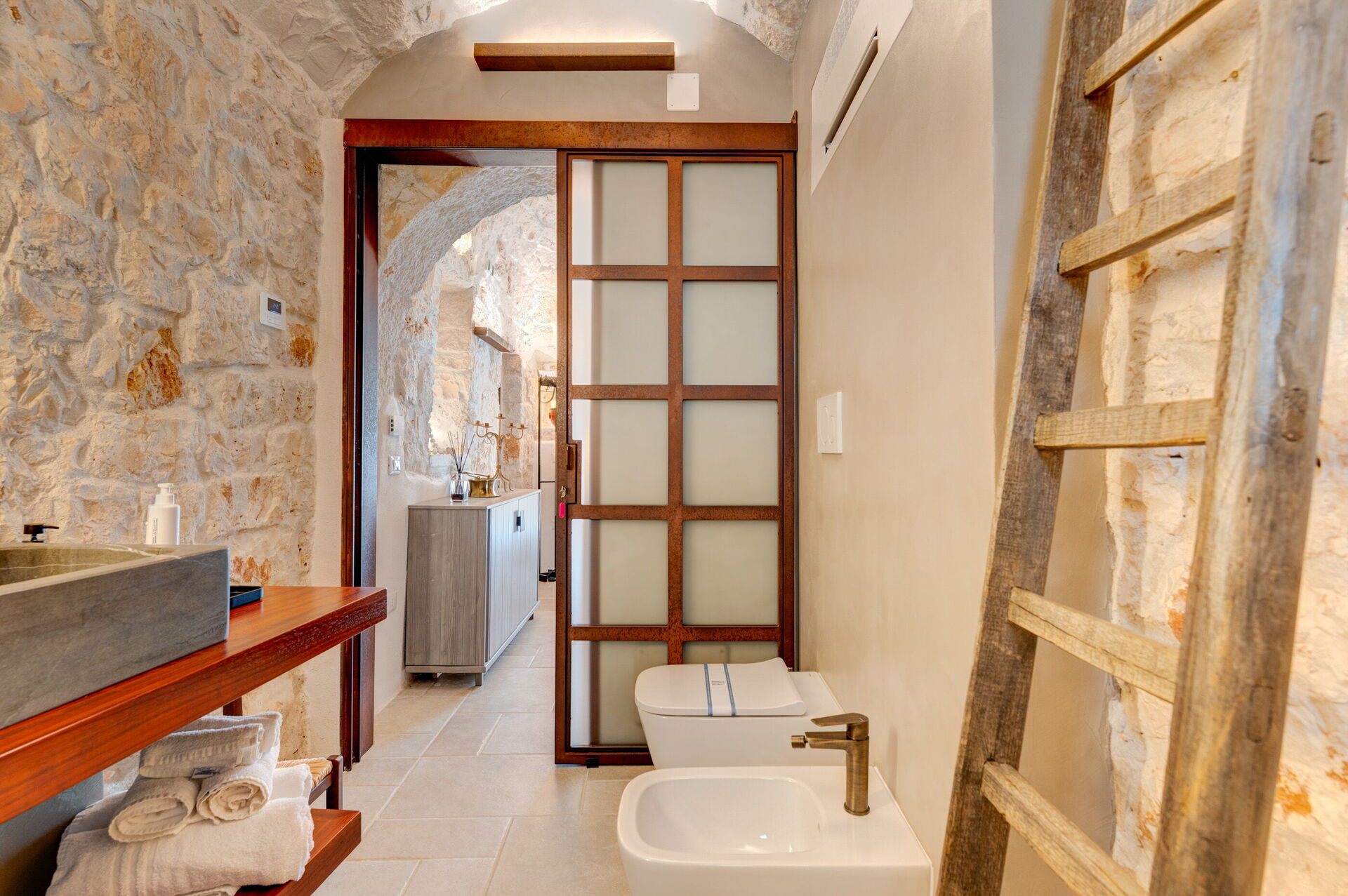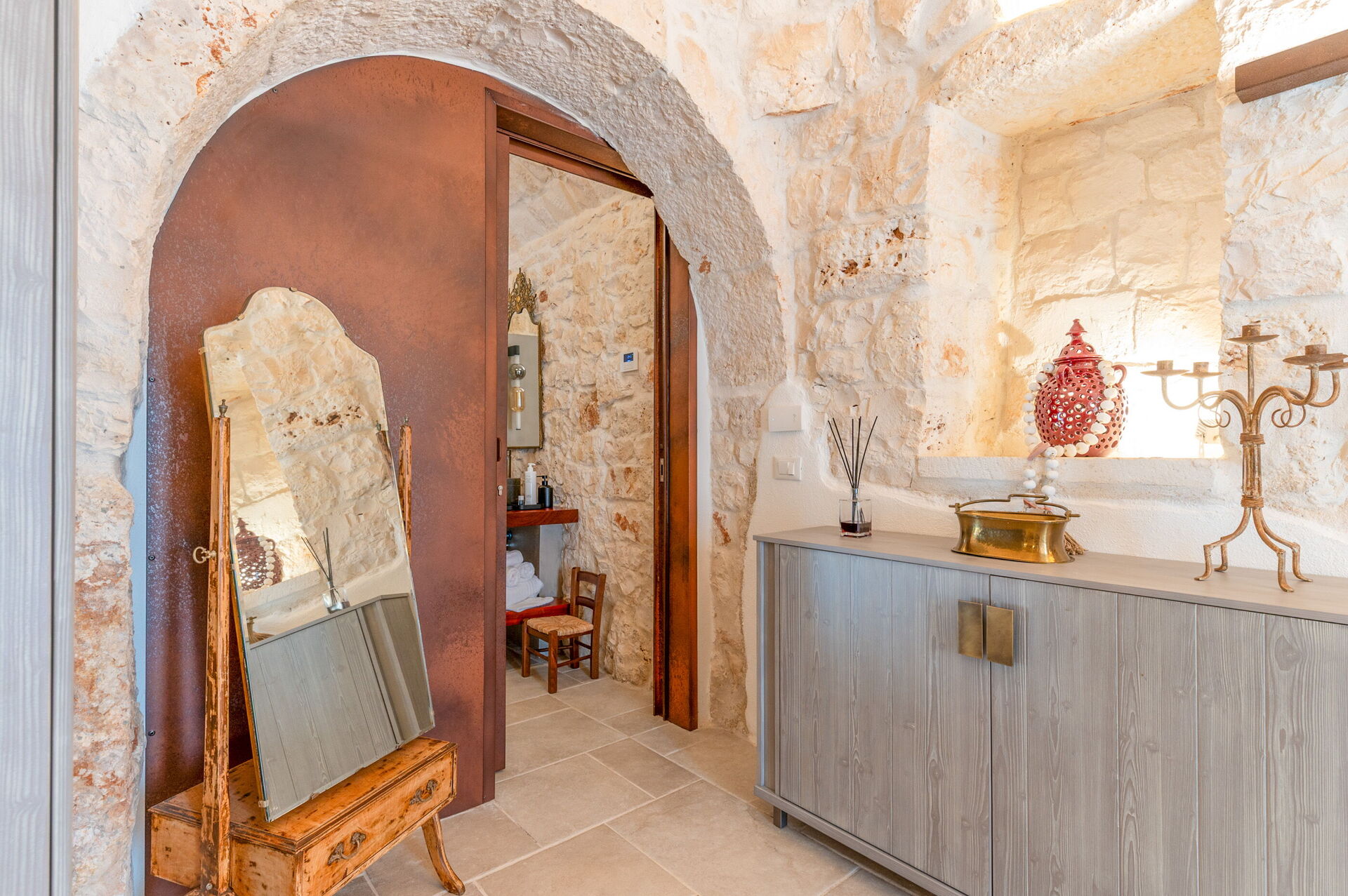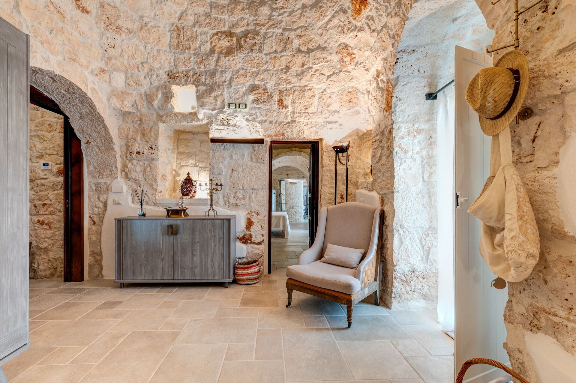 Trulli di Luccio est un trullo avec piscine privée à louer pour les vacances dans les Pouilles, dans la campagne de la célèbre "ville blanche" d'Ostuni. Cette demeure traditionnelle caractéristique des Pouilles est immergée dans un magnifique contexte rural au milieu d'oliviers centenaires ; si vous recherchez des vacances sous le signe du calme et de la nature, cette propriété est parfaite pour vos besoins. À l'intérieur, elle a été finement meublée avec goût et simplicité, créant un contraste entre le style classique et les matériaux traditionnels comme la pierre locale et le bois. Les espaces accueillants sont dotés de tout le confort et peuvent accueillir jusqu'à 6 personnes grâce aux 3 chambres. À l'extérieur, en plus d'une belle piscine à l'usage exclusif des hôtes, la propriété dispose de grands espaces pour passer des vacances en plein air : une grande véranda près de la piscine avec cuisine extérieure, barbecue et un bel espace détente sont à la disposition des clients. Trulli di Luccio est stratégiquement situé à seulement 8 km de la splendide ville d'Ostuni ("la ville blanche") ; en louant cette belle villa de vacances, vous pourrez facilement explorer les principales destinations touristiques de la région : des plages de Torre Santa Sabina et Baia dei Camerini à la réserve naturelle de Torre Guaceto, en passant par Alberobello, Locorotondo, Carovigno et Polignano a Mare.