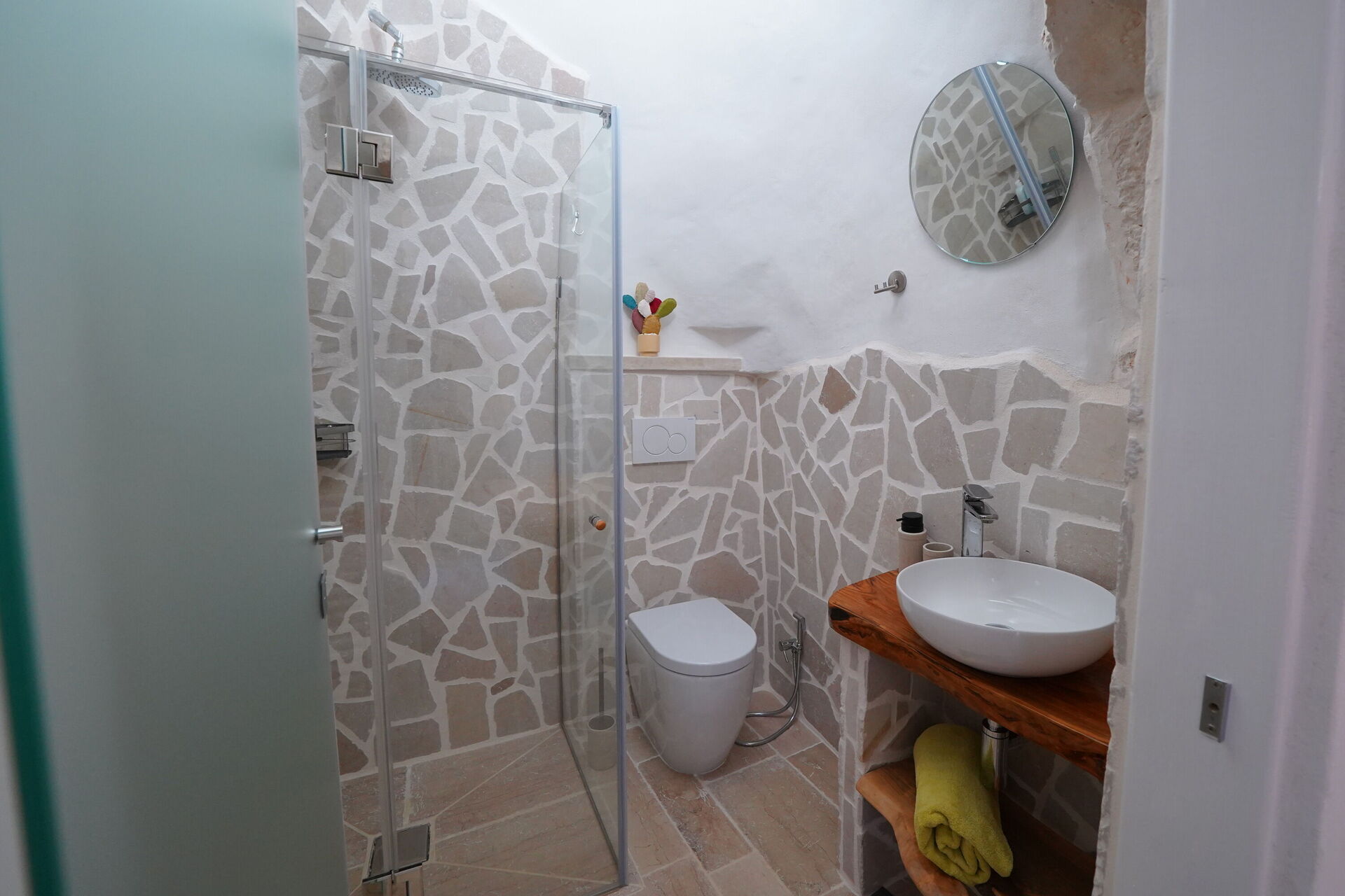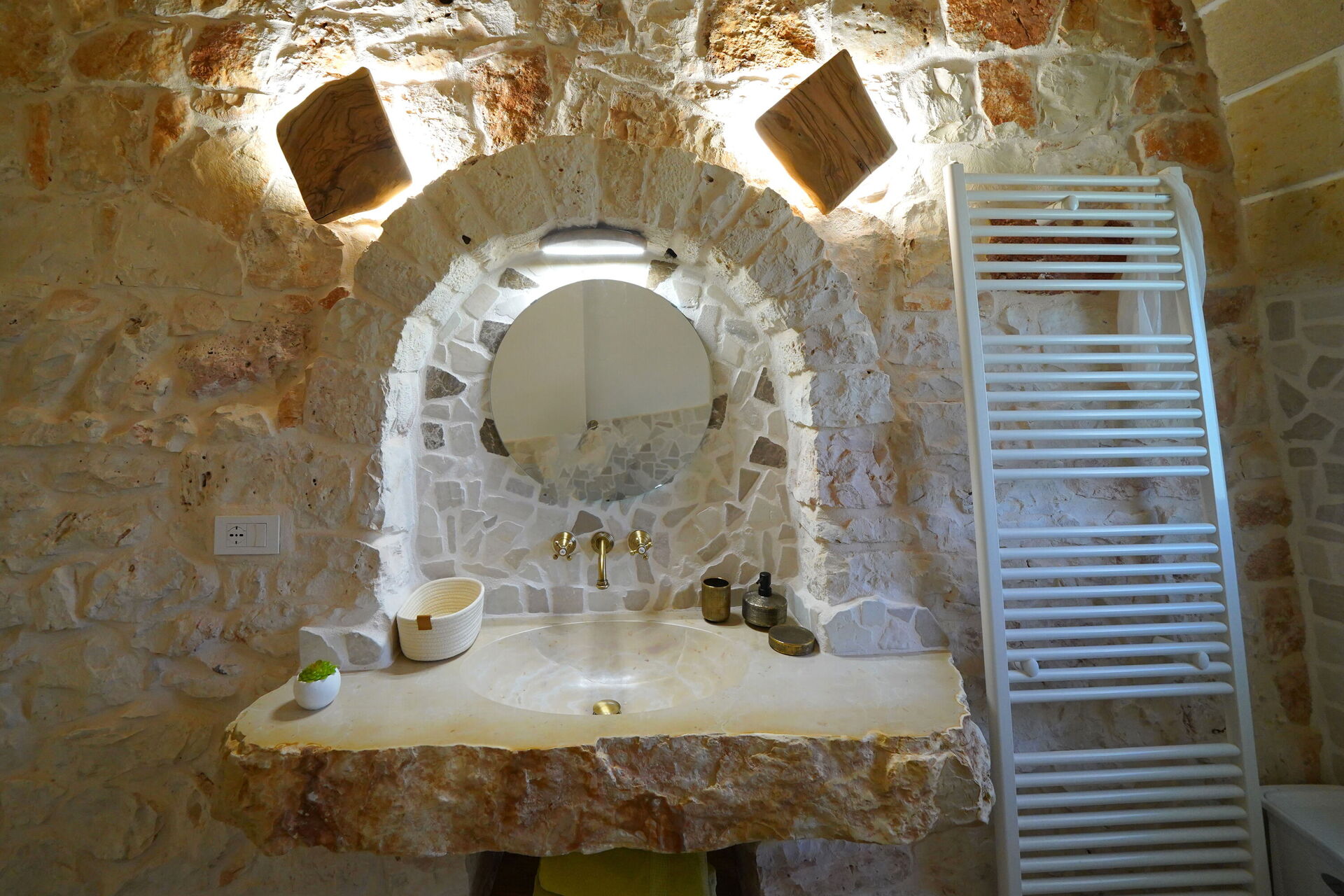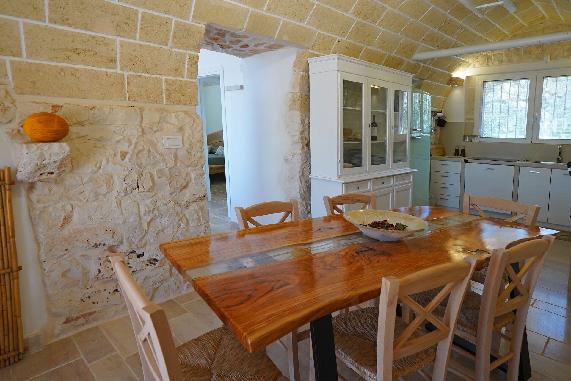 Trullo Samanta est complètement indépendant et a été récemment rénové (octobre 2025): à l’intérieur, la propriété à louer a été aménagée avec goût et simplicité, créant un contraste entre le style moderne et la tradition des matériaux utilisés tels que la pierre et le bois d’olivier, typiques des trulli du Salento. Ses espaces accueillants sont dotés de tout confort et peuvent accueillir jusqu’à 6/7 personnes grâce à 3 chambres.