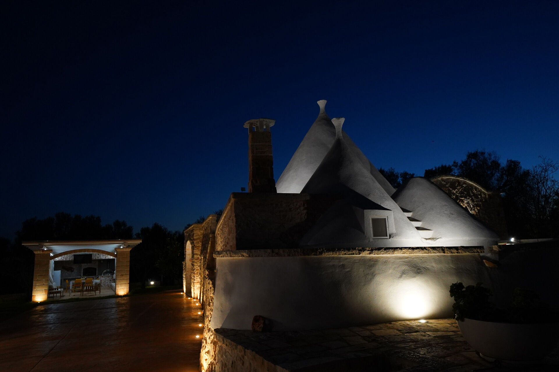À l’extérieur, Trullo Samanta est entouré d’un vaste terrain très soigné avec des arbres fruitiers et des oliviers.