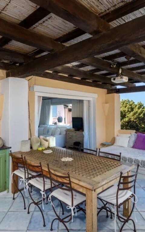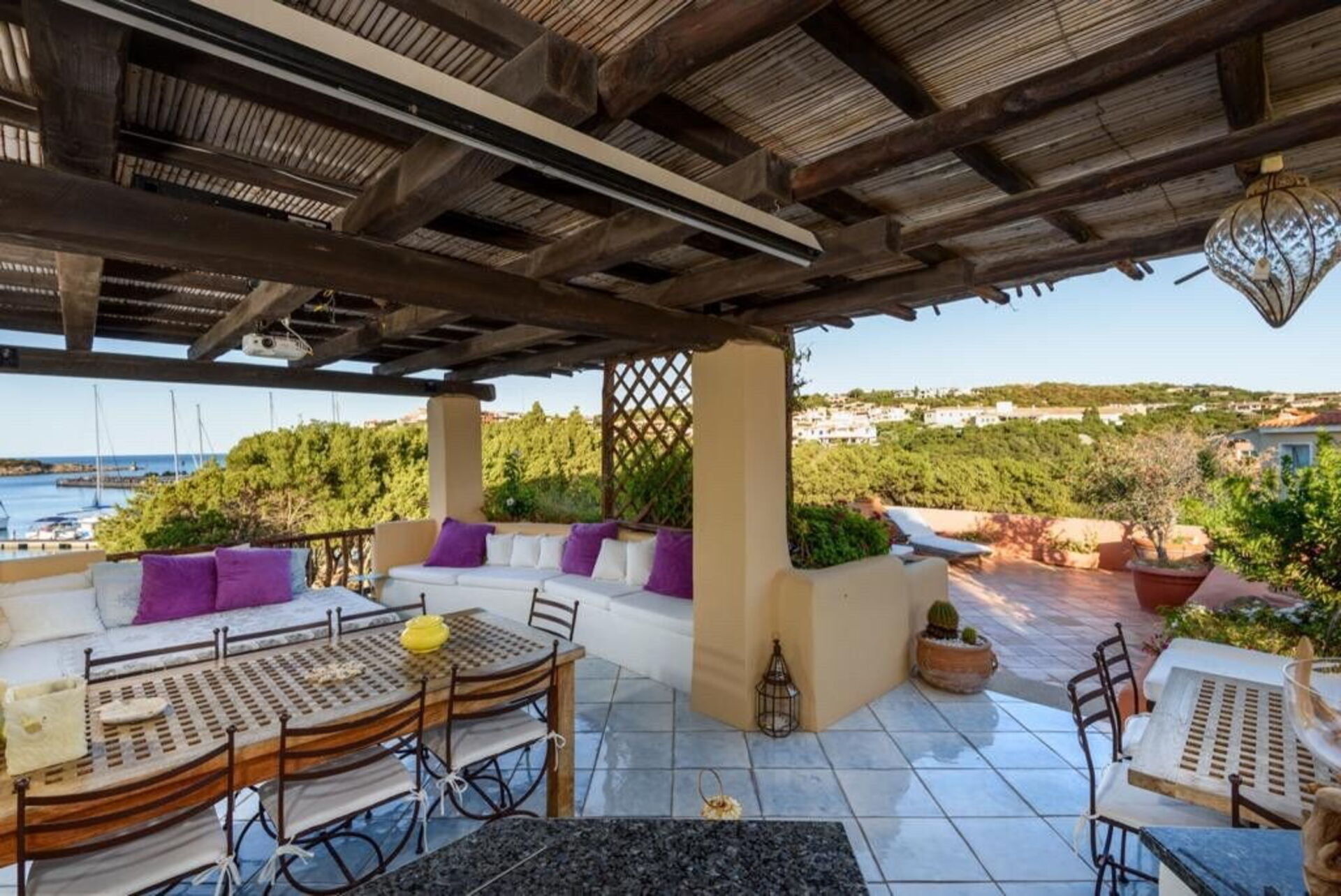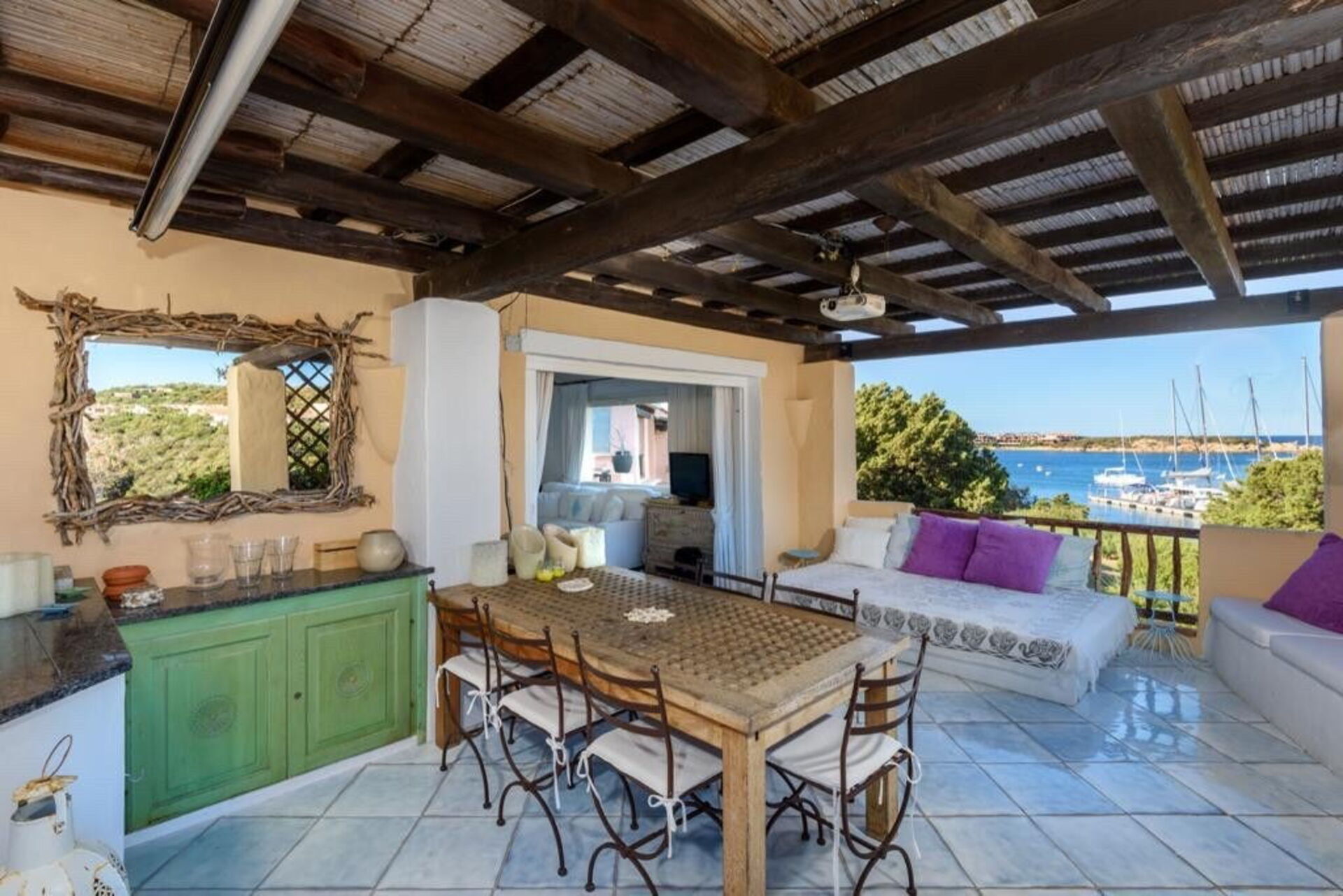 L’appartement dispose d'une véranda panoramique couverte et équipée avec table et chaises pour manger en plein air et profiter d'une agréable vue sur l'ancien quai de la baie de Porto Cervo.