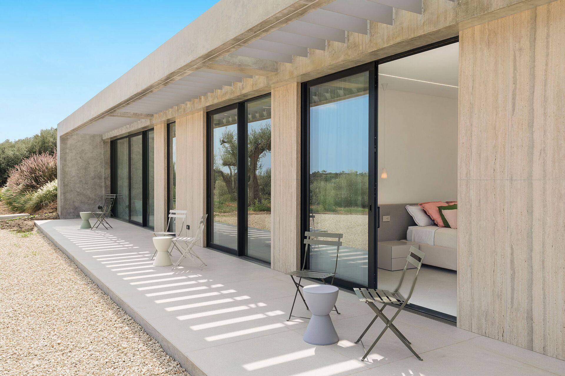 Les chambres sont très lumineuses et disposent toutes d’un accès vers l’extérieur (même celles situées au niveau inférieur).
