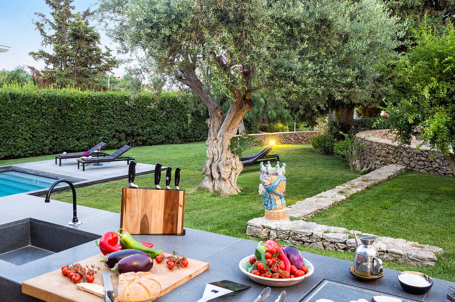 Villa Profumo d’Oriente est accessible par une allée en pierre et est immergée dans un jardin de plantes méditerranéennes où se trouve également une belle piscine chauffée jusqu’à environ 26°. C’est l’endroit idéal pour passer des journées sous le soleil italien au bord de la piscine en compagnie de vos amis et de vos proches!