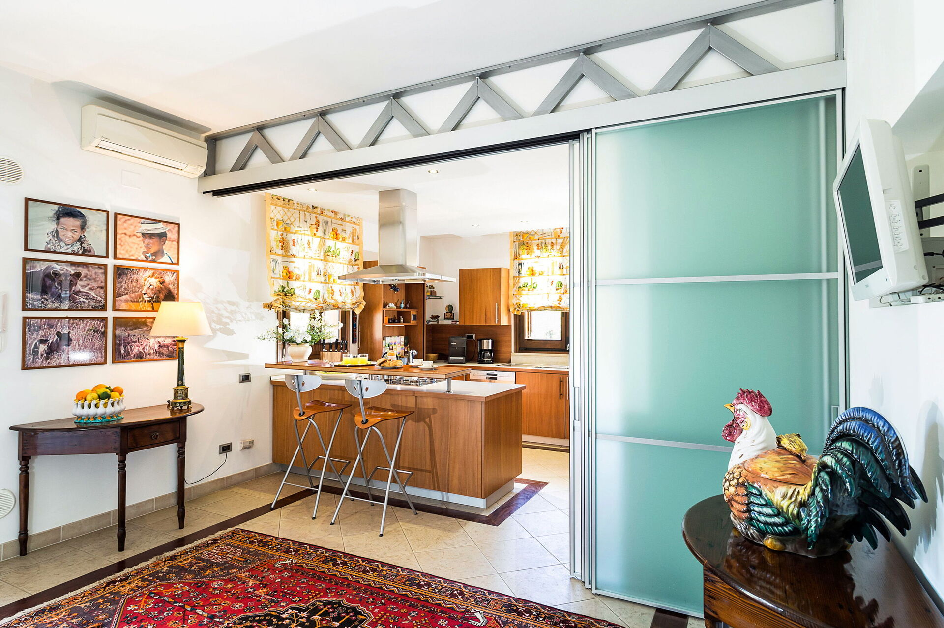 Cette charmante villa se développe sur 3 niveaux (dont 1 aménagé en mansarde) et a été meublée avec goût dans un style moderne agrémenté d’éléments et de compléments de mobilier évoquant l’exotisme oriental; elle peut accueillir confortablement jusqu’à 8 personnes grâce à ses 4 chambres et à ses espaces communs dotés de tout confort.