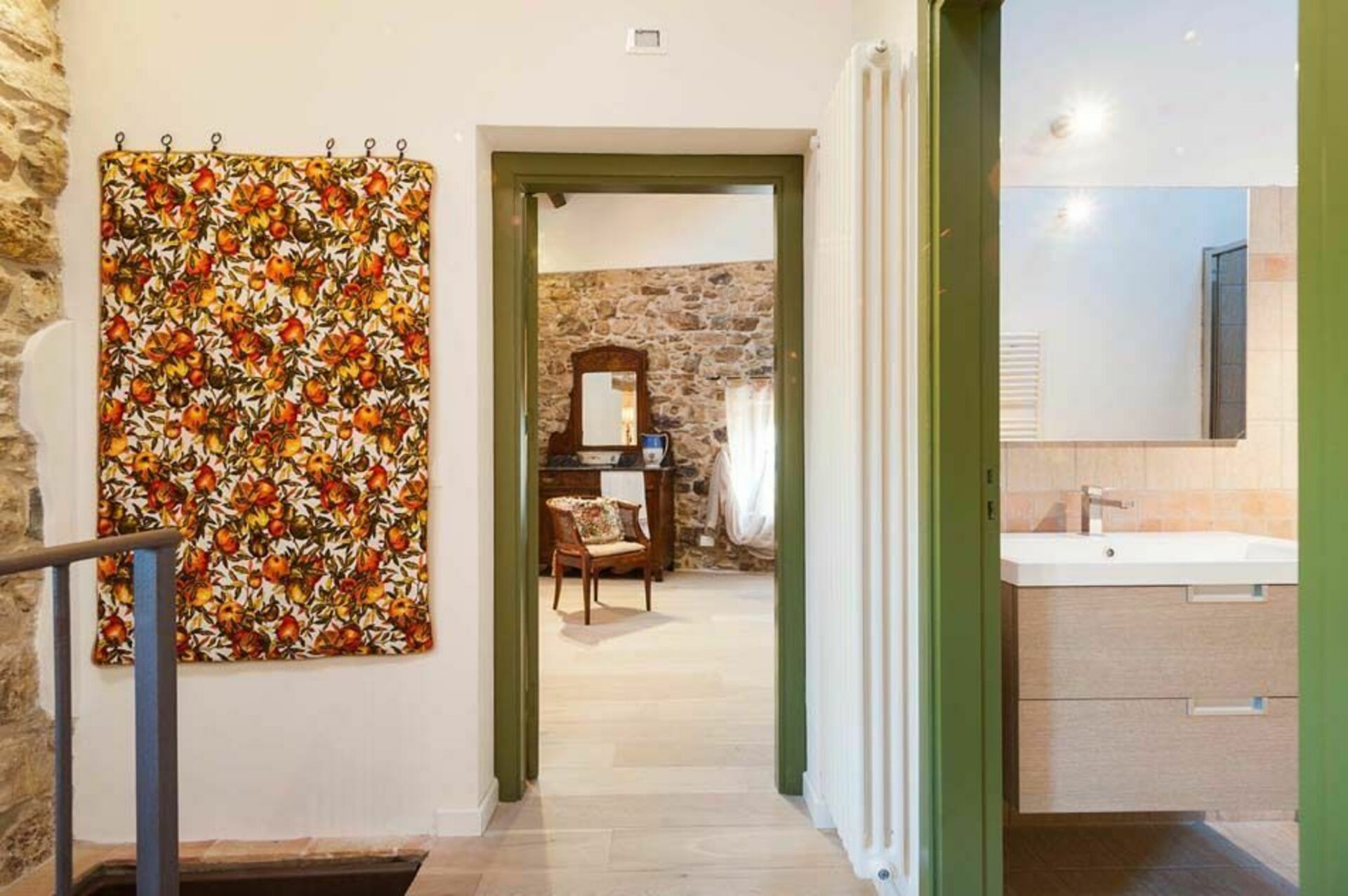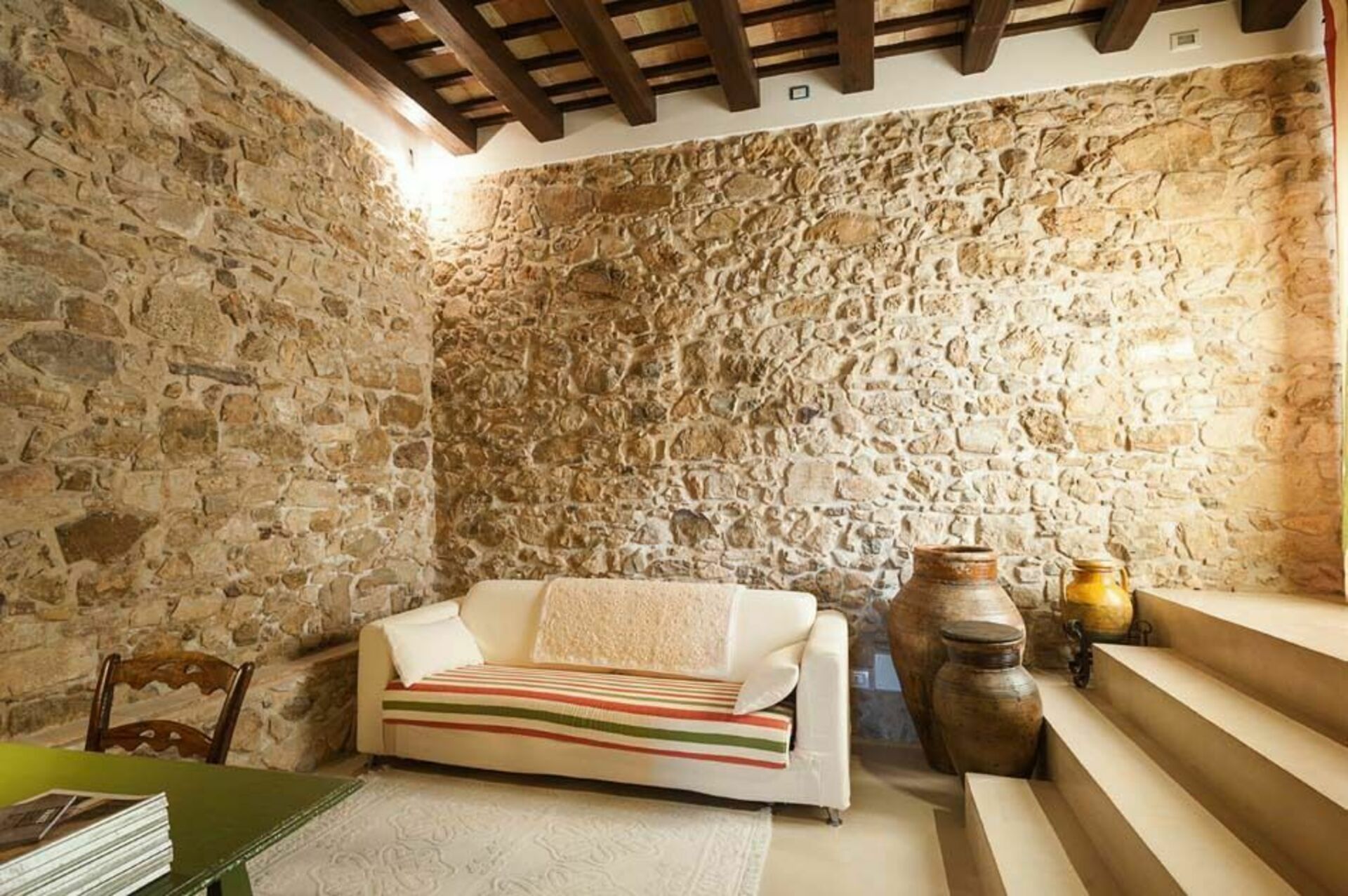 Ameublement de style sicilien avec des éléments modernes. Mélange savamment dosé et en parfaite harmonie avec le cadre. La maison se compose d’un accueillant séjour avec cheminée, une belle cuisine bien équipée avec accès sur une terrasse, 2 confortables chambres doubles, une chambre de passage avec 2 lits à une place et 2 salles de bains modernes. La position géographique de la propriété permet de découvrir les principaux centres d’intérêt de la région comme la station balnéaire de San Vito Lo Capo, la Réserve dello Zingaro, les rochers de Scopello, le bourg médiéval de l’Erice, le temple grec de Ségeste, Trapani, Marsala, Mozia et les îles Egades. Cette partie de la Sicile est idéale pour les amateurs d’art, d’histoire, de culture, de nature, de gastronomie régionale et de bons vins du terroir. Baglio Maranzano - Marietta offre une belle piscine où passer d’agréables moments en famille ou entre amis, une belle cheminée pour de romantiques soirées au coin du feu. Piscine en commun (12 x 4m – prof. : 1,20/1,80m).