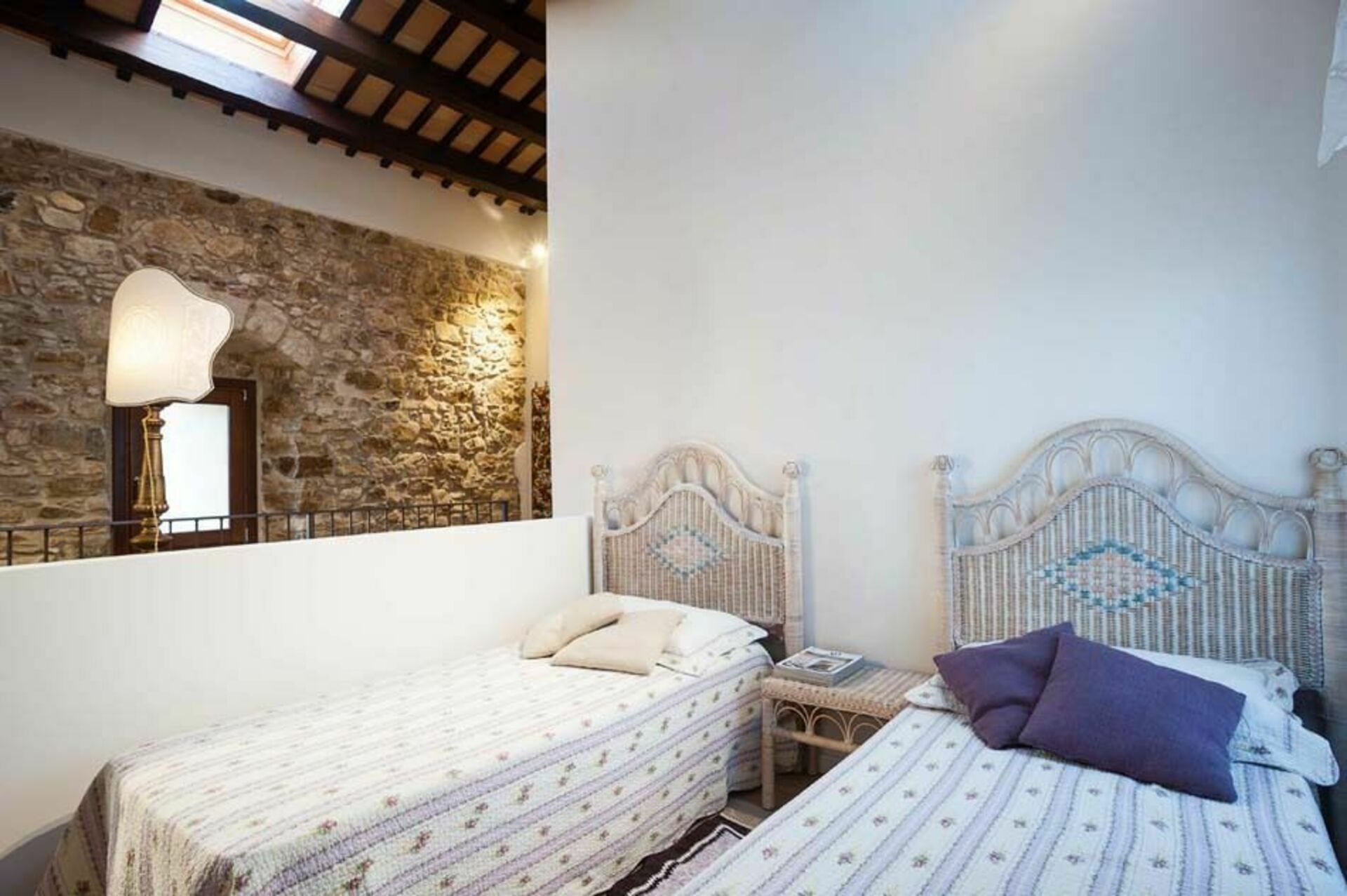 Premier étage : 2 chambres doubles, une chambre de passage avec 2 lits à une place, salle de bains avec douche.