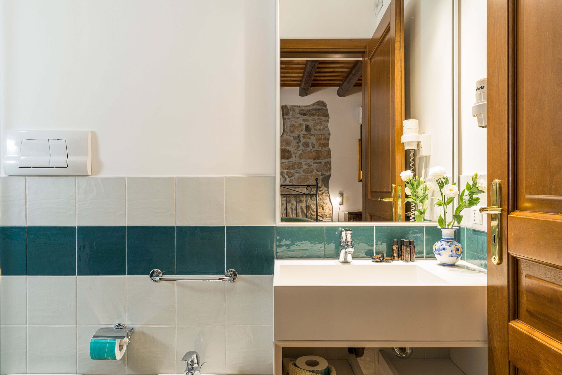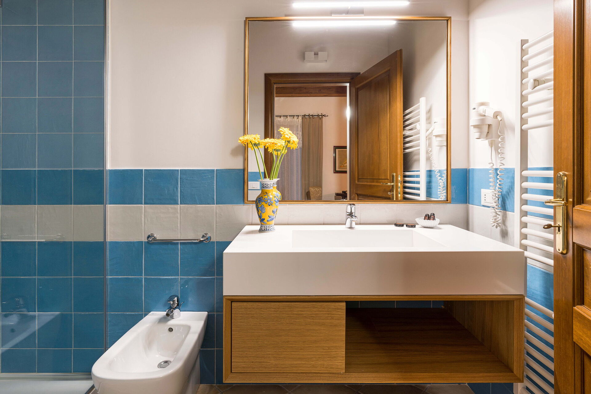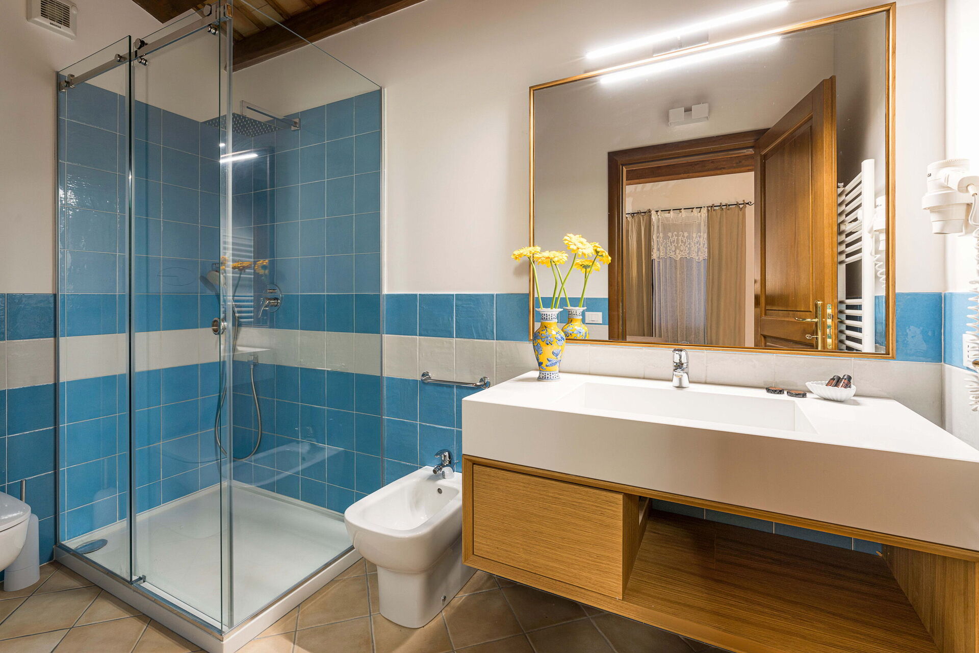Premier étage : salon de thé avec coin-cuisson, une chambre double avec lit supplémentaire à une place et salle de bains privée avec douche, 2 chambres doubles avec salle de bains privée avec douche, 2 chambres avec un lit à une place et demie et salle de bains privée avec douche.