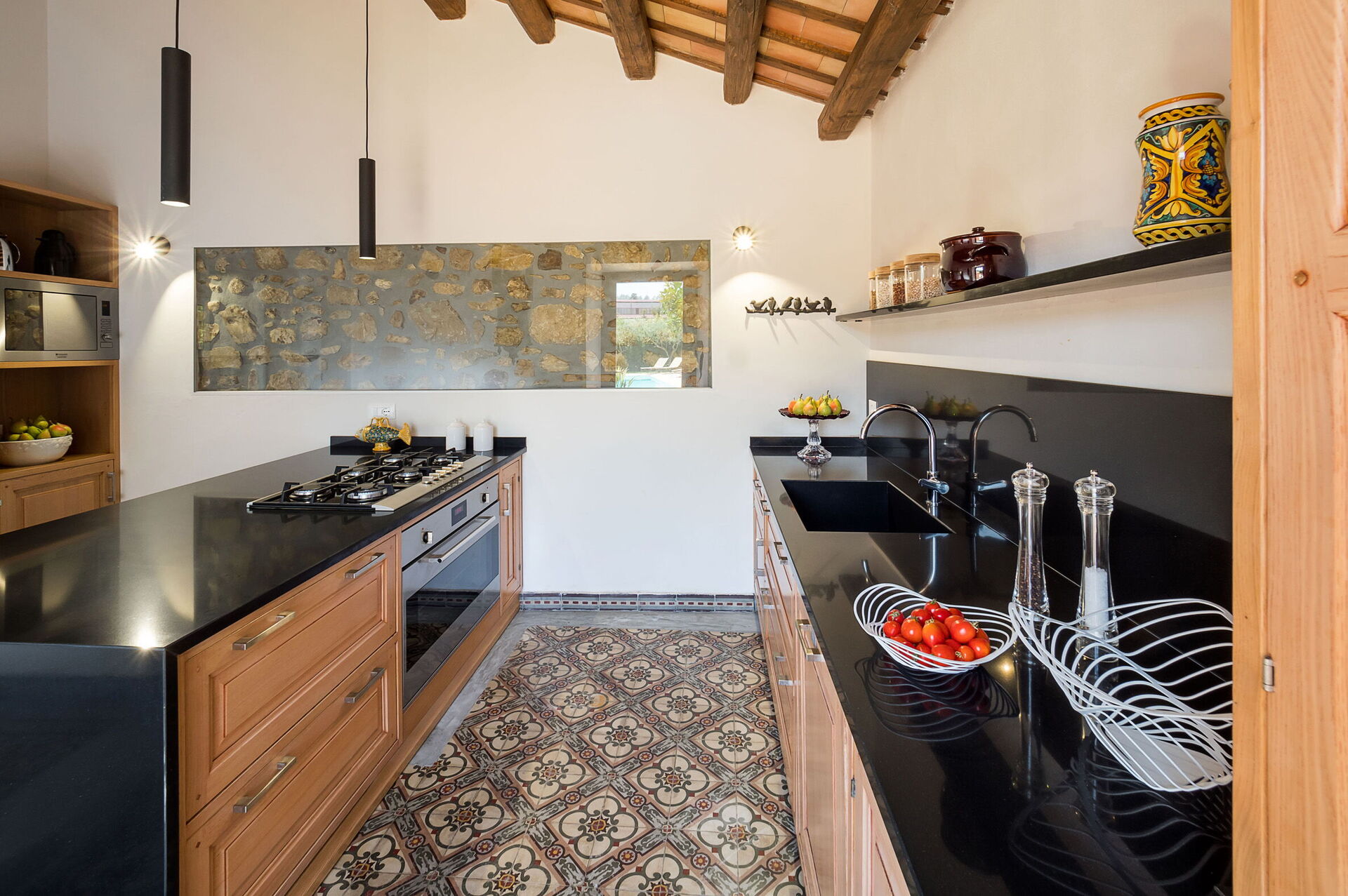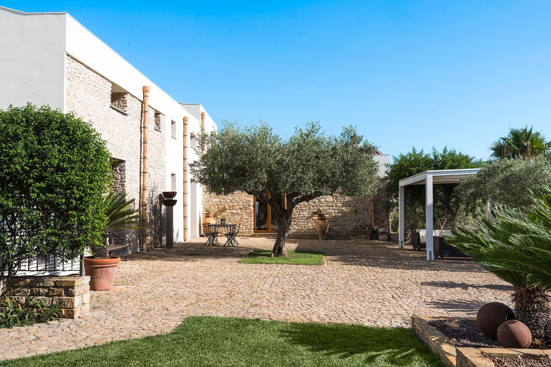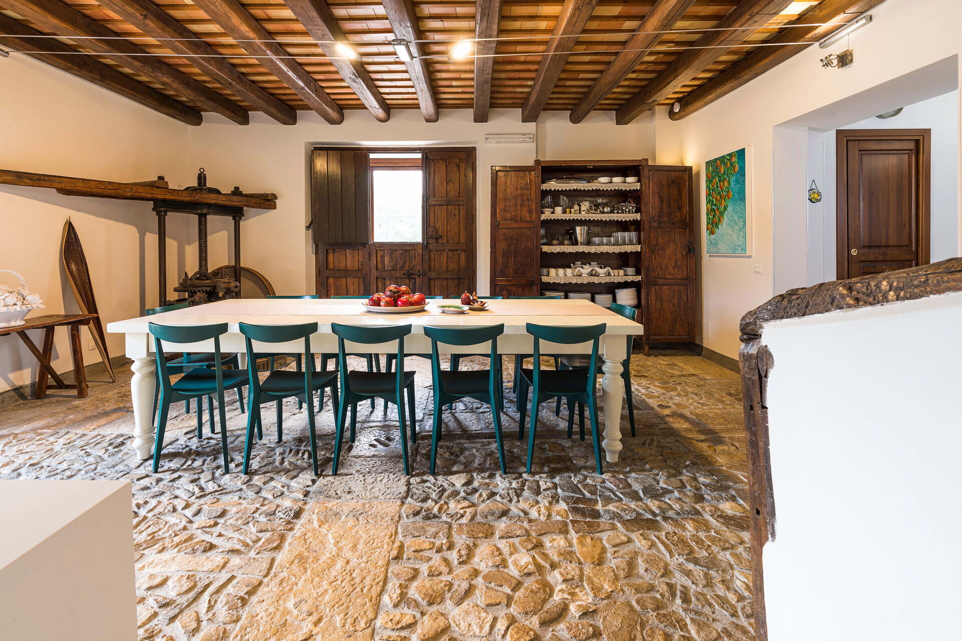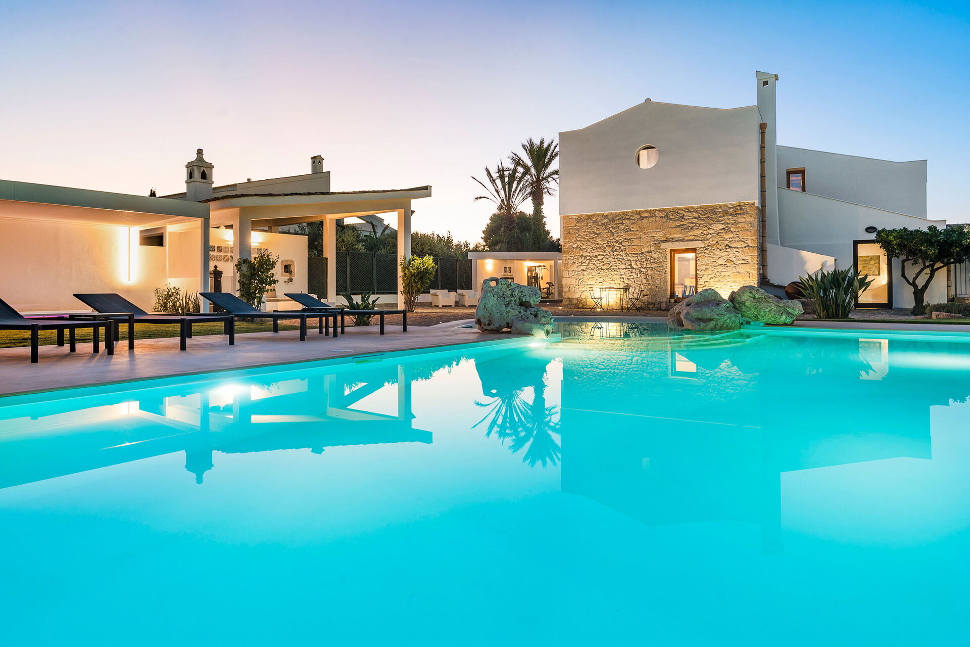Les intérieurs, projetés avec soin, sont accueillants et confortables. Ameublement moderne avec quelques pièces d’antiquité en parfaite harmonie avec le cadre. Toutes les chambres à coucher disposent d’une salle de bains privée et sont équipées avec air conditionné, minibar et télévision LCD. Cette propriété convient à un groupe d’amis ou à des vacances en famille. Services extra personnalisés comme transferts, location de voitures et bateaux, aide domestique, baby-sitter, traitements du corps, visites guidées, buffet de bienvenue, service petit déjeuner, cuisinier à domicile.
