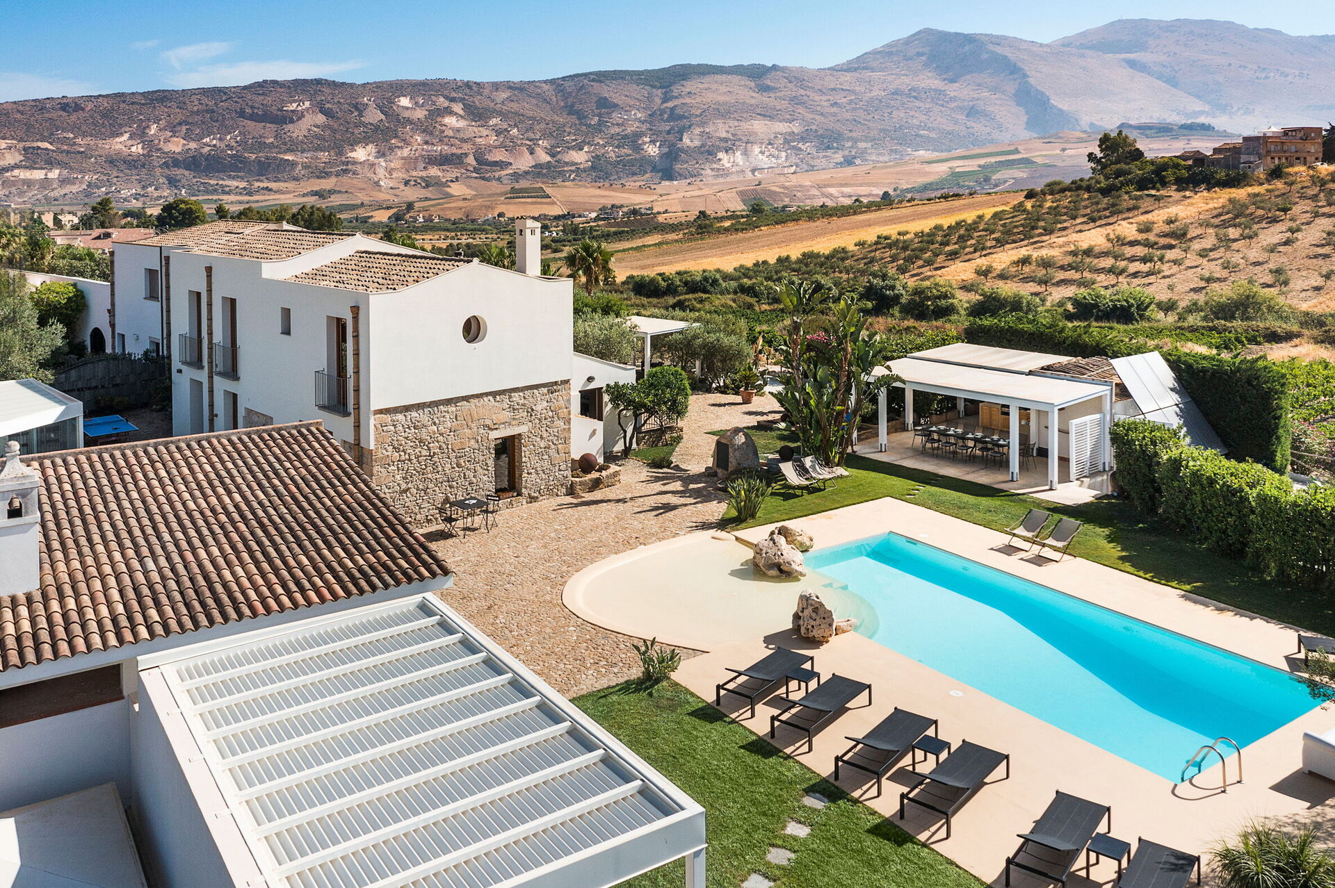 Belle villa avec piscine privée à l’extérieur de Buseto Palazzolo, petit village au sommet d’une colline à 20km de Trapani.