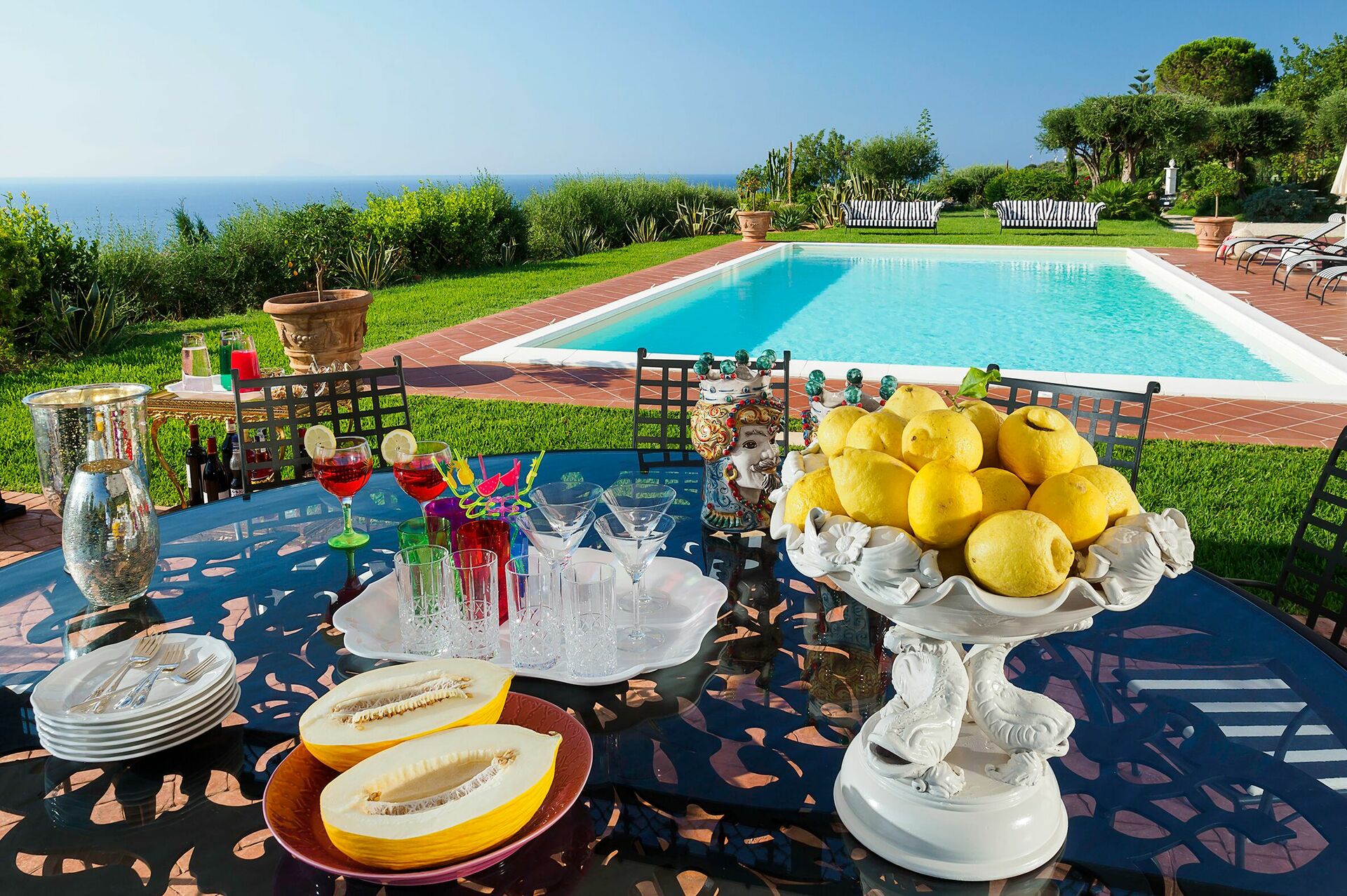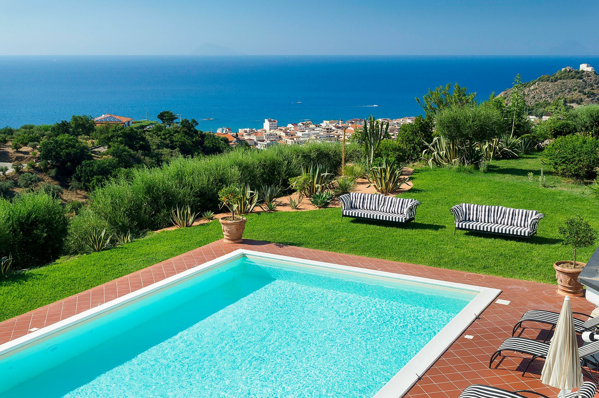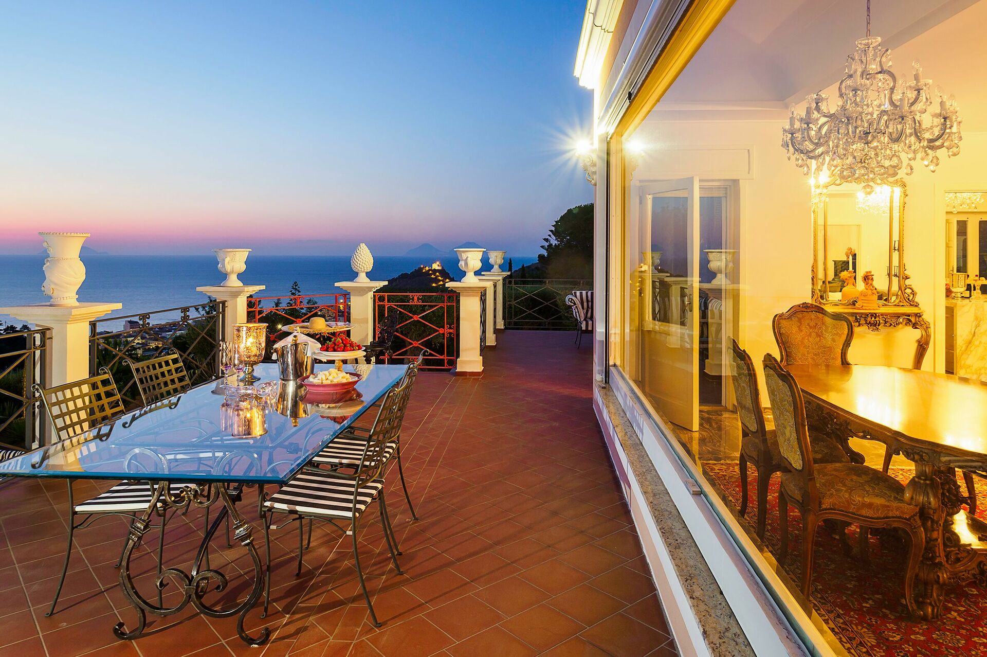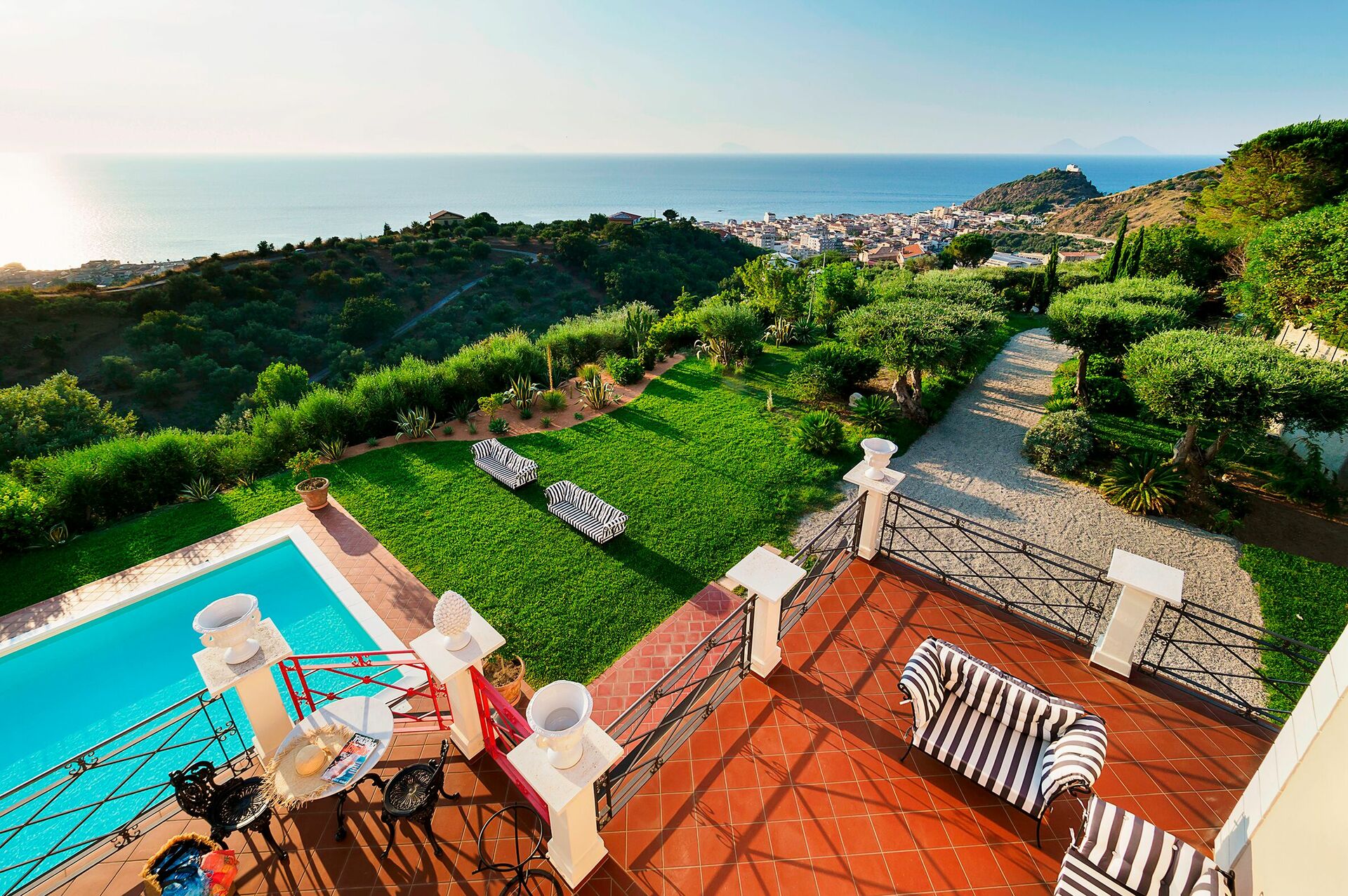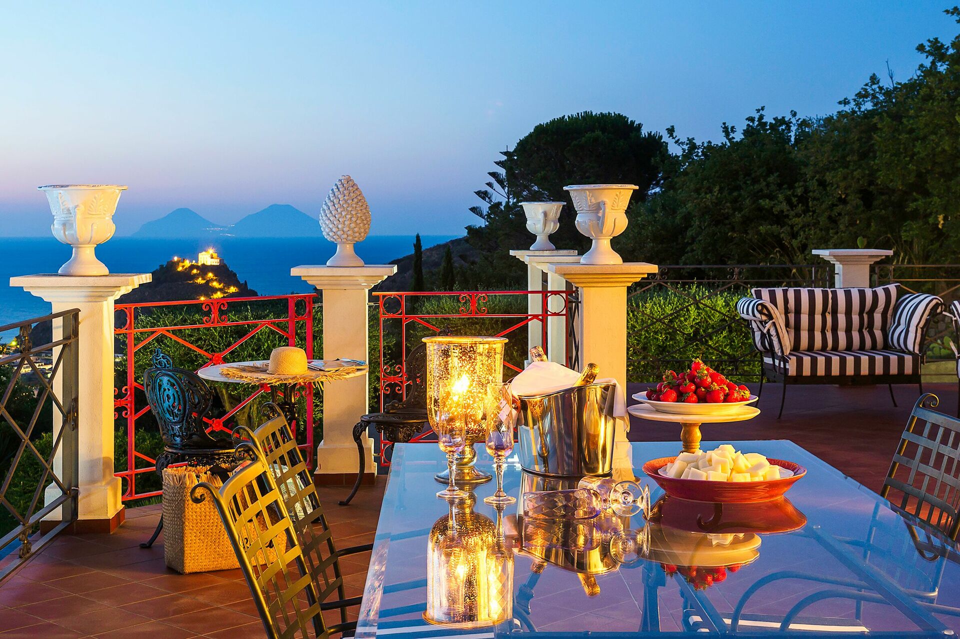 Située en position tranquille, ensoleillée et panoramique, Villa Estella jouit d’une magnifique vue sur la mer et les îles Éoliennes, notamment au coucher du soleil, de l’exclusive piscine, du luxuriant jardin et de ses grandes terrasses.