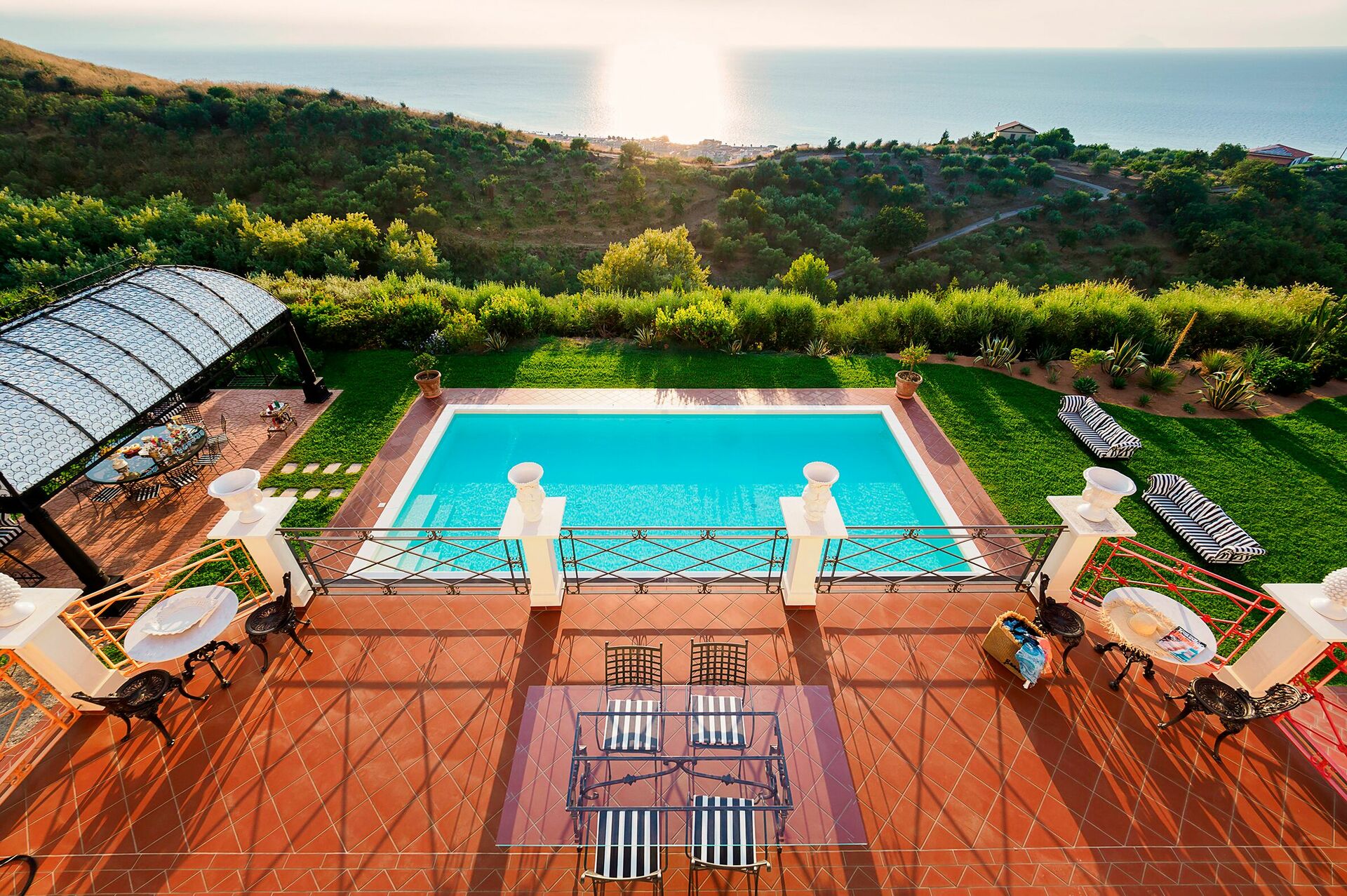 Villa Estella est une luxueuse villa avec piscine privée en location en Sicile aux alentours de Capo d'Orlando, fameuse station balnéaire sur la côte nord de l'île.