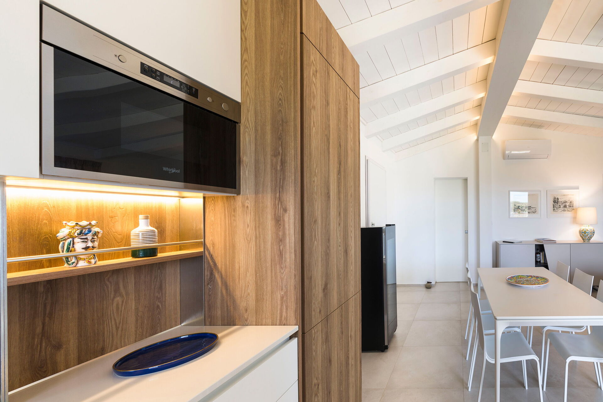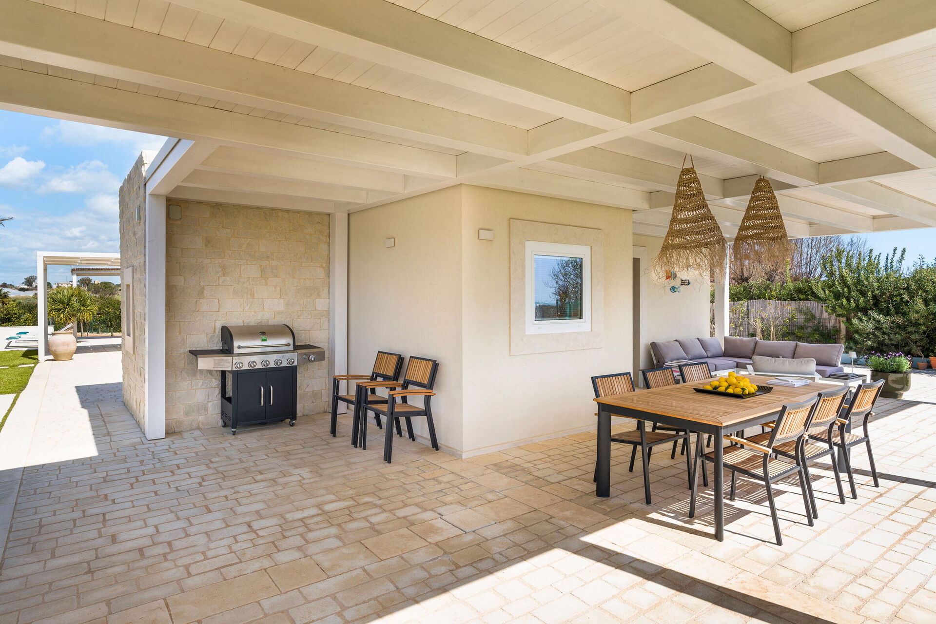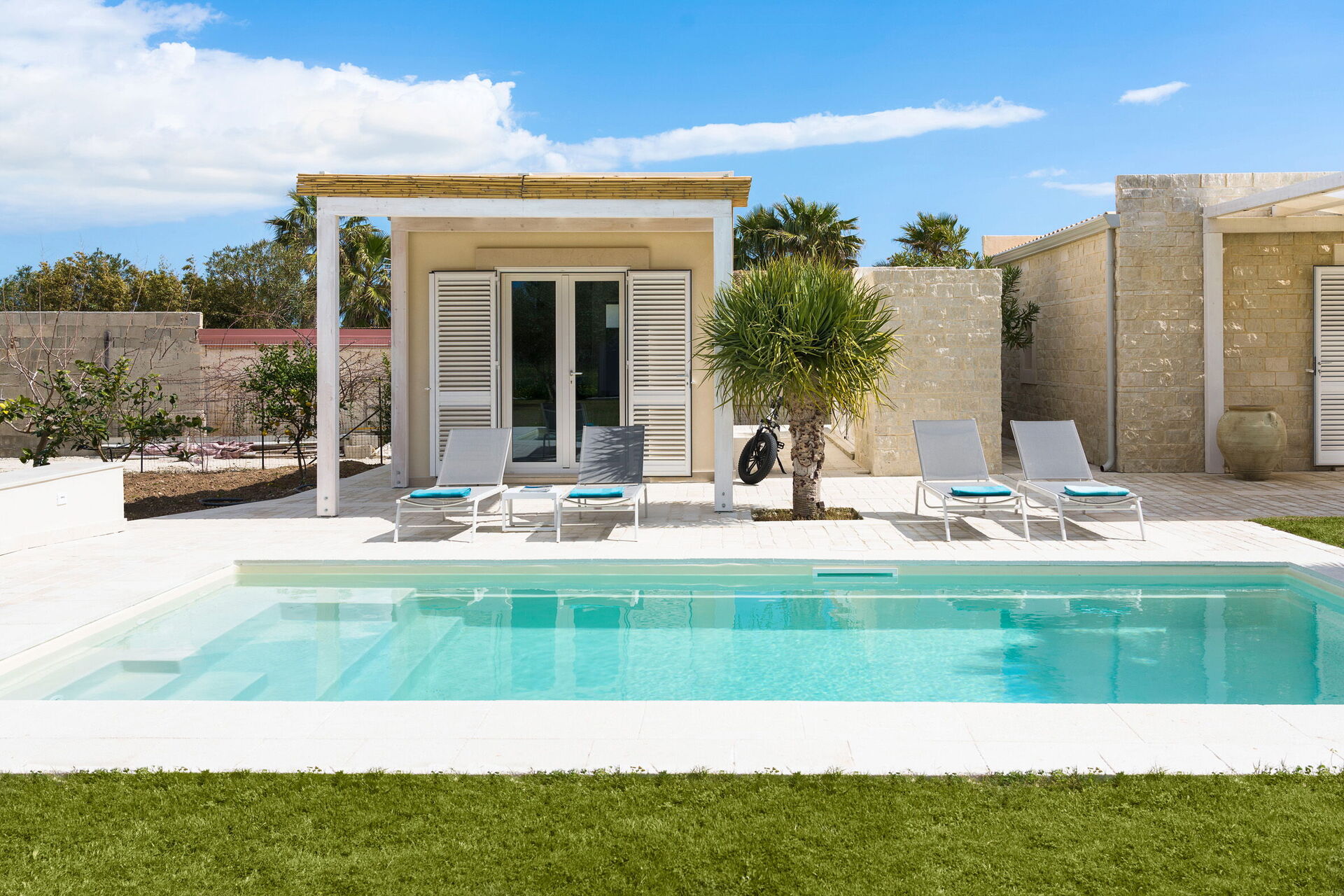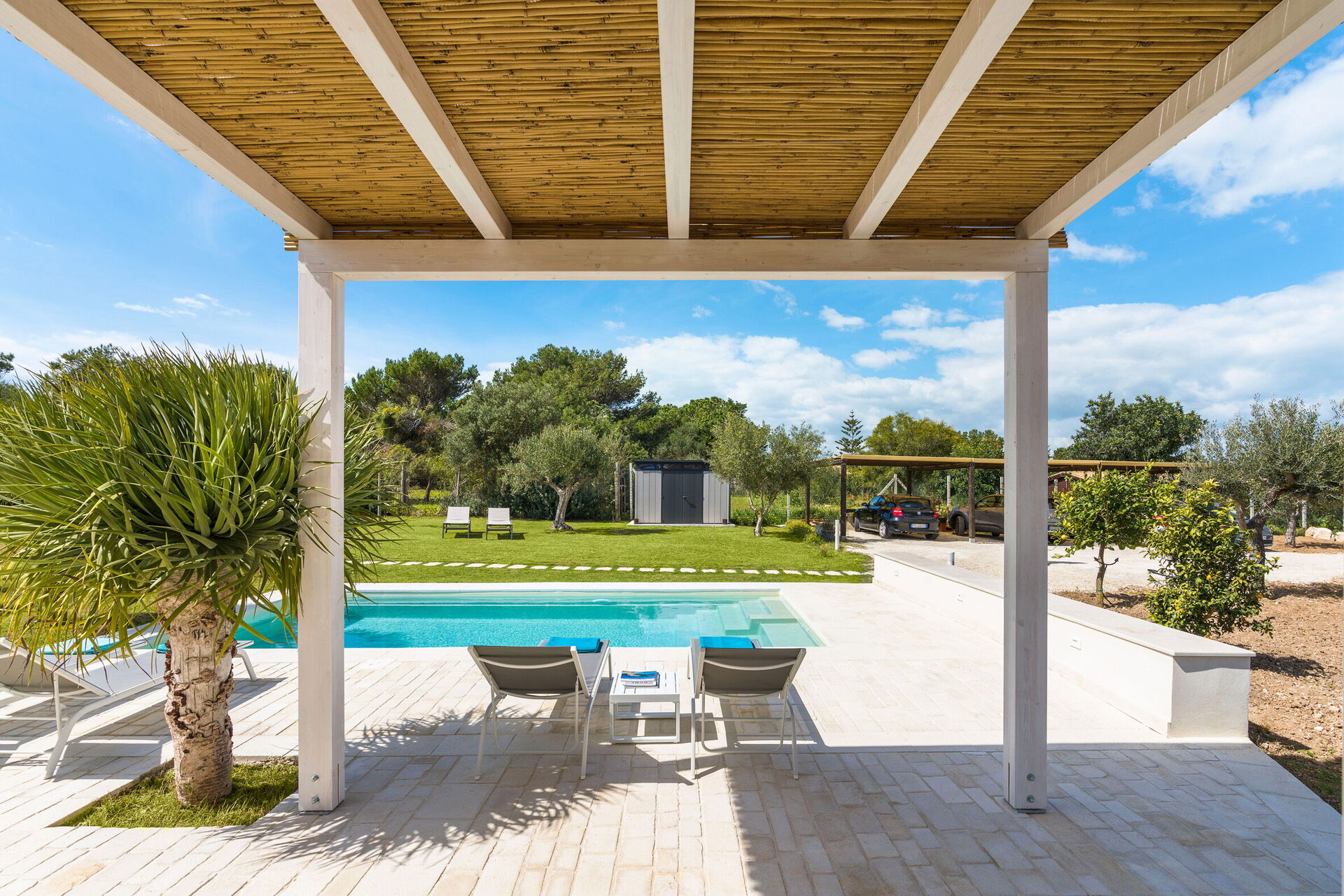 Les espaces extérieurs panoramiques offrent beaucoup de place aux hôtes pour profiter d'un séjour agréable en famille ou entre amis, en se relaxant dans la véranda équipée pour les repas en plein air ou dans le grand espace piscine avec solarium, idéal pour passer d'agréables moments sous le soleil sicilien.
