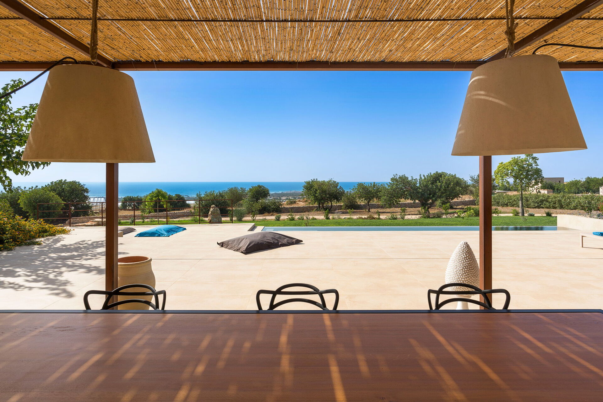 Cette villa de vacances exclusive, située aux alentours de Scicli (une ville baroque spectaculaire classée au patrimoine mondial de l'UNESCO), jouit d'une position tranquille et pittoresque avec une vue époustouflante sur la magnifique campagne environnante ainsi que sur la mer, que l'on peut admirer à la fois depuis la piscine et les terrasses spacieuses.
