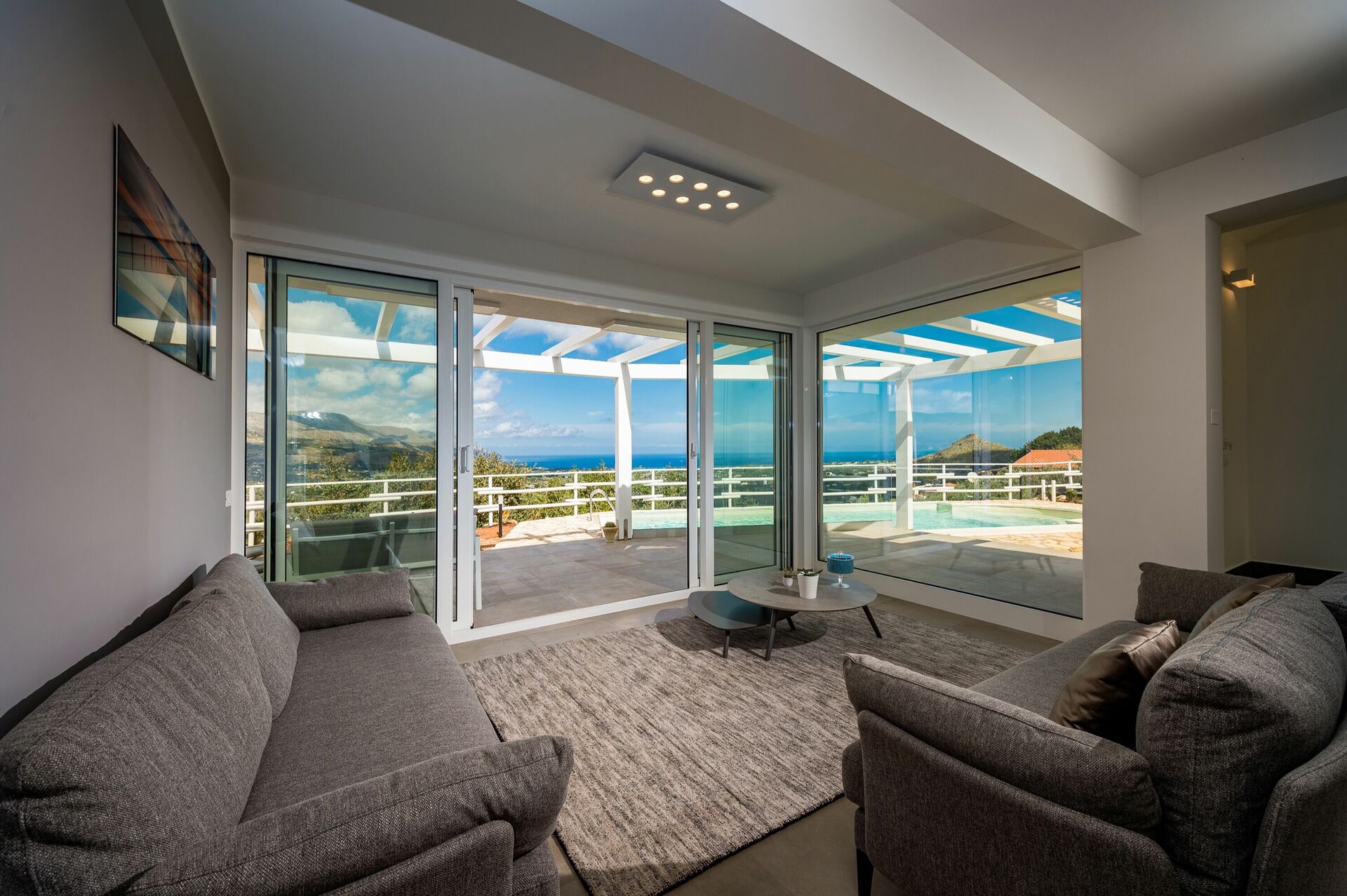 Lovely modern villa with great views. The pool is superb