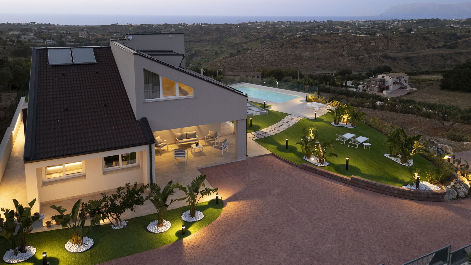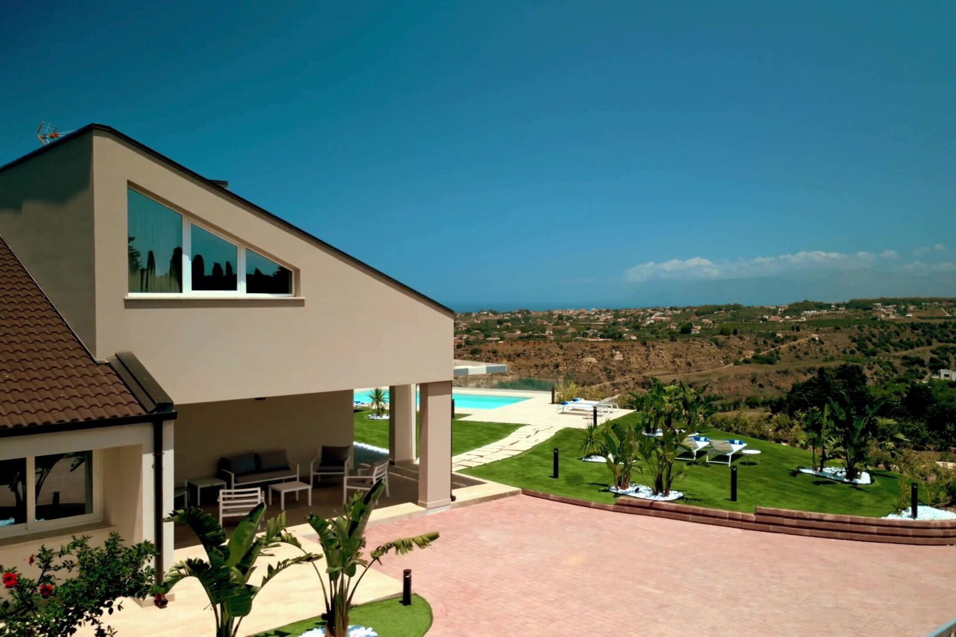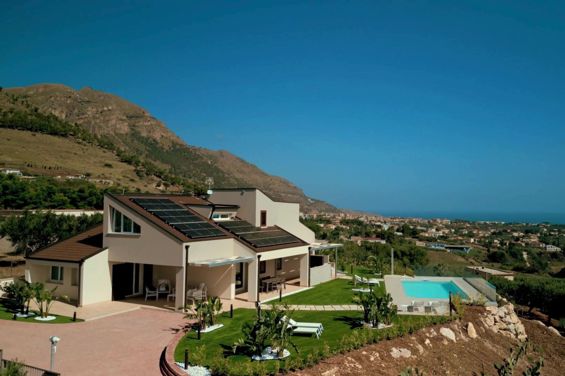 Villa Aversa se trouve dans une position panoramique spectaculaire avec une vue imprenable sur le golfe de Castellammare et la campagne sicilienne, que l’on peut admirer aussi bien depuis la piscine que depuis ses vastes terrasses.