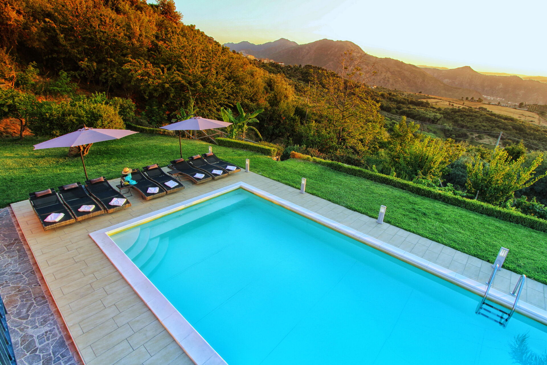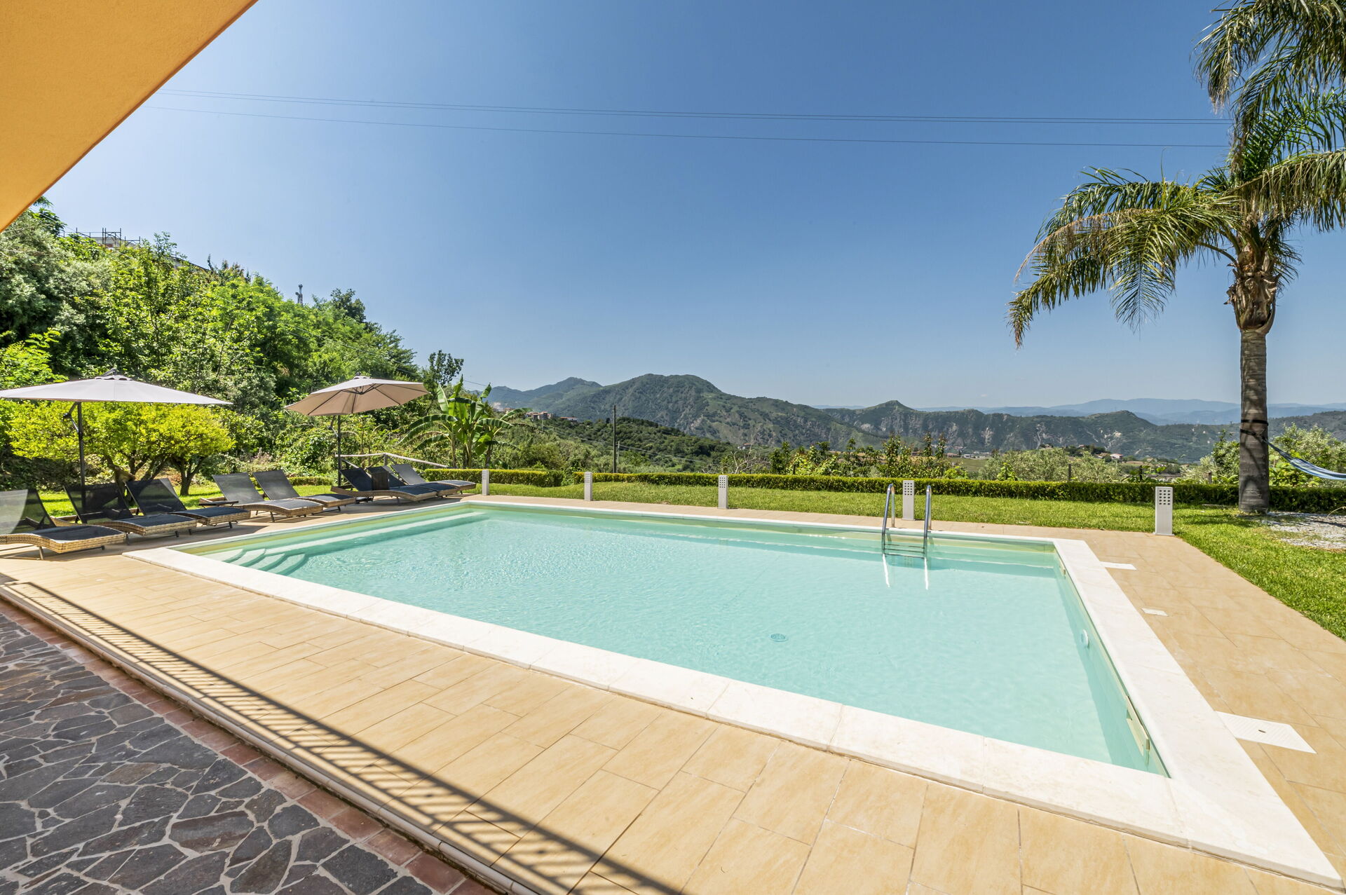 Belle villa avec piscine privée située sur les collines de l'un des plus beaux villages d'Italie, Castroreale, dans le nord-est de la Sicile.