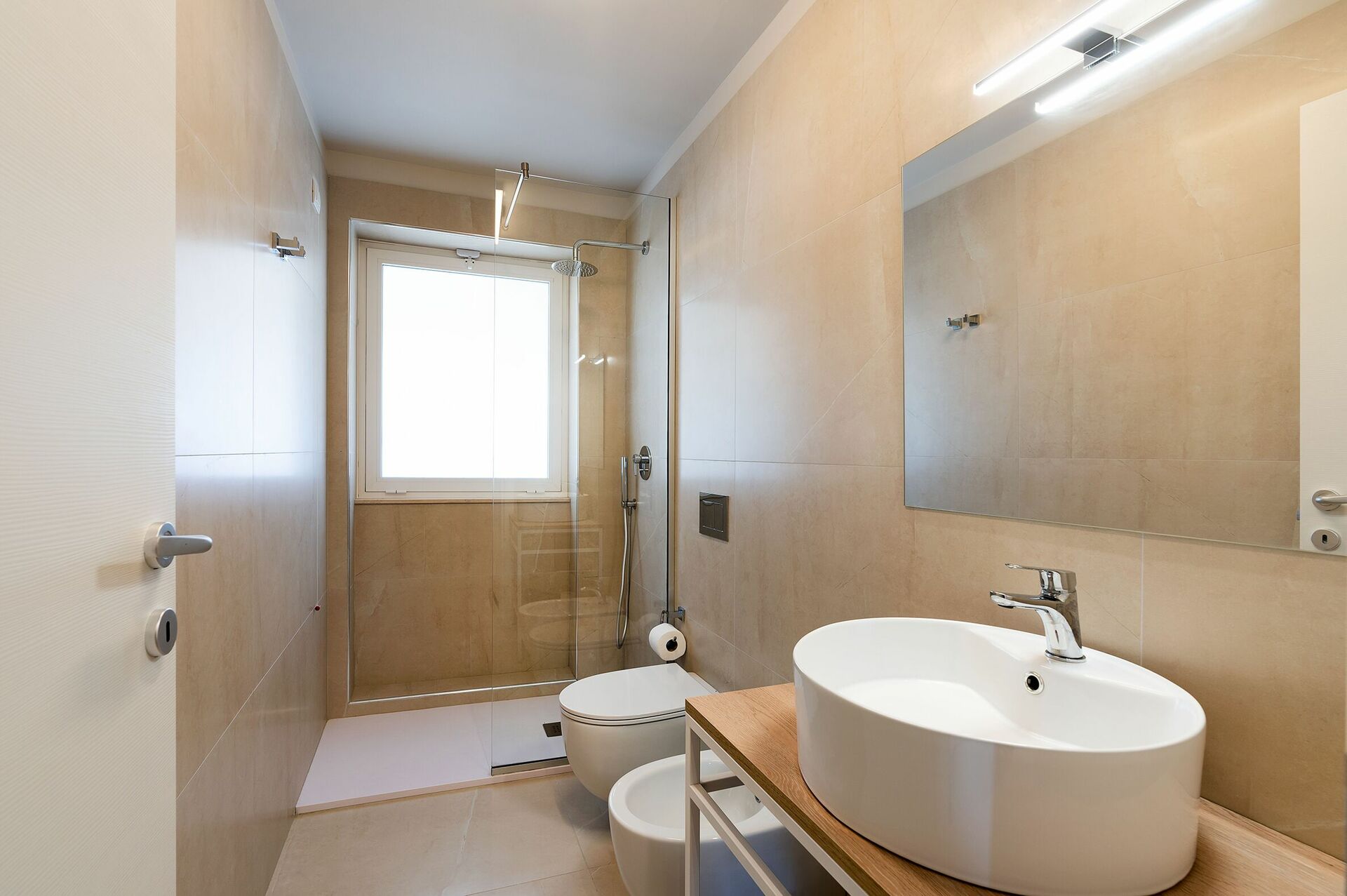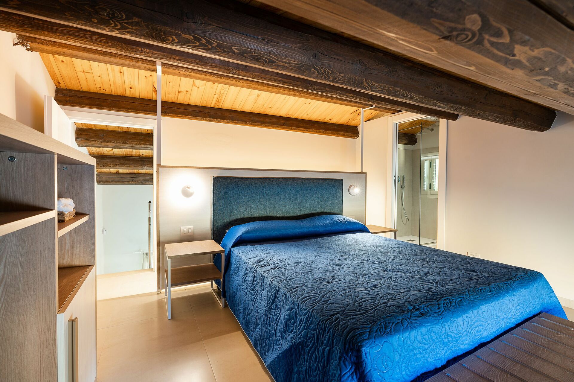 Premier étage (mansarde): 2 chambres doubles avec salle de bains privée avec douche, terrasse.