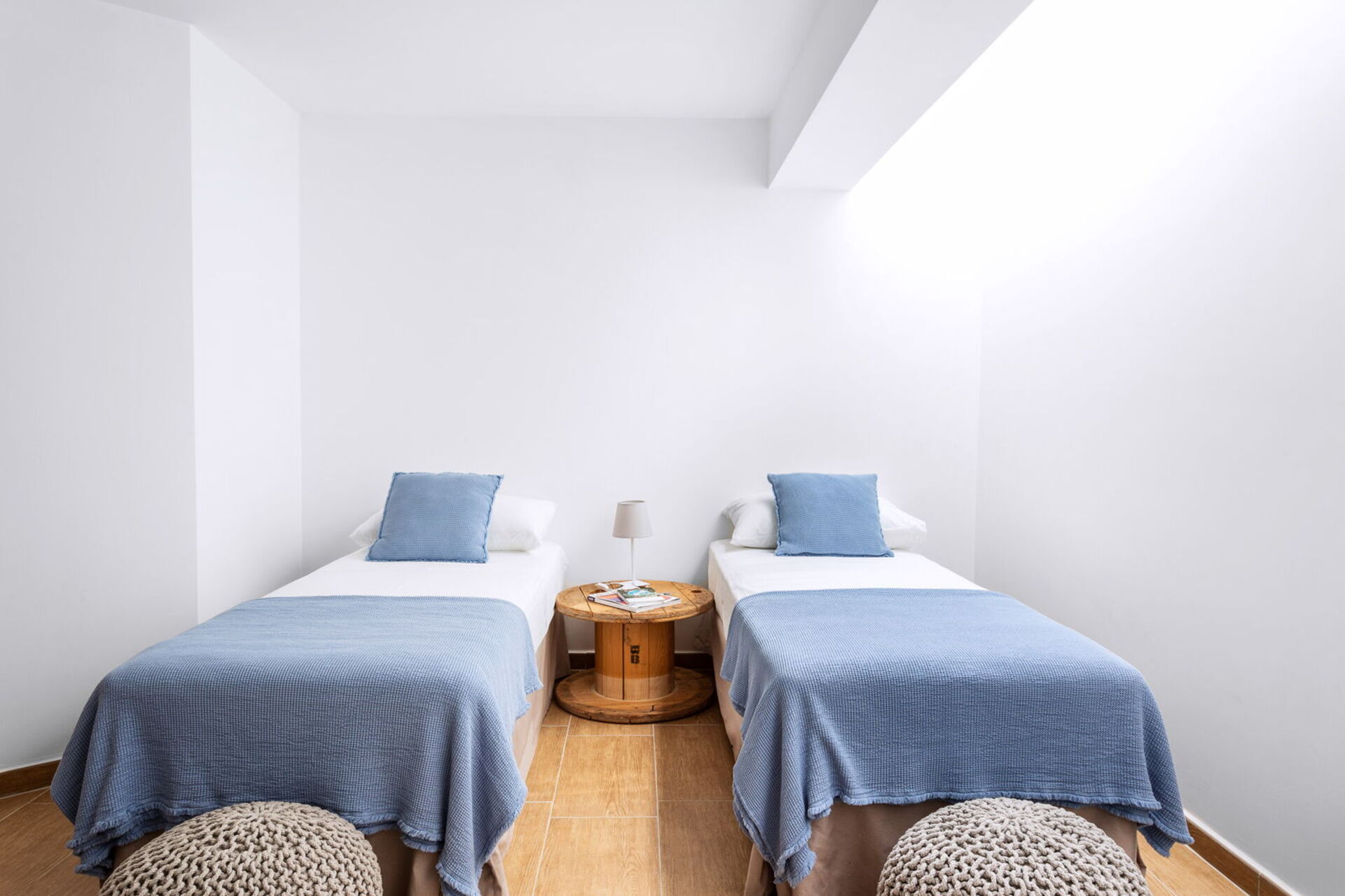 Étage inférieur: petit salon (TV satellite), petite zone avec des équipements de gym, chambre double avec salle de bain privée avec douche, chambre avec 2 lits simples (unifiables sur demande); salle de bain avec douche.