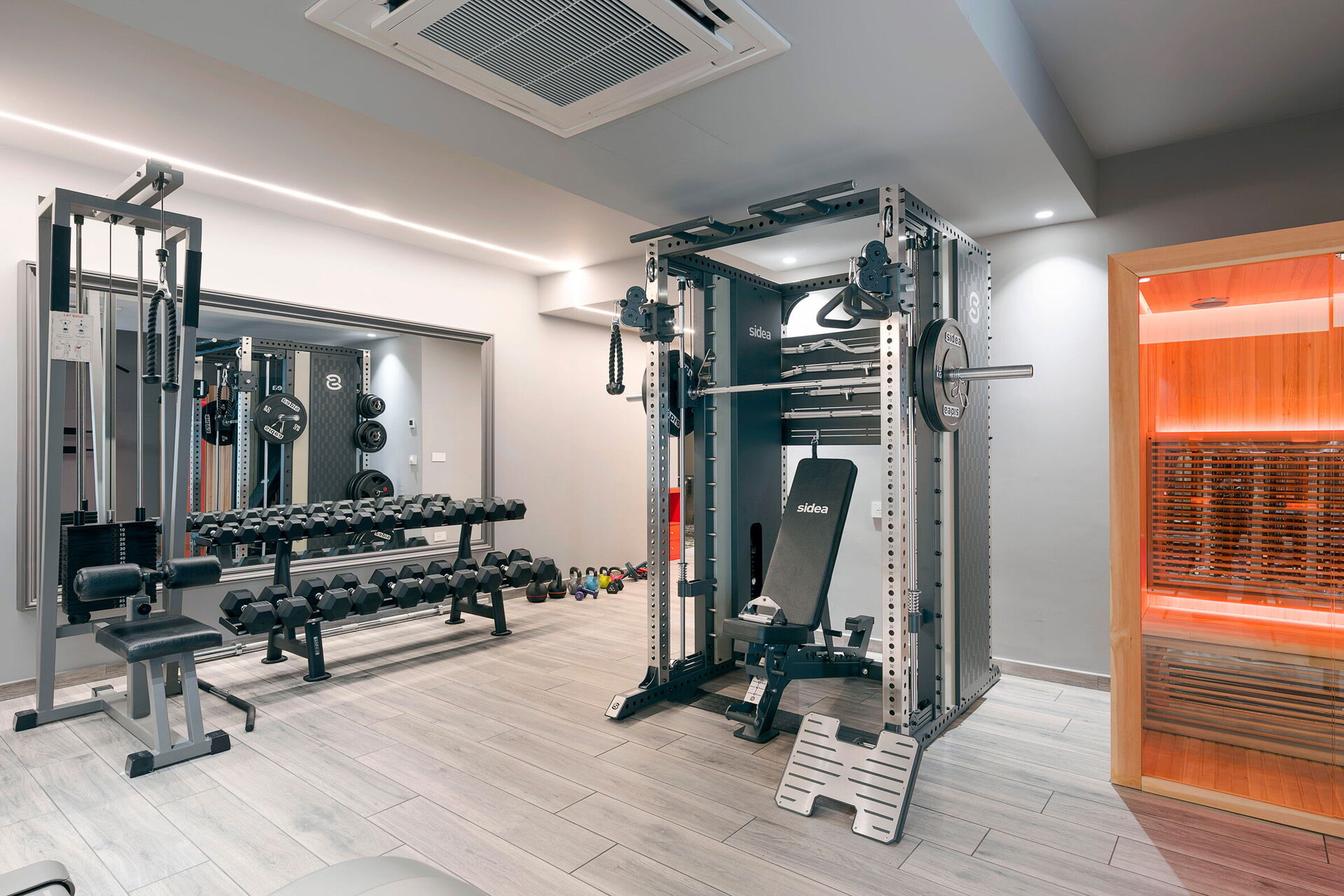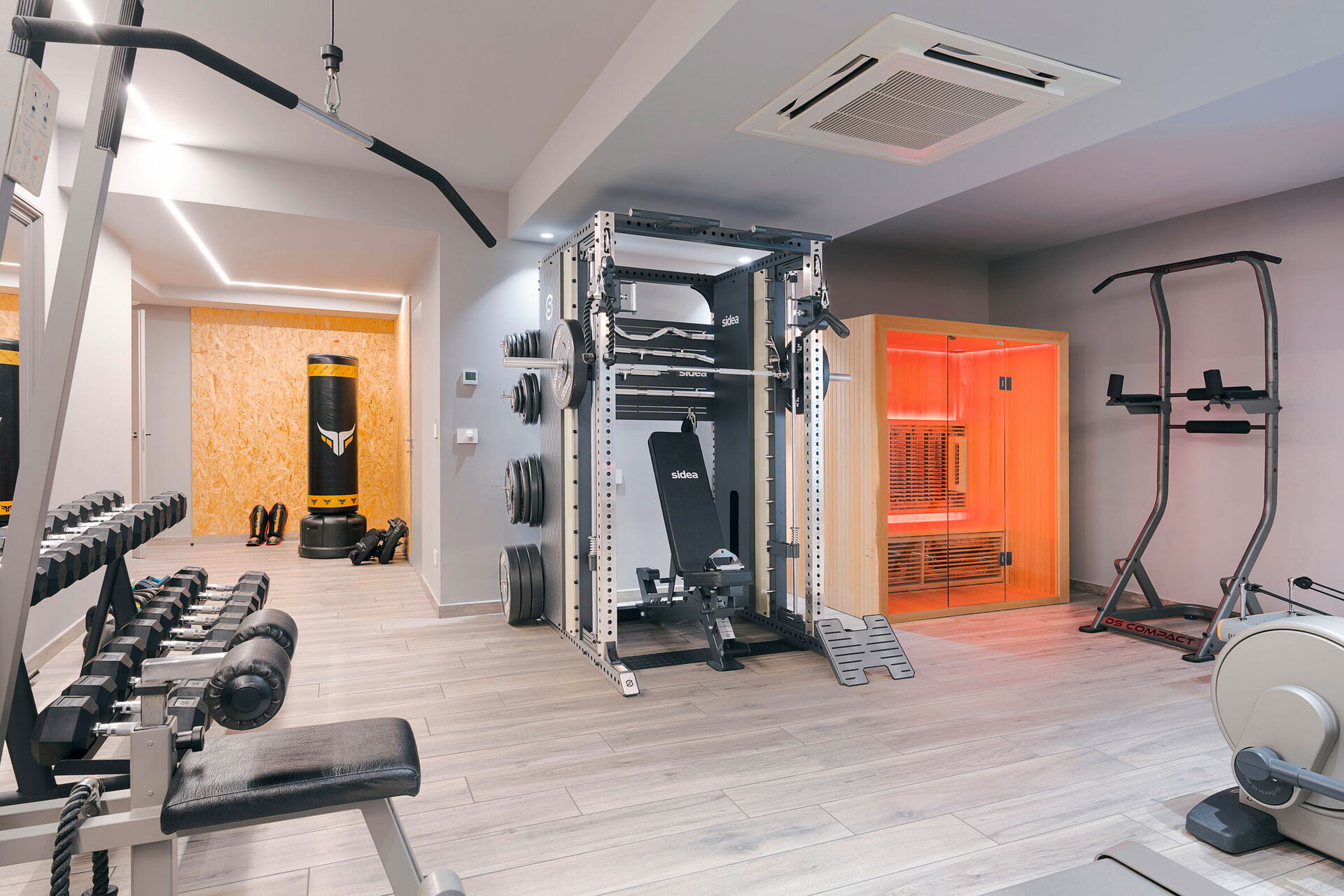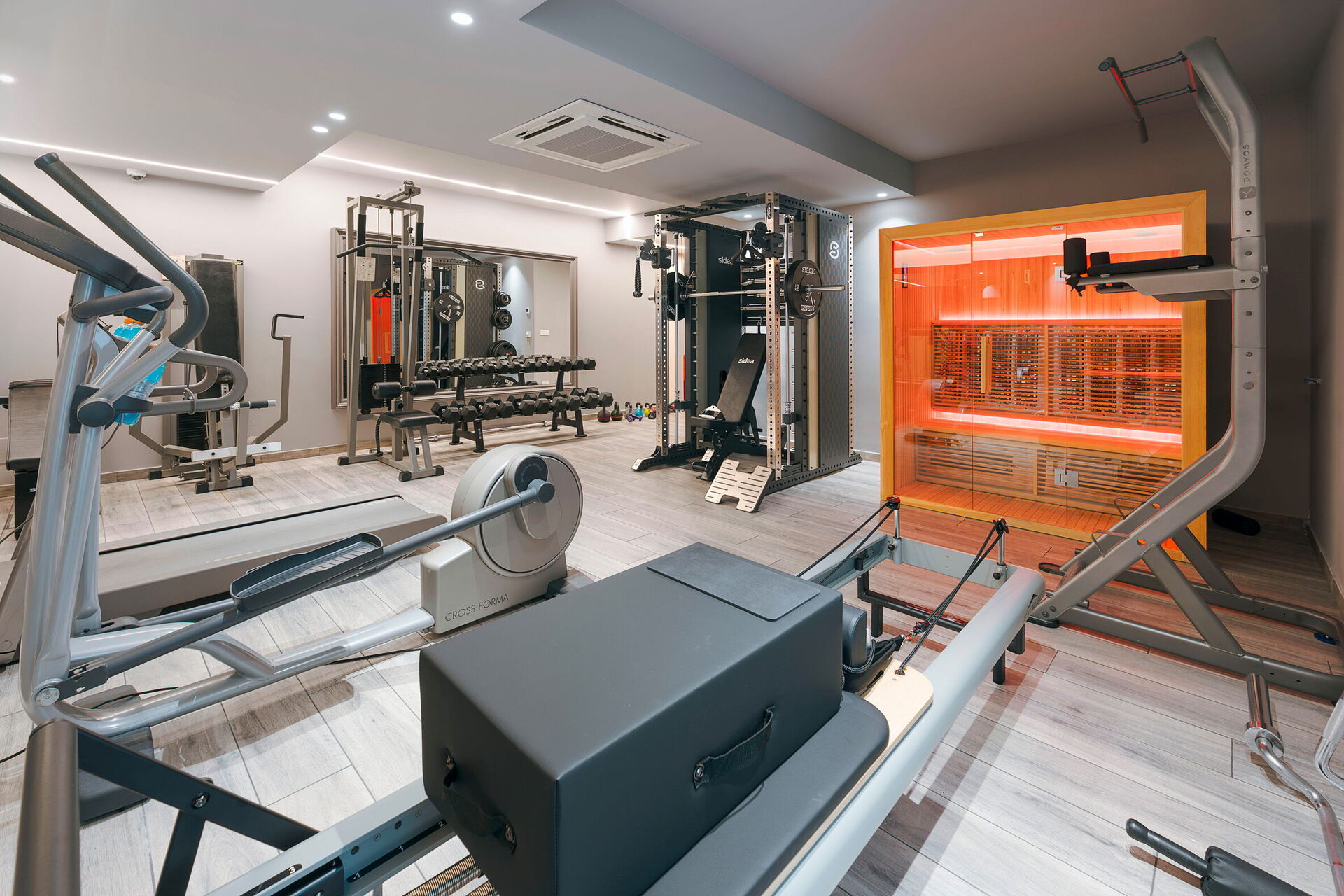 Rez-de-chaussée (ascenseur): grand séjour (air conditionné, TV) avec coin repas, cuisine (plaques de cuisson, four, réfrigérateur, congélateur, lave-vaisselle, micro-ondes, grille-pain, machine à café expresso, machine à café américaine), chambre double (air conditionné, TV) avec salle de bain privée avec douche, chambre double (air conditionné, dressing, TV) avec salle de bain privée avec douche, buanderie, salle de sport (équipement de gymnastique, espace fitness, sauna et douche émotionnelle).