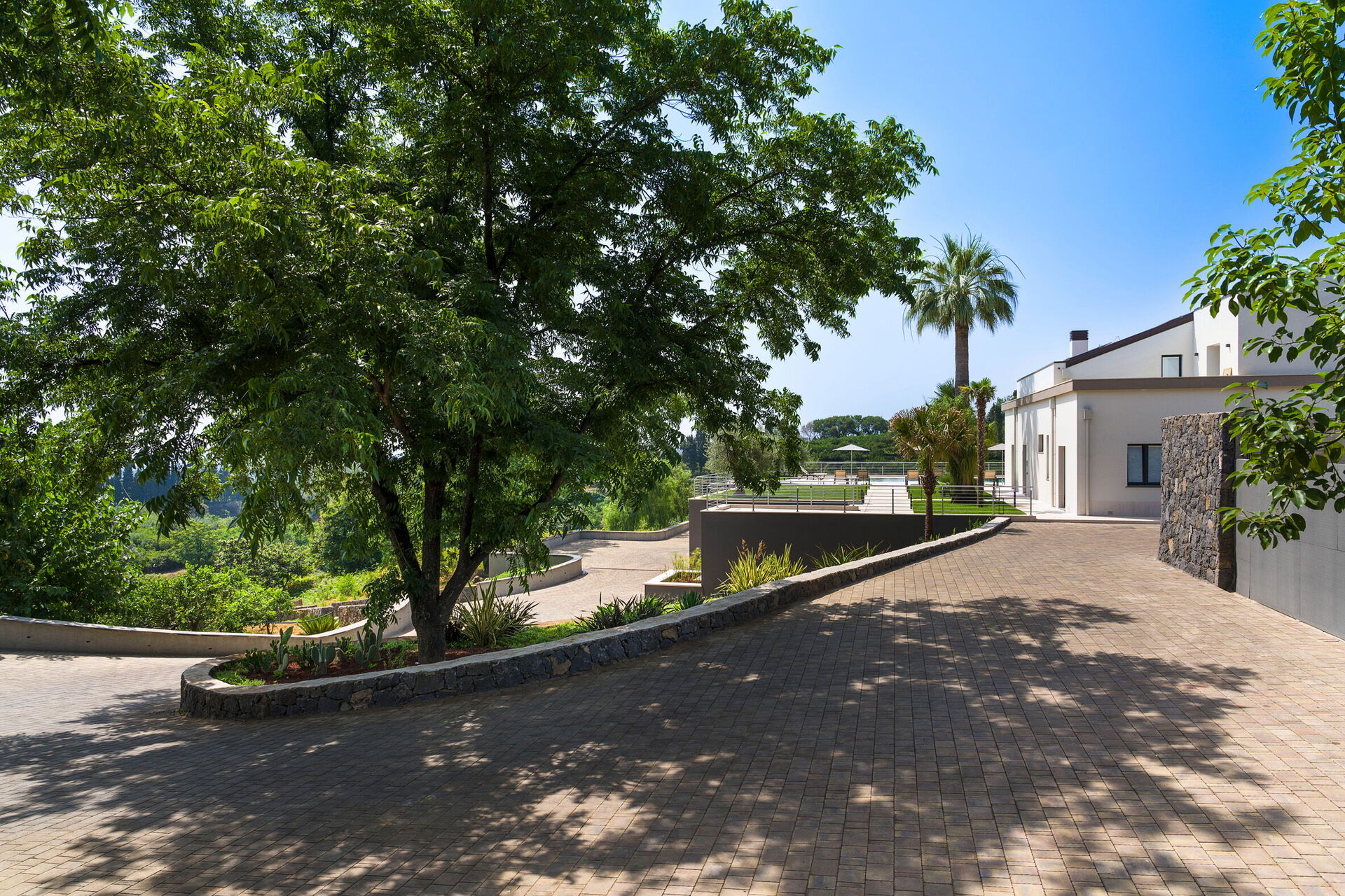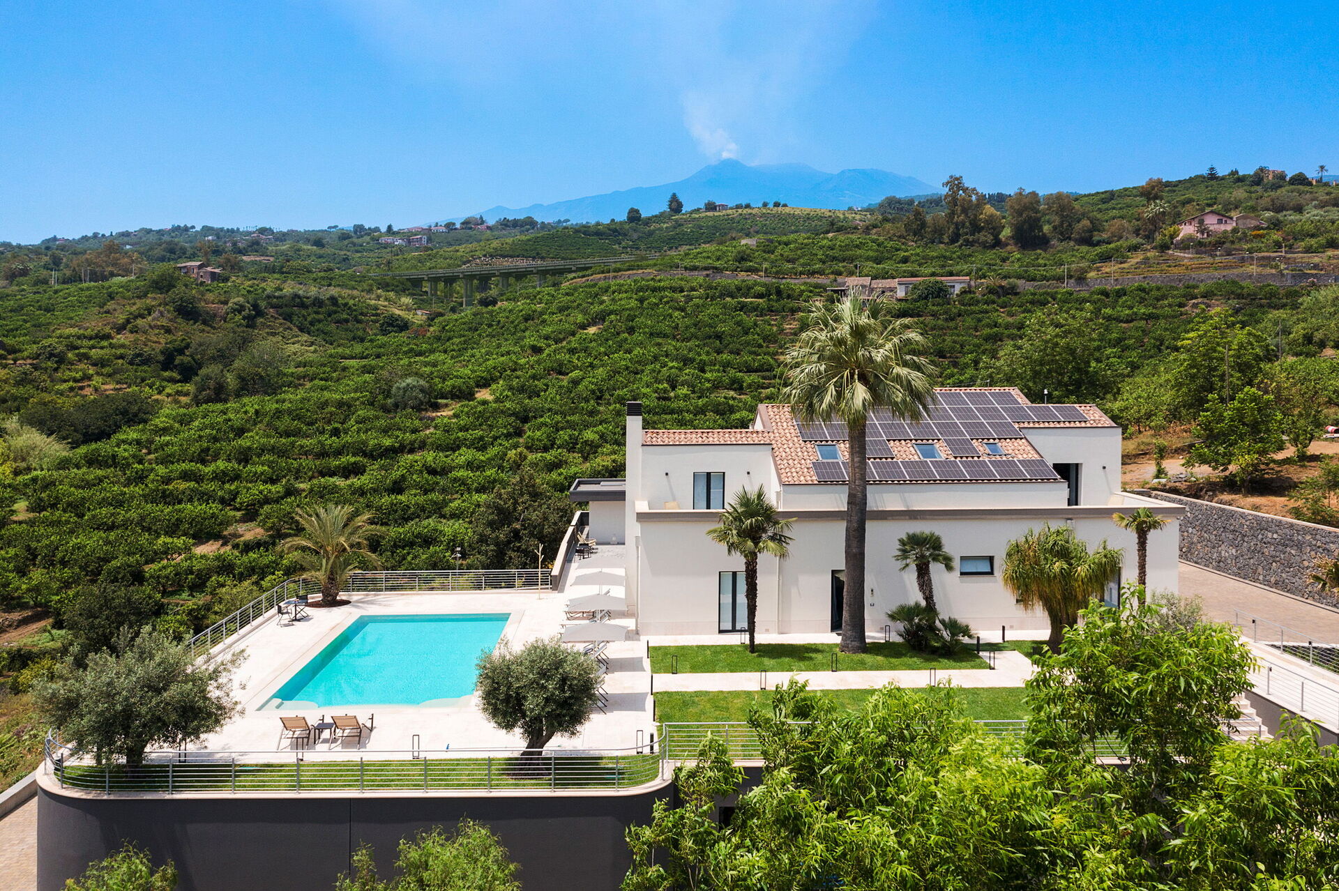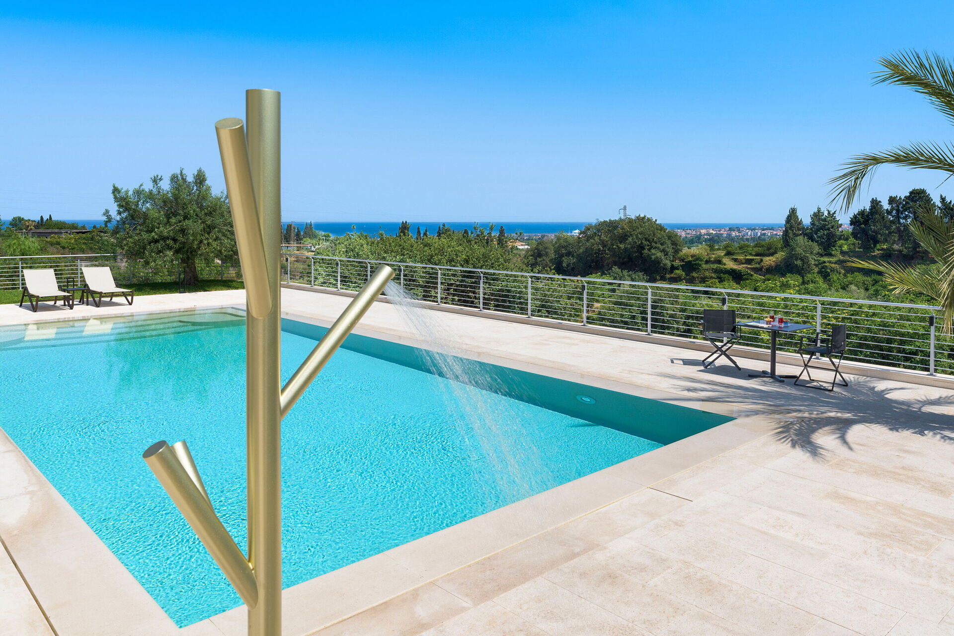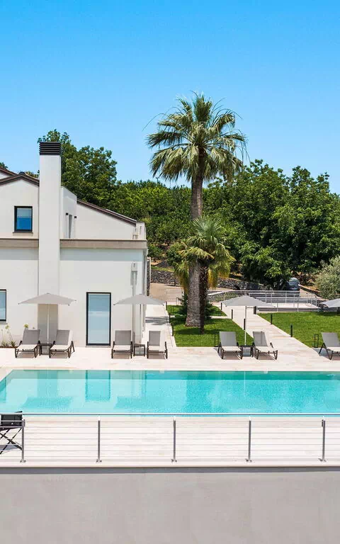 Les espaces extérieurs panoramiques offrent de nombreuses possibilités pour passer un séjour agréable en famille ou entre amis: il sera possible de profiter de repas en plein air, de se détendre au bord de la piscine (avec système de purification au sel) ou dans la zone solarium, idéale pour passer des moments inoubliables sous le soleil sicilien.