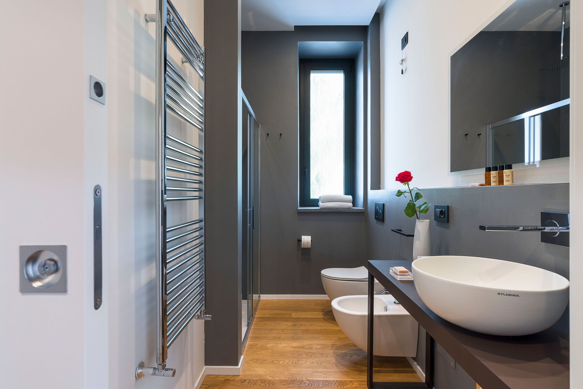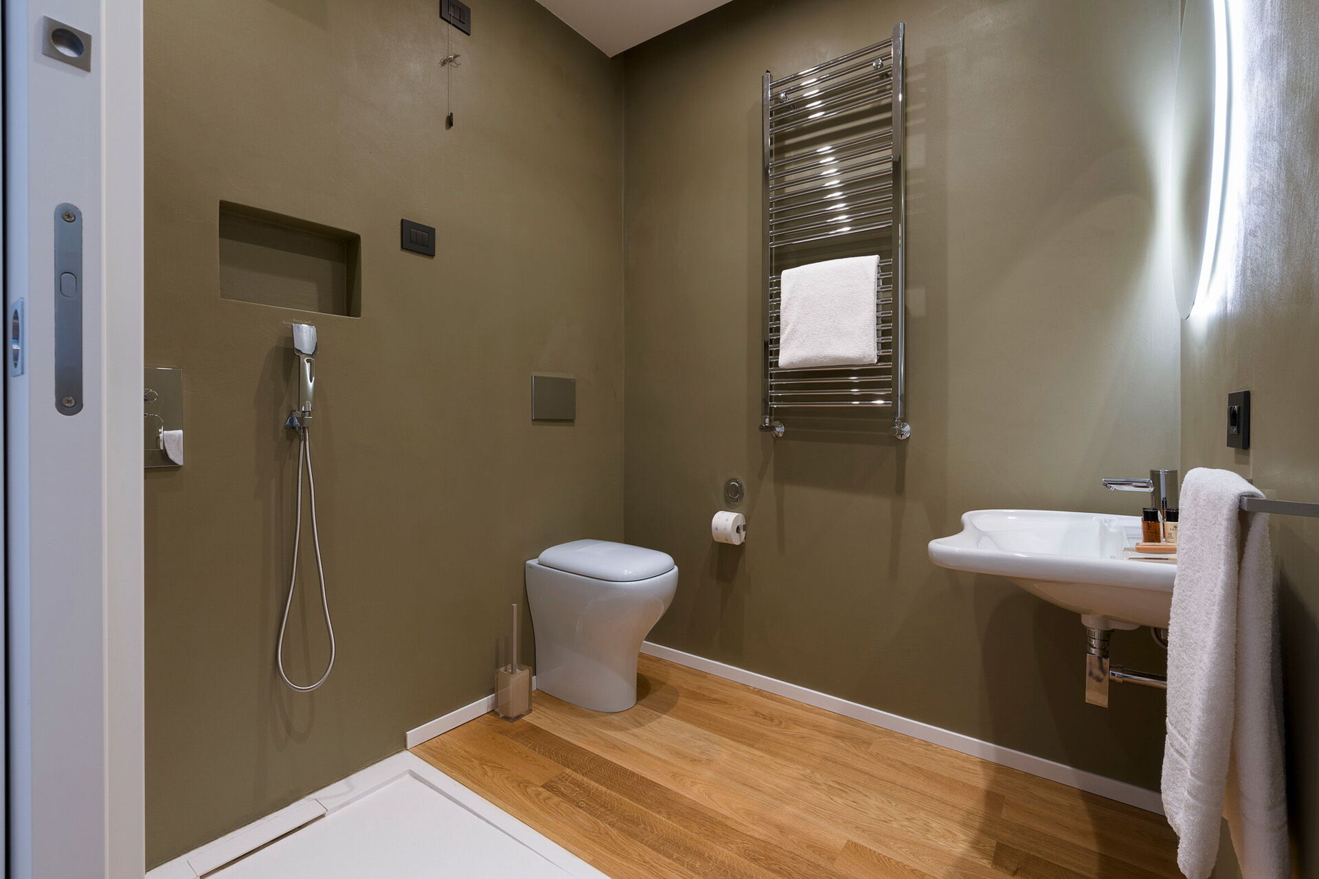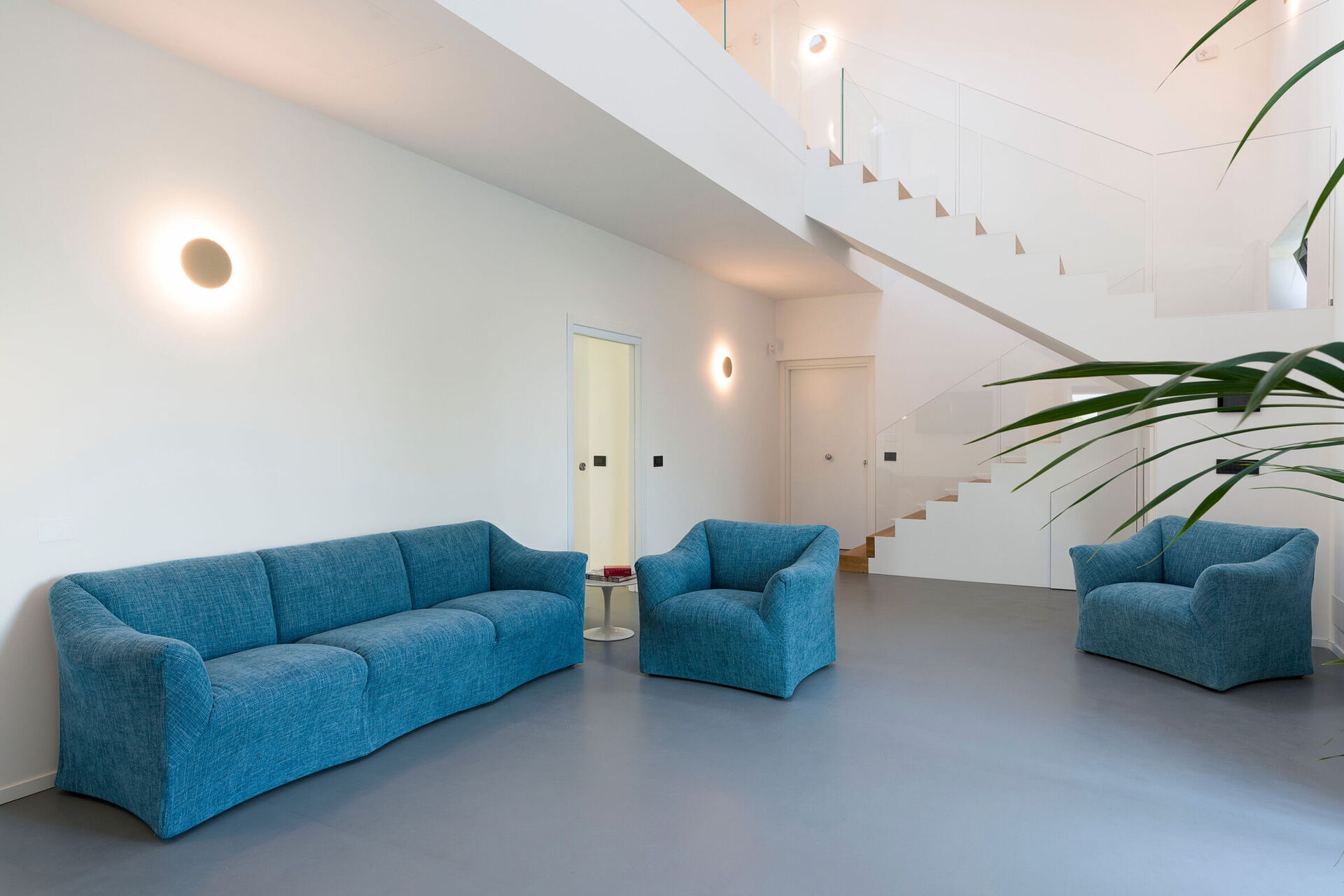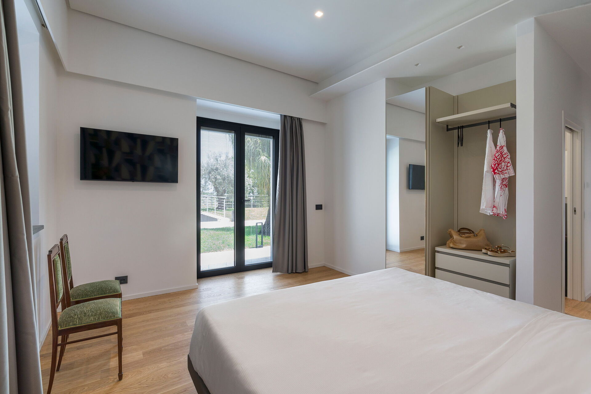 Premier étage: salon (air conditionné, Smart-TV), 2 chambres doubles (air conditionné, lit King-Size) chacune avec salle de bain privée avec douche et accès à la terrasse, chambre double (air conditionné), chambre avec lit à la française (air conditionné), 1 salle de bain avec douche.