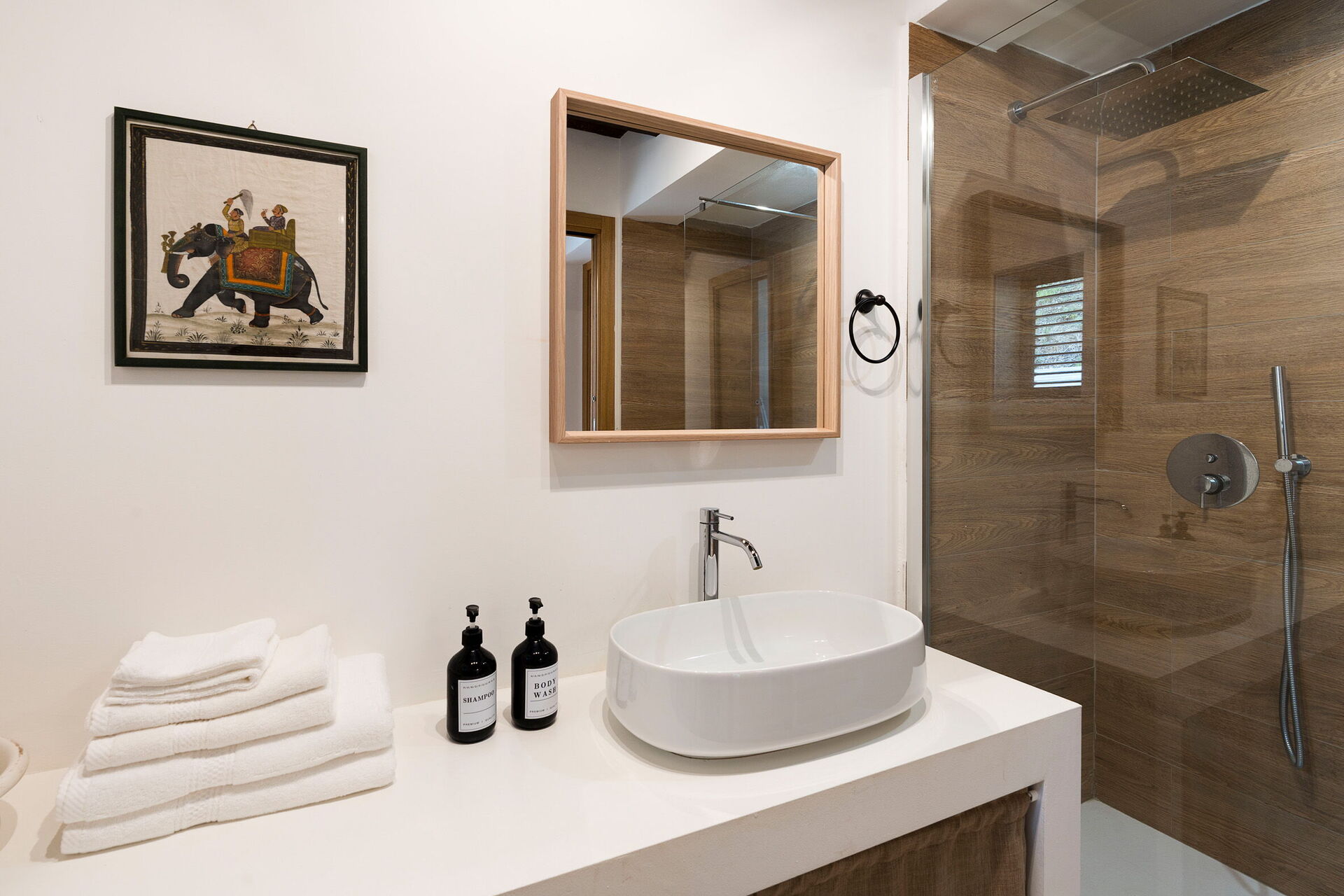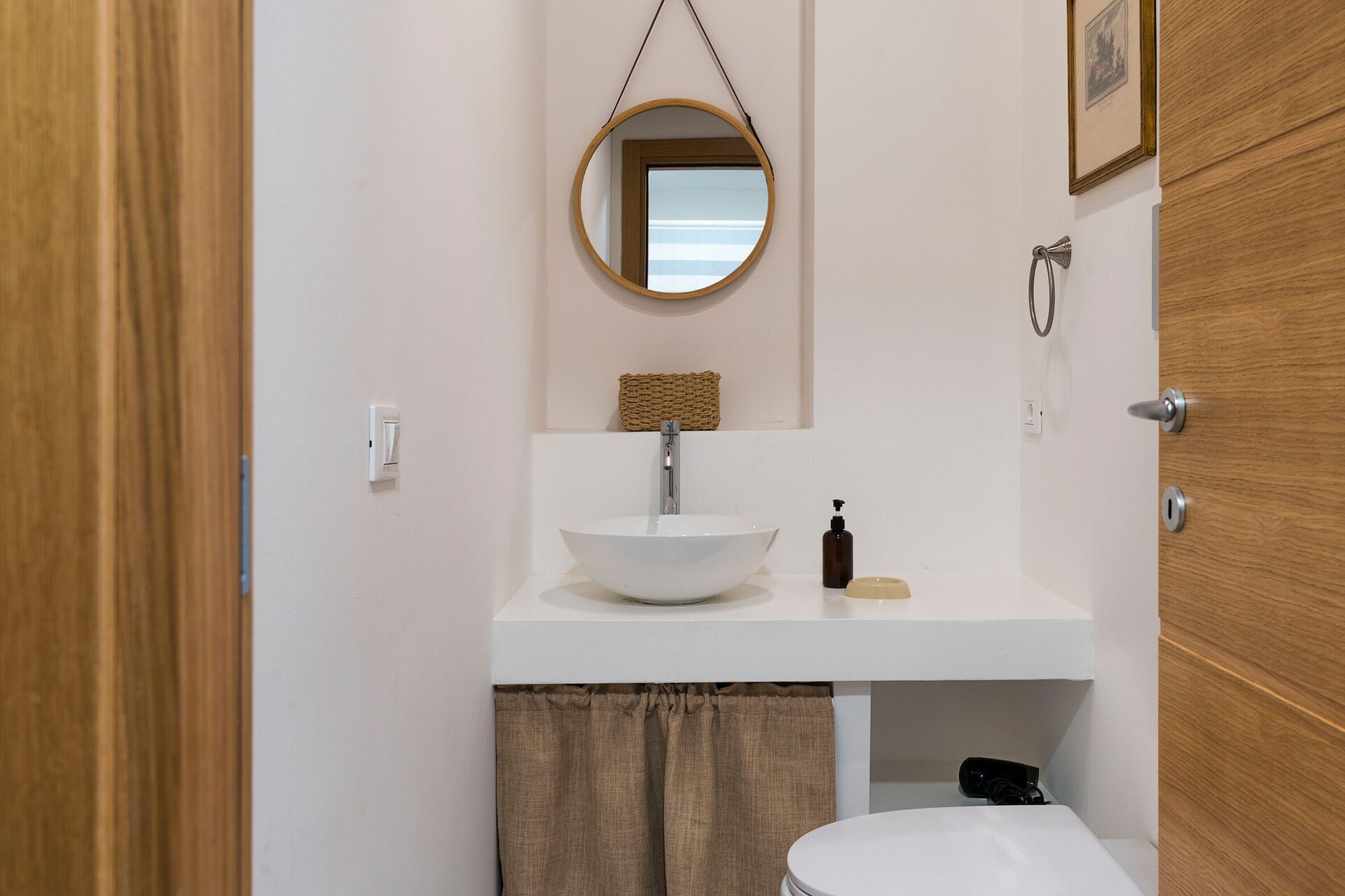 Premier étage : salon (tv), chambre double (taille du lit : 160x200 cm), salle de bain avec baignoire. Climatisation dans toutes les pièces. Moustiquaires dans les chambres.