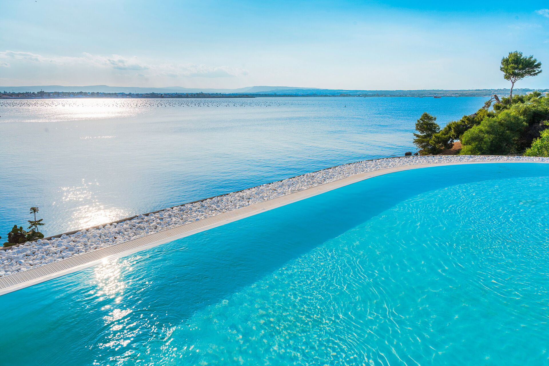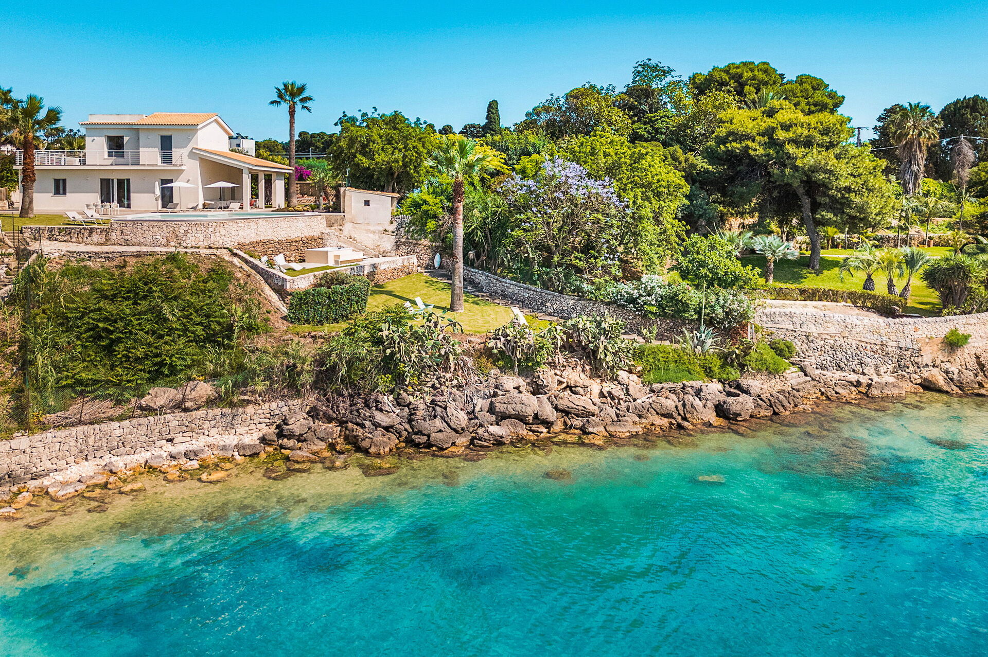 La villa est à 50m de la mer (rochers), dans l’une des plus belles zones de la côte sicilienne et à quelques kilomètres du centre historique d'Ortigia. Vue splendide sur la baie de Syracuse. Une magnifique piscine donne sur la mer. Luxe et raffinements à l'intérieur et à l'extérieur: ameublement de design et espaces extérieurs équipés garantissent détente et une expérience inoubliable.