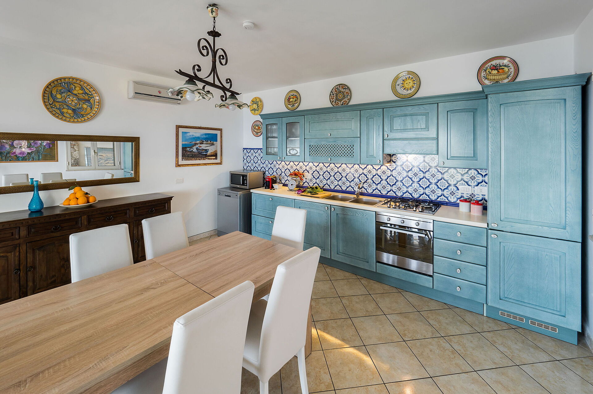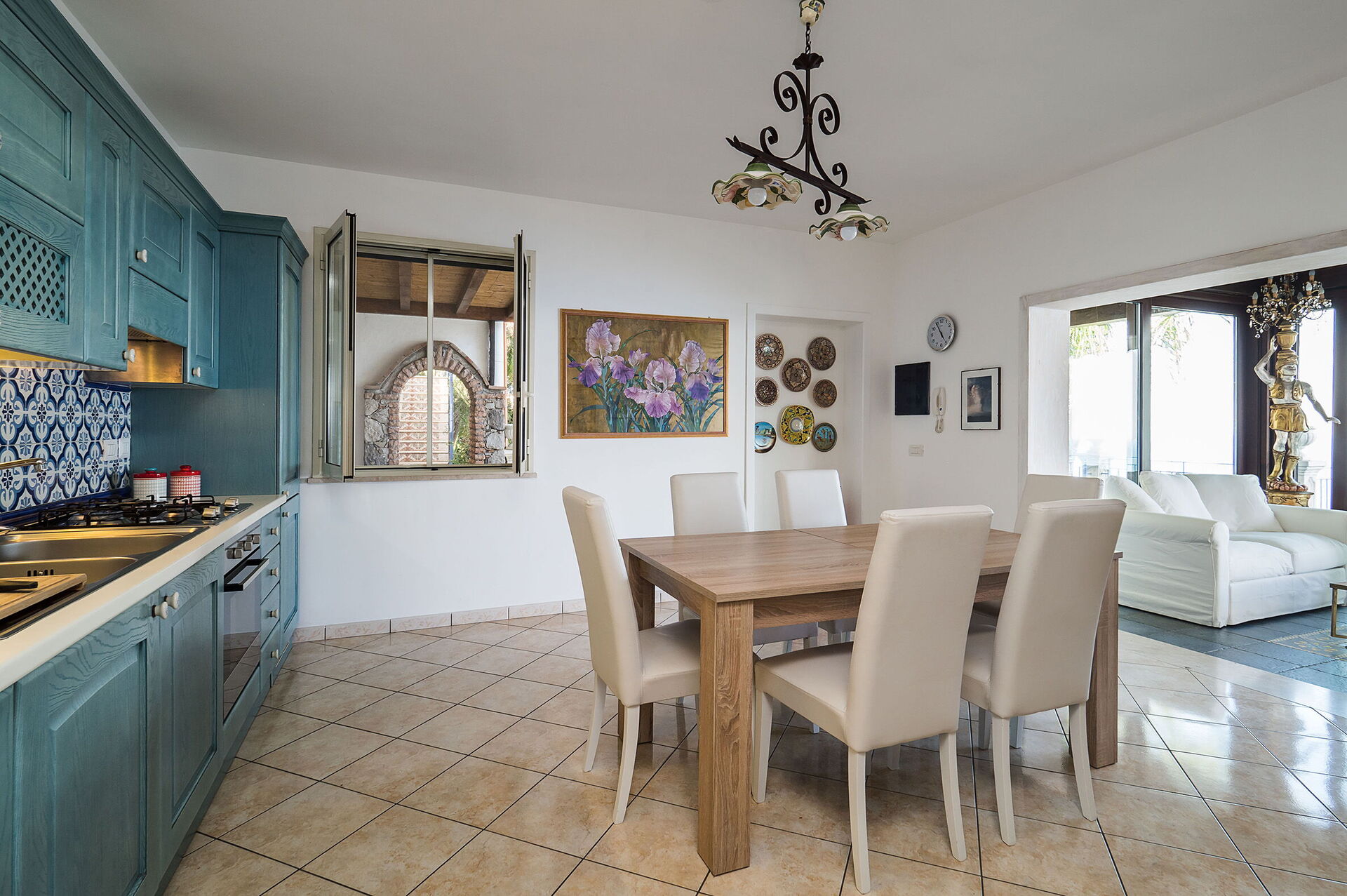 Les espaces extérieurs panoramiques offrent de nombreux espaces communs et permettent aux hôtes de passer un agréable séjour en famille ou entre amis, en se relaxant sur la terrasse équipée pour les repas en plein air ou dans le grand espace piscine avec vue sur la mer, idéal pour passer des moments inoubliables sous le soleil sicilien.