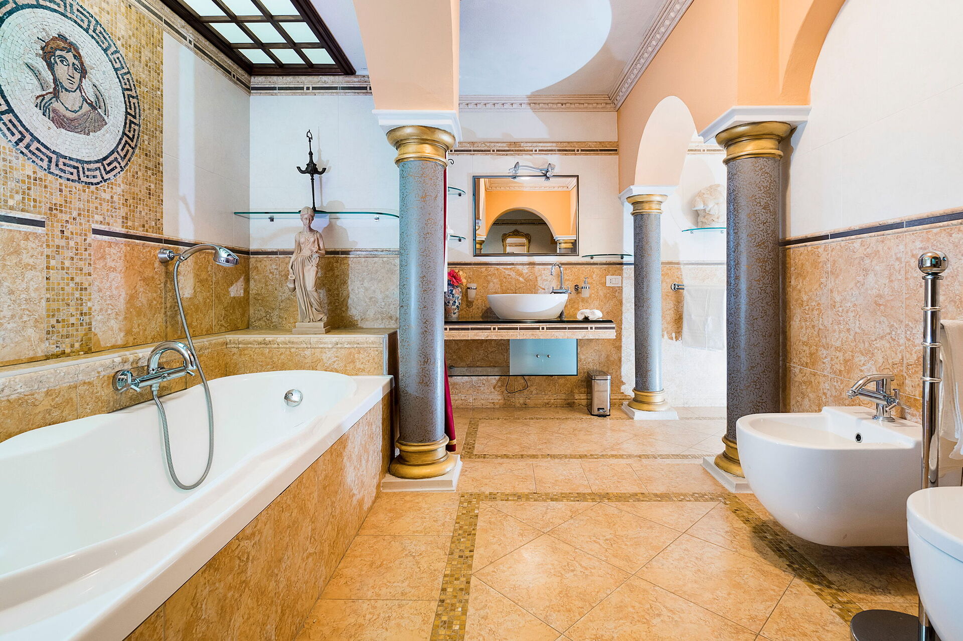 Au rez-de-chaussée: chambre double (air conditionné, minibar, TV, moustiquaire) avec salle de bain privée avec baignoire et douche.