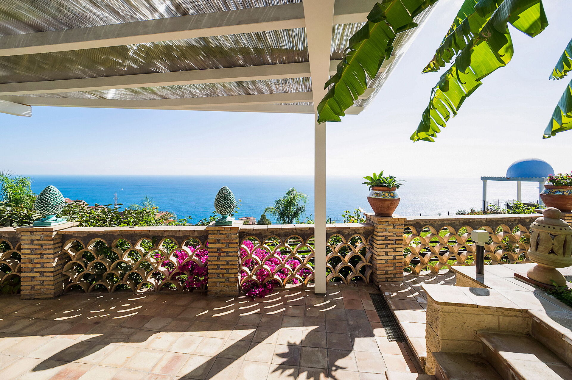 Prestigieuse et raffinée, cette villa de vacances exclusive jouit d'une position panoramique avec une vue à couper le souffle sur la mer et la baie de Taormine, que l'on peut admirer aussi bien depuis la piscine à débordement que depuis les spacieuses terrasses.