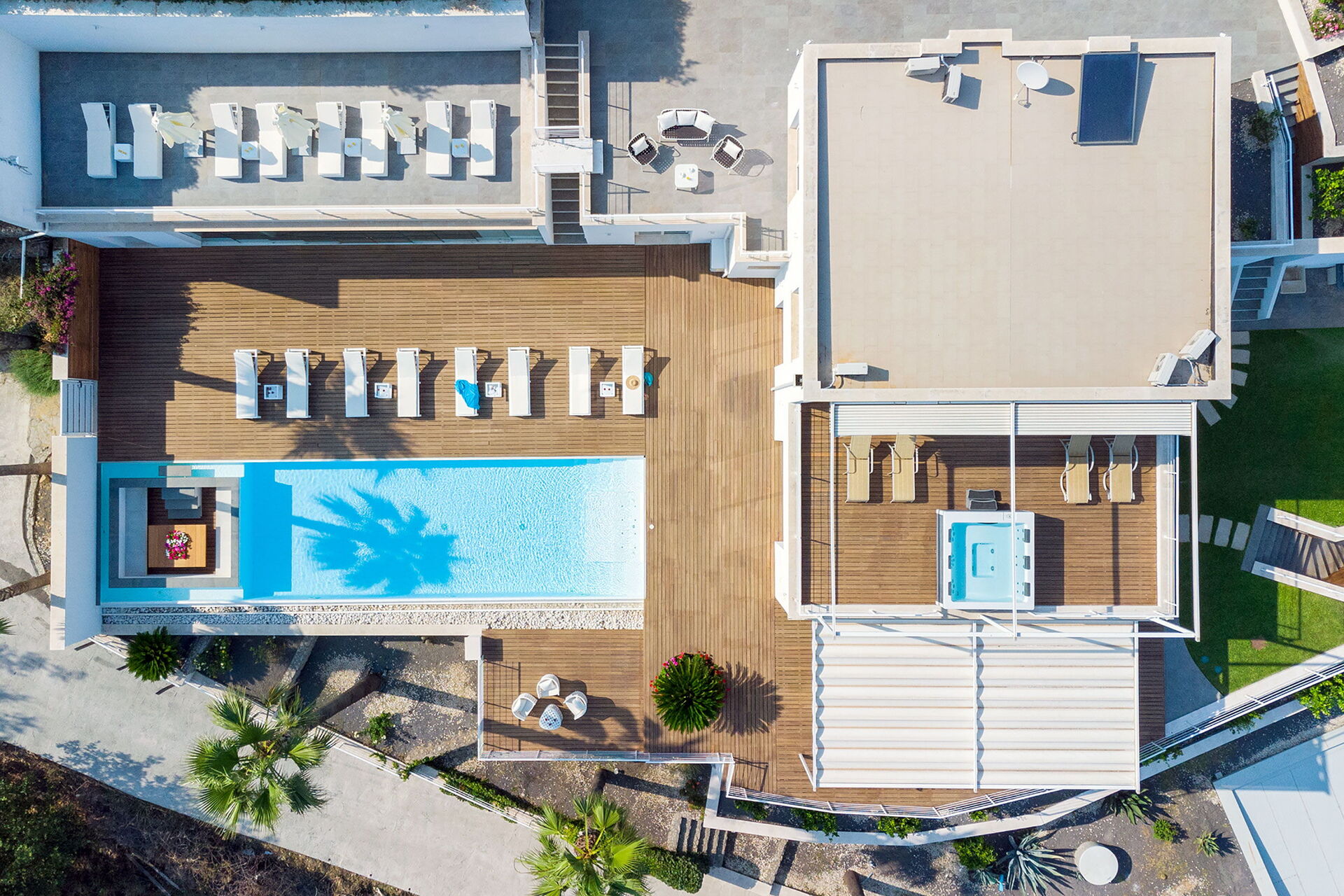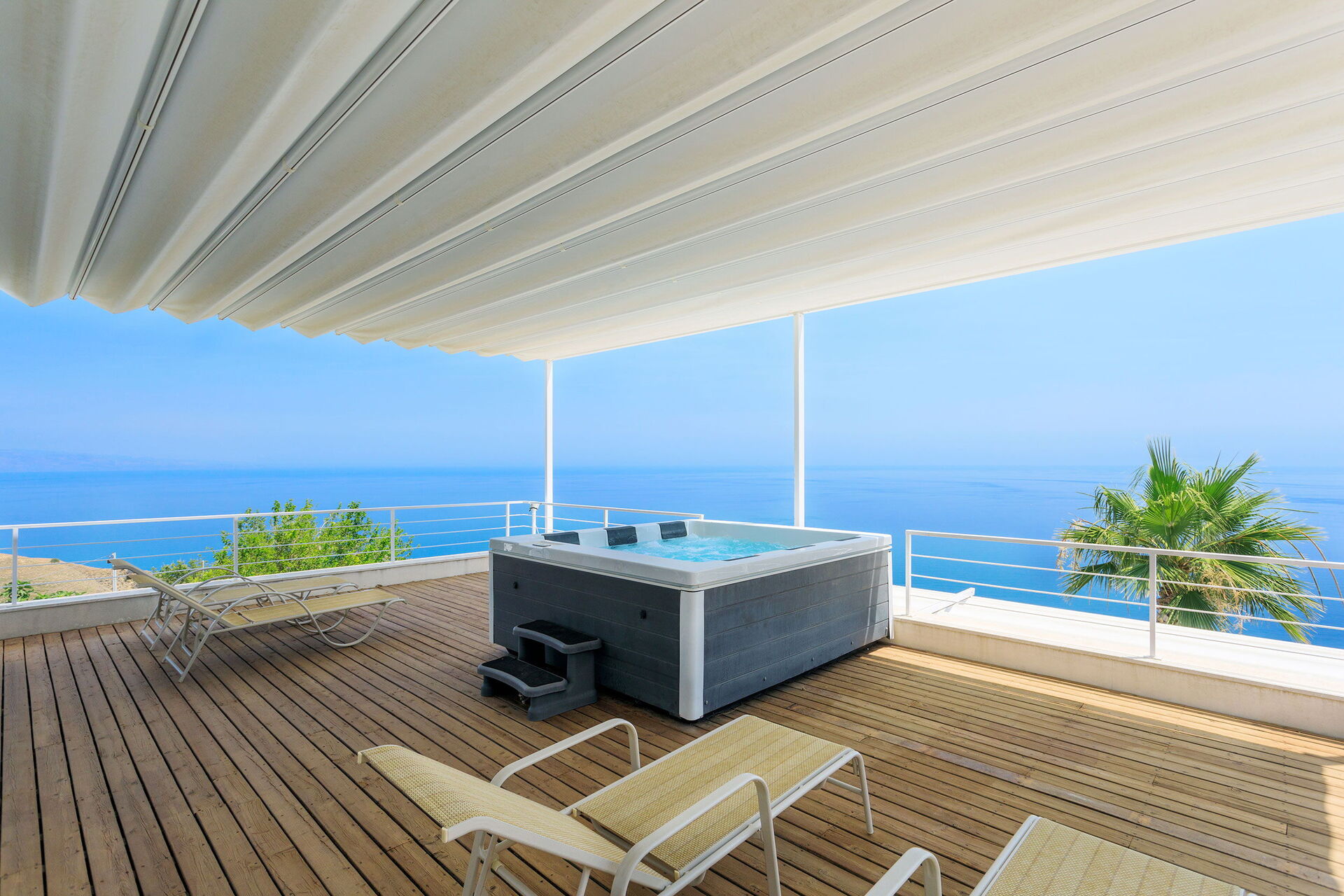 - piscine panoramique à débordement avec zone d'hydromassage (10 x 5 mètres; profondeur: 1,50 mètres)