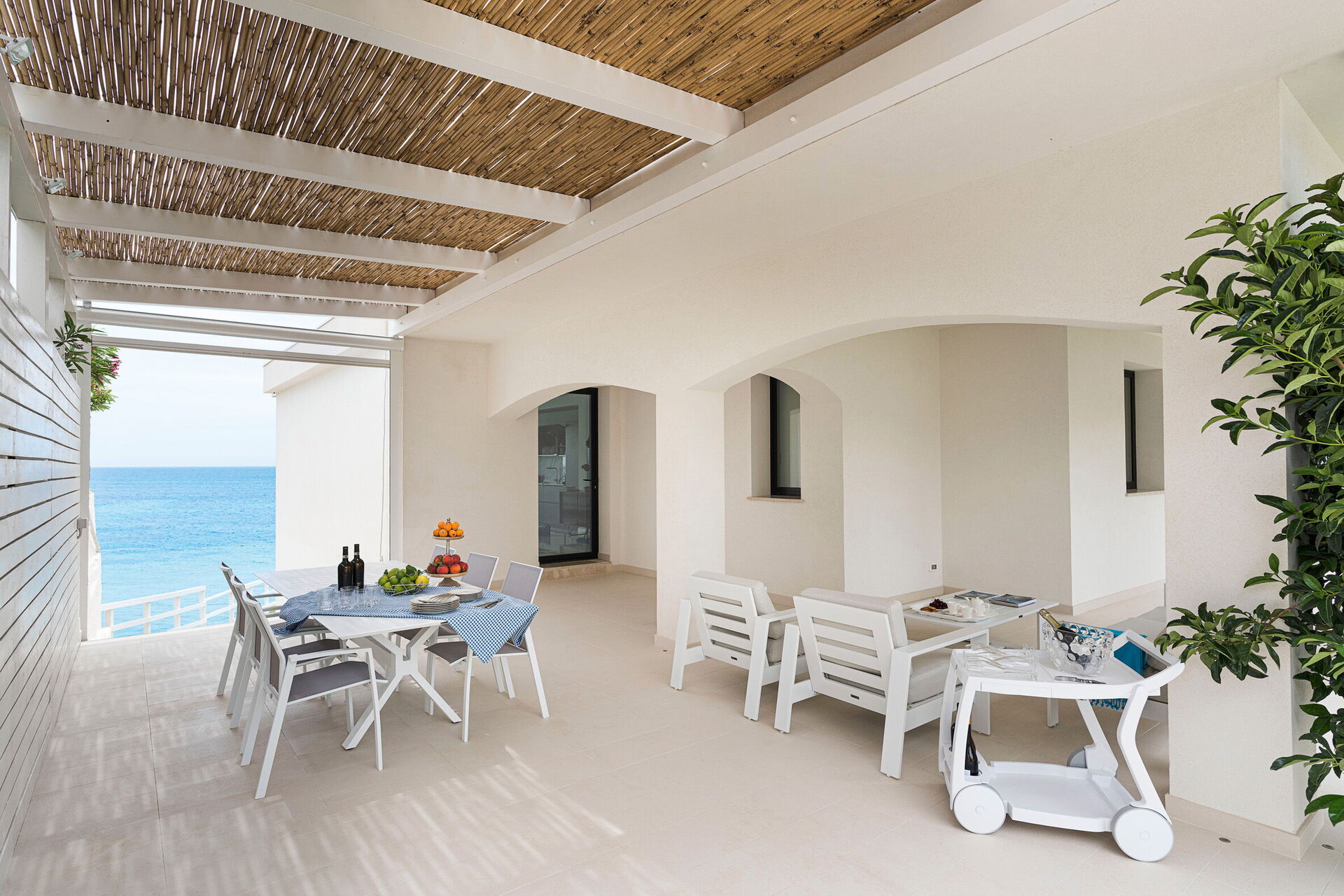 Les extérieurs panoramiques offrent de nombreux espaces communs et permettent de passer un séjour agréable en famille ou entre amis, en se relaxant sous la véranda équipée pour les repas en plein air, ou dans le grand solarium face à la mer, idéal pour passer d'agréables moments sous le soleil sicilien. A disposition des hôtes, un jacuzzi extérieur chauffé et un accès direct à la falaise et à la mer.