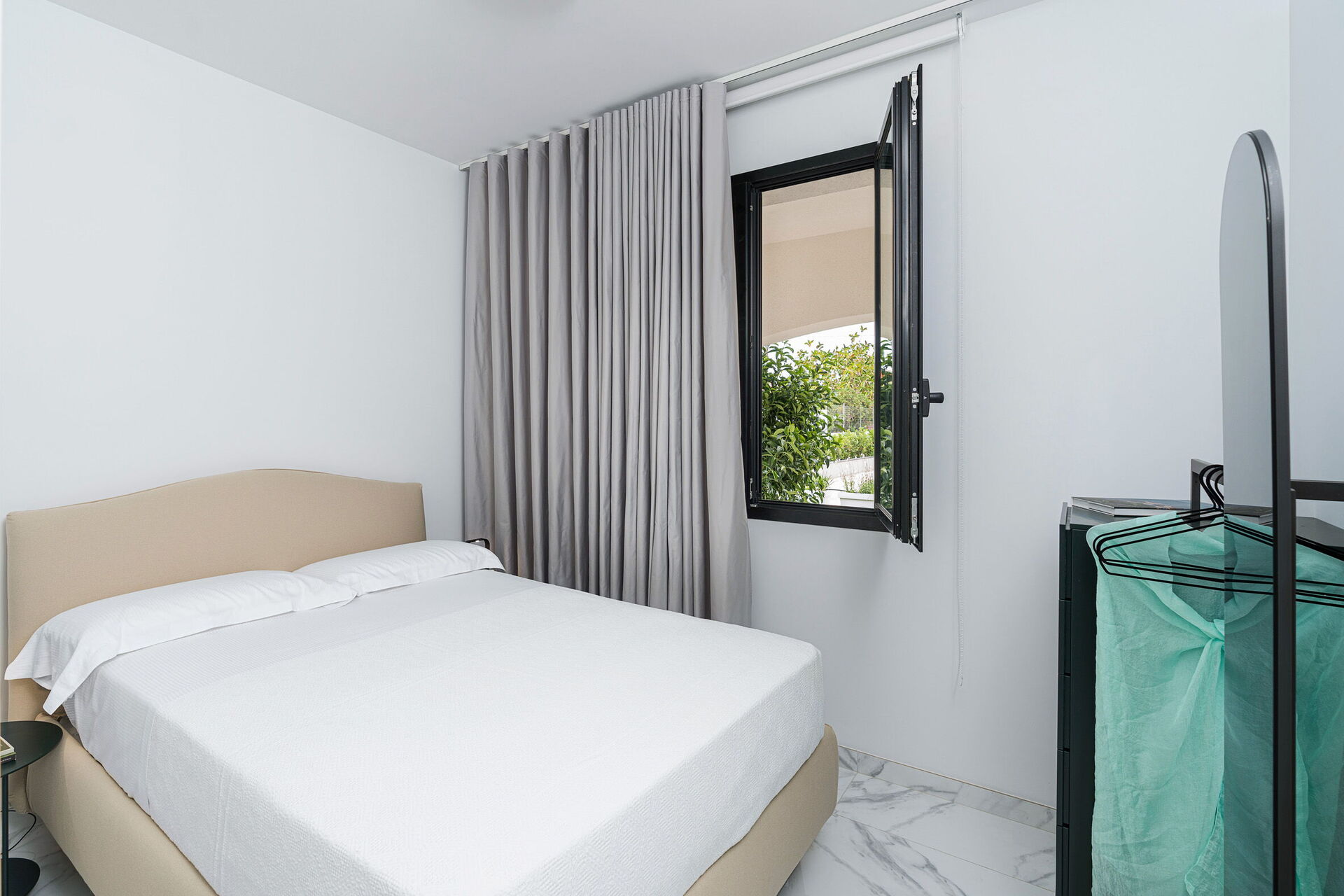 Rez-de-chaussée: séjour (air conditionné, TV) avec coin repas et cuisine (plaque de cuisson, four, congélateur, réfrigérateur, lave-vaisselle, cafetière, grille-pain), 1 chambre double (air conditonné, moustiquaire) avec salle de bain privée avec douche, 1 chambre avec lit double français (dimensions 140 x 200) (air conditionné, moustiquaire), 1 chambre double (air conditionné, moustiquaire), salle de bain avec douche.