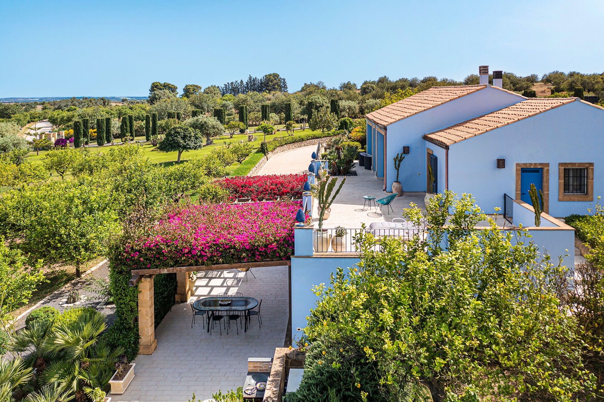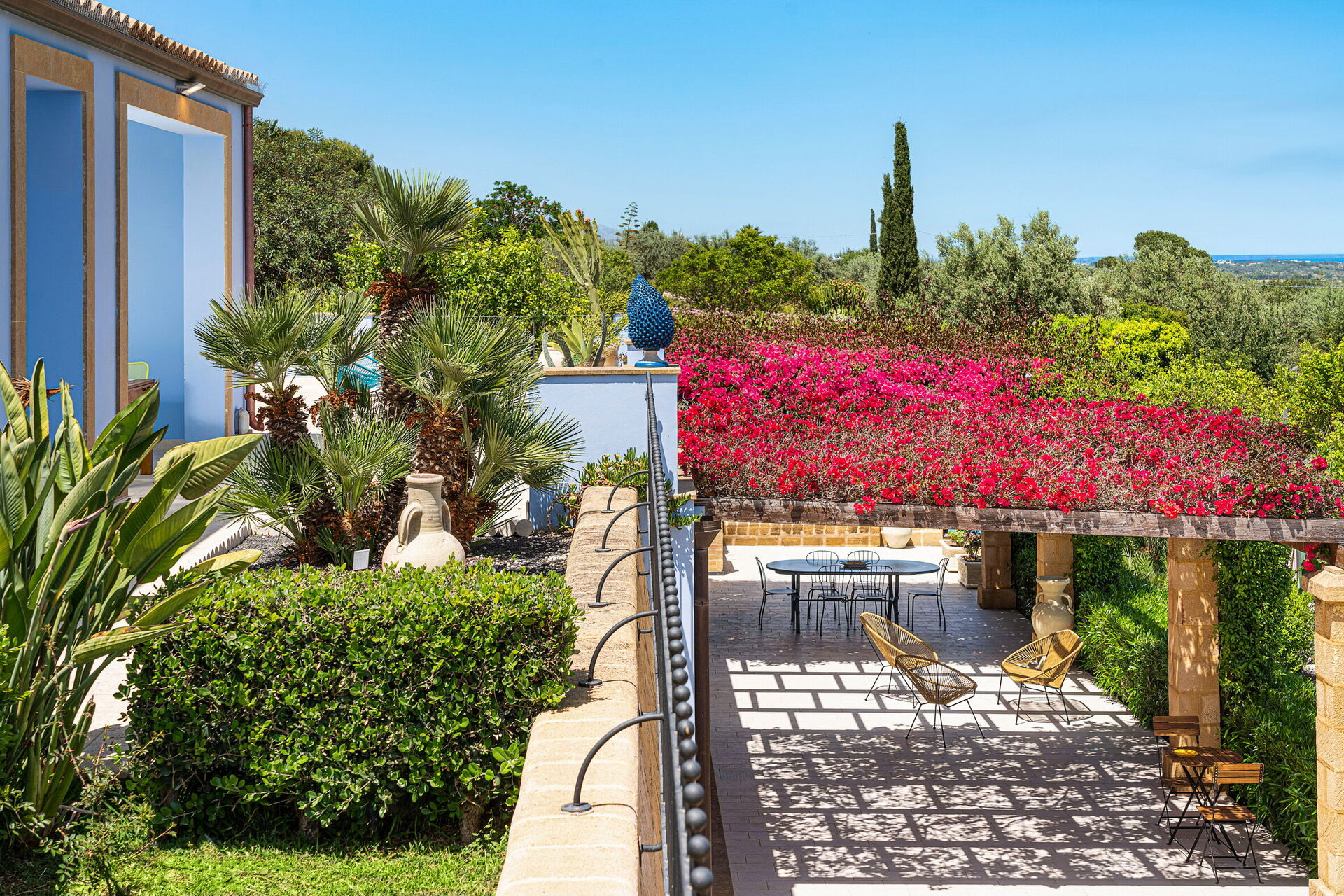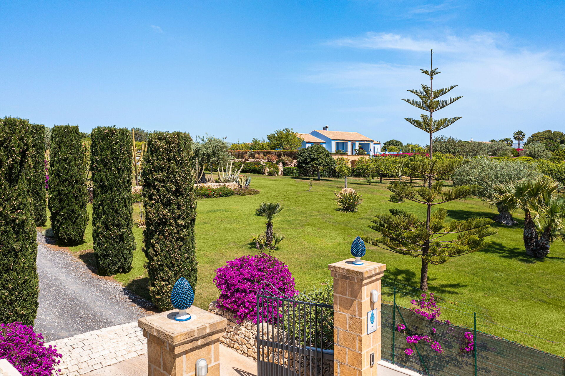 Cette splendide villa est entourée d'un parc naturel composé de vastes étendues de plantes d’agrumes, de cactus et de palmiers; tout cela fait de Pigna Blue l'endroit idéal pour celles et ceux qui souhaitent passer des vacances confortables et relaxantes à quelques kilomètres seulement de la magnifique mer sicilienne!