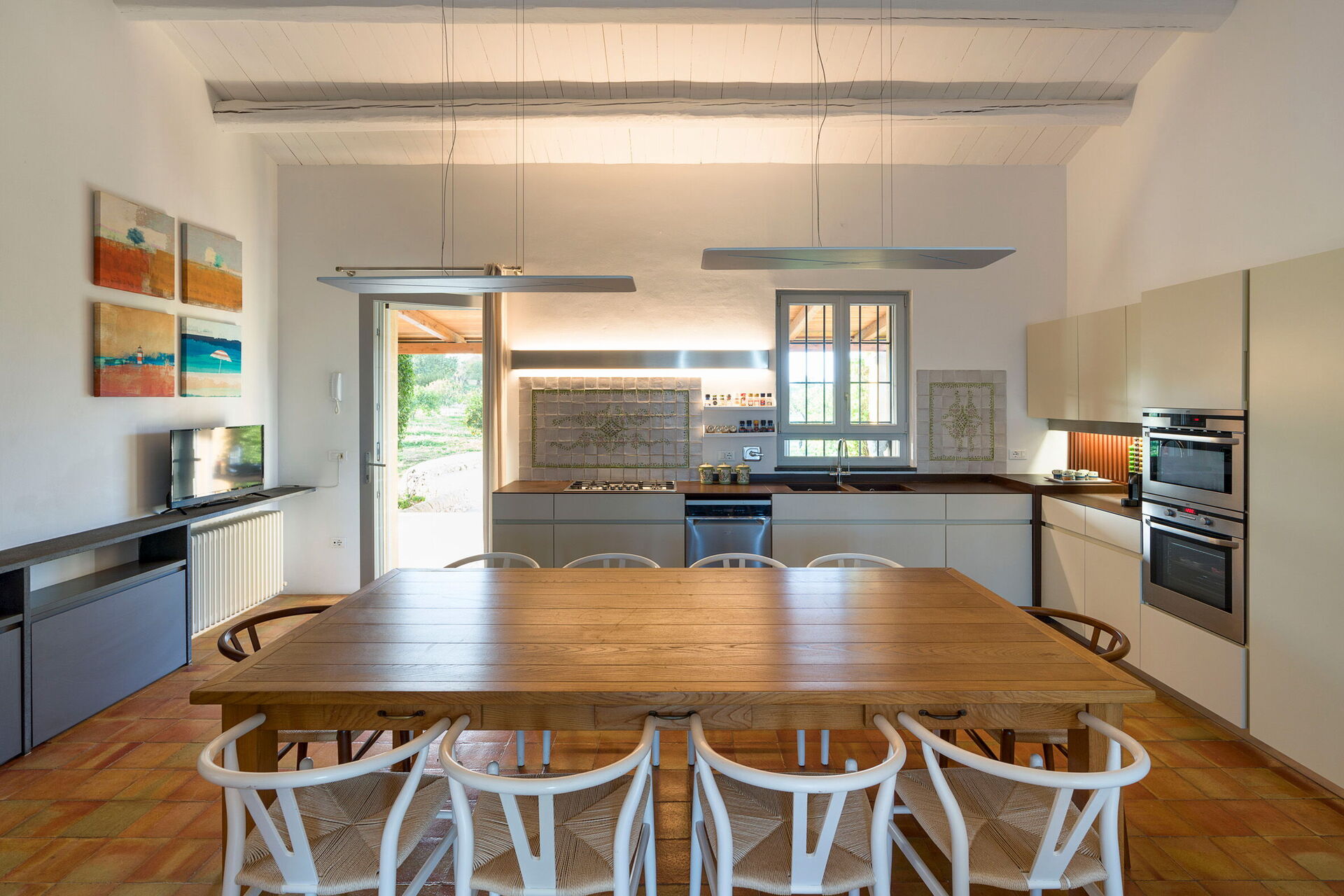 - terrasse équipée d'une table et de chaises pour les repas en plein air