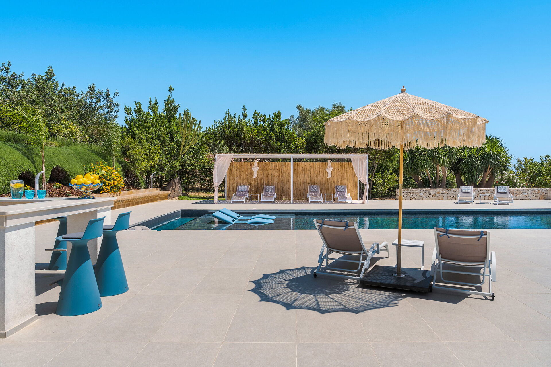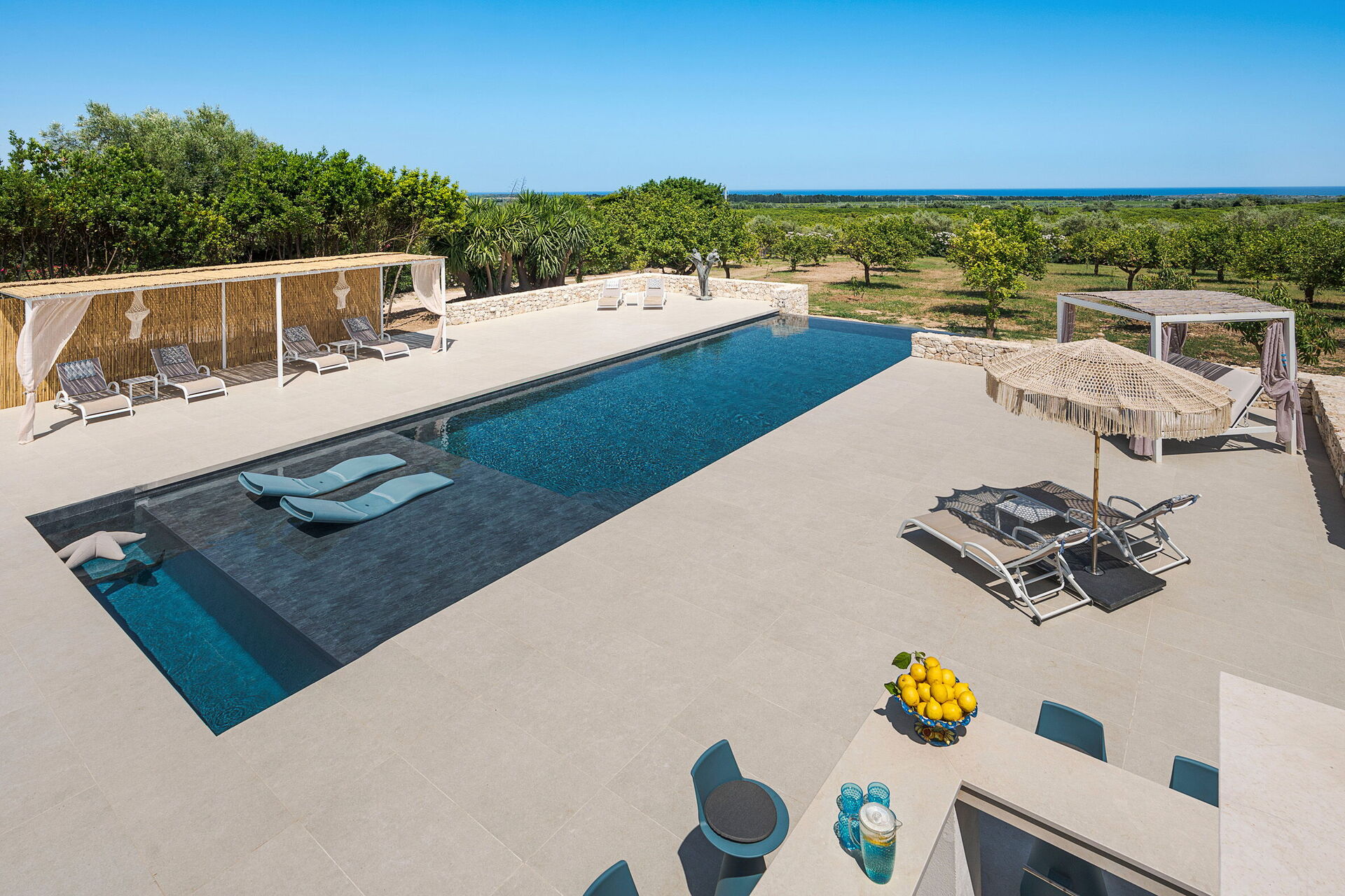 Pigna Blue est une magnifique villa avec piscine privée à louer pour des vacances en Sicile: elle est située dans une zone tranquille et ensoleillée à quelques kilomètres de la célèbre ville de Noto, une ville baroque ancienne et évocatrice au sud de Syracuse.
