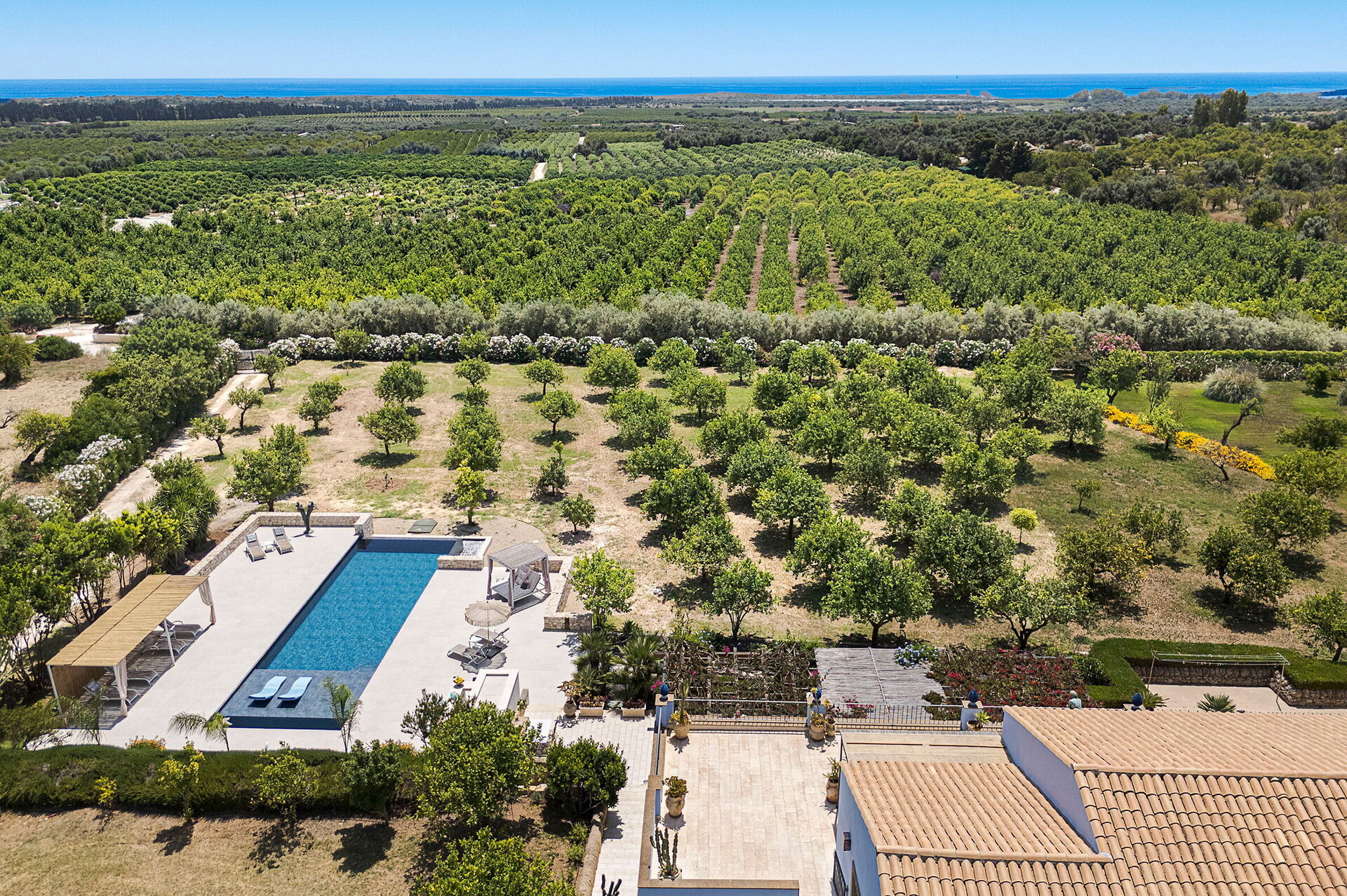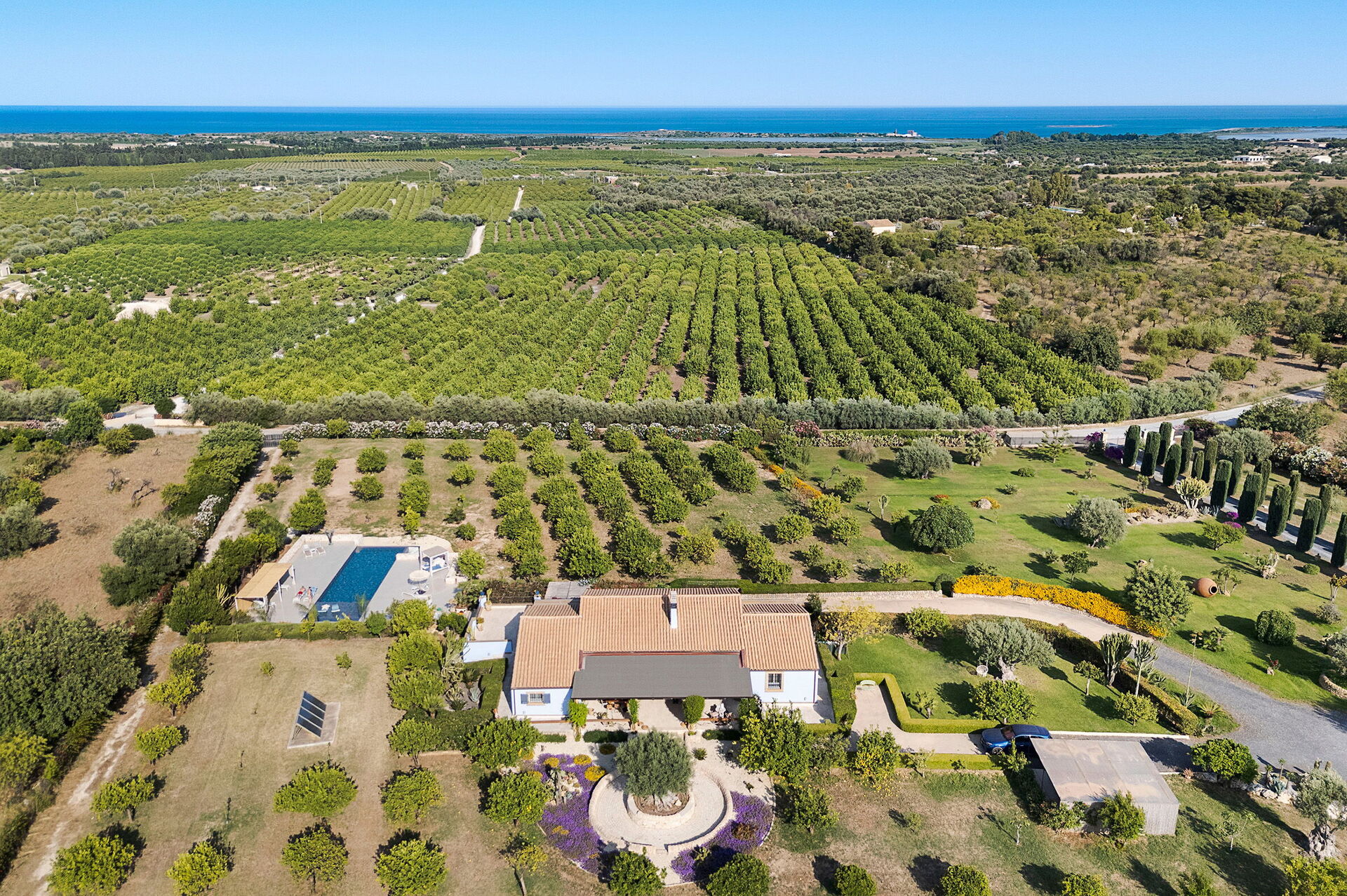Distances: mer (plage de sable) à 6 km; Noto (commerces en tout genre, mer) à 9 km, Avola à 15 km, Marzamemi à 15 km, Fontane Bianche à 25 km, Syracuse à 40 km, Ragusa Ibla à 52 km, Catane (aéroport) à 92 km, Taormina à 145 km, Parc de l'Etna à 153 km.