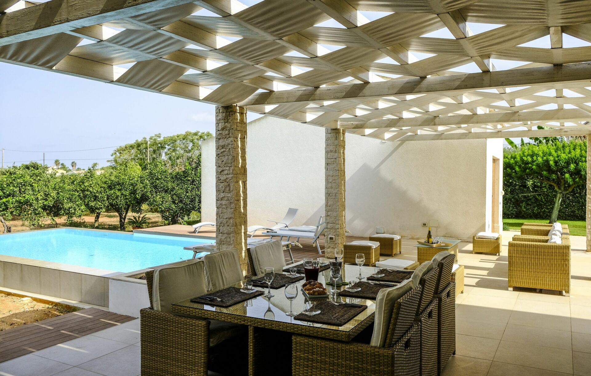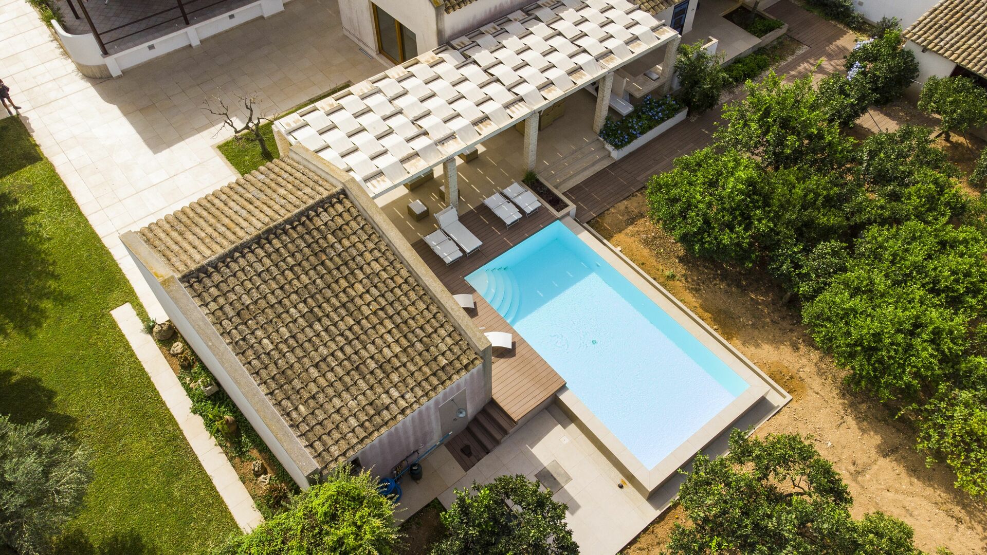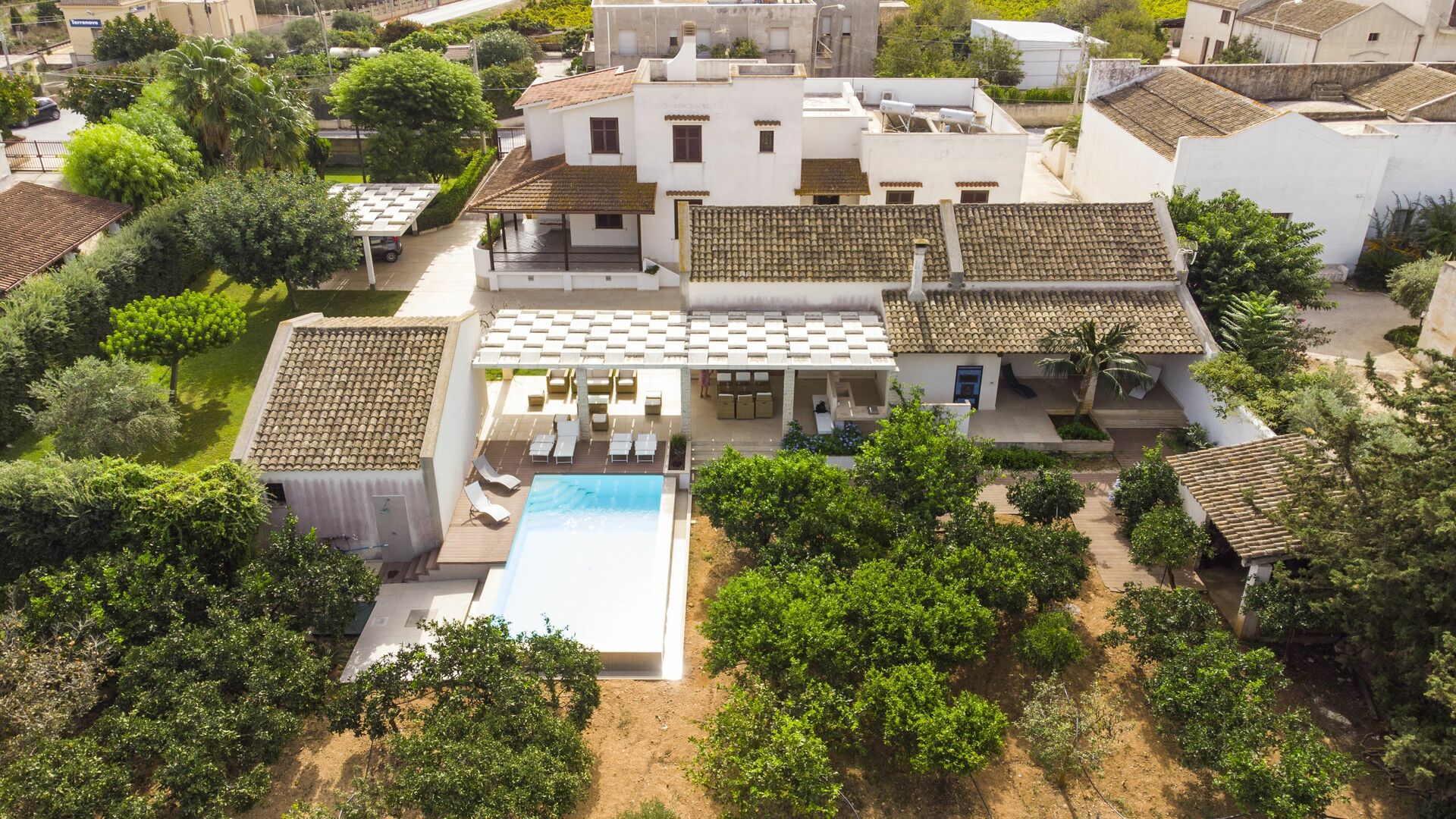 La maison est entourée d'une plantation d'agrumes parfumée. La piscine et le patio sont parfaits pour passer d'agréables moments de détente en plein air.