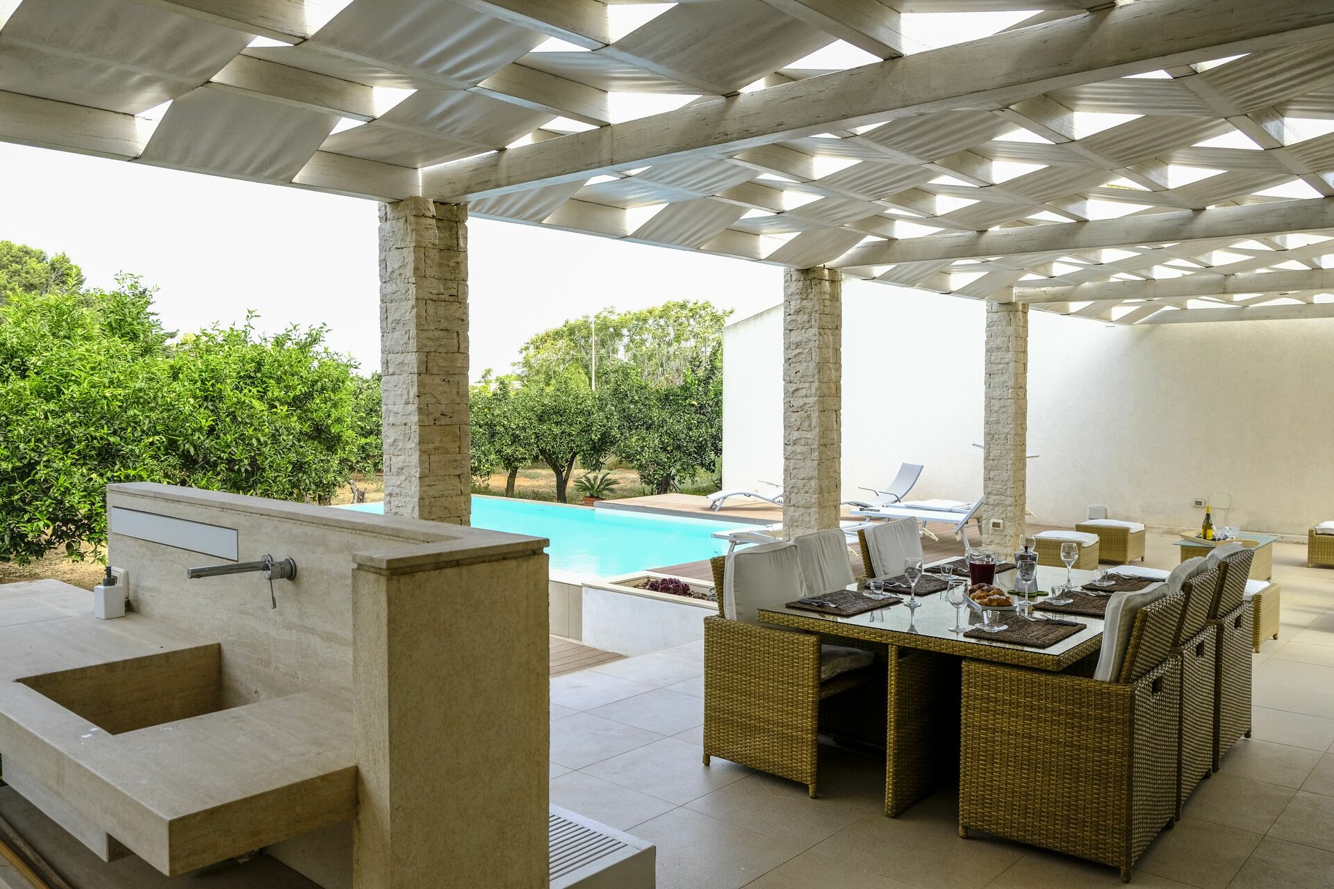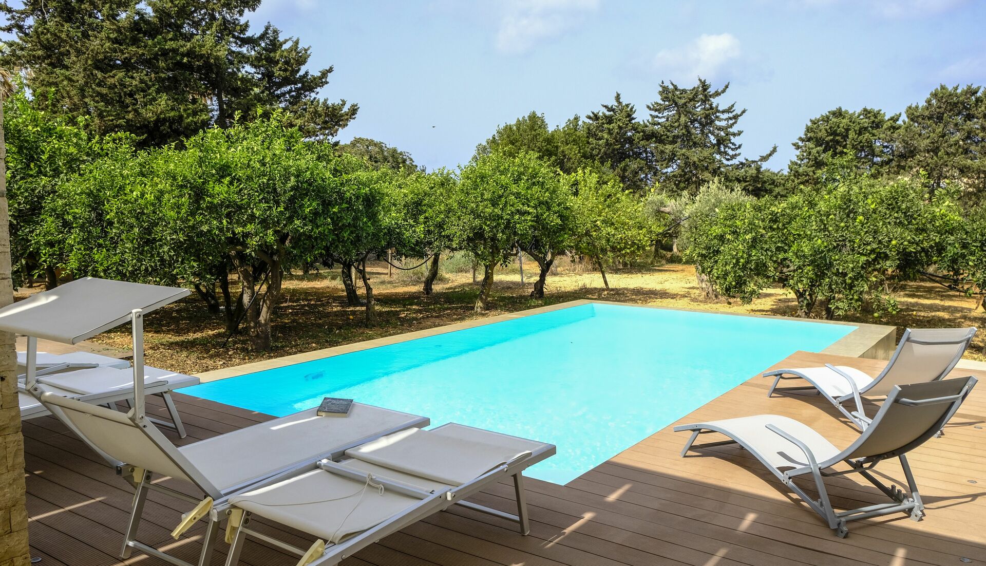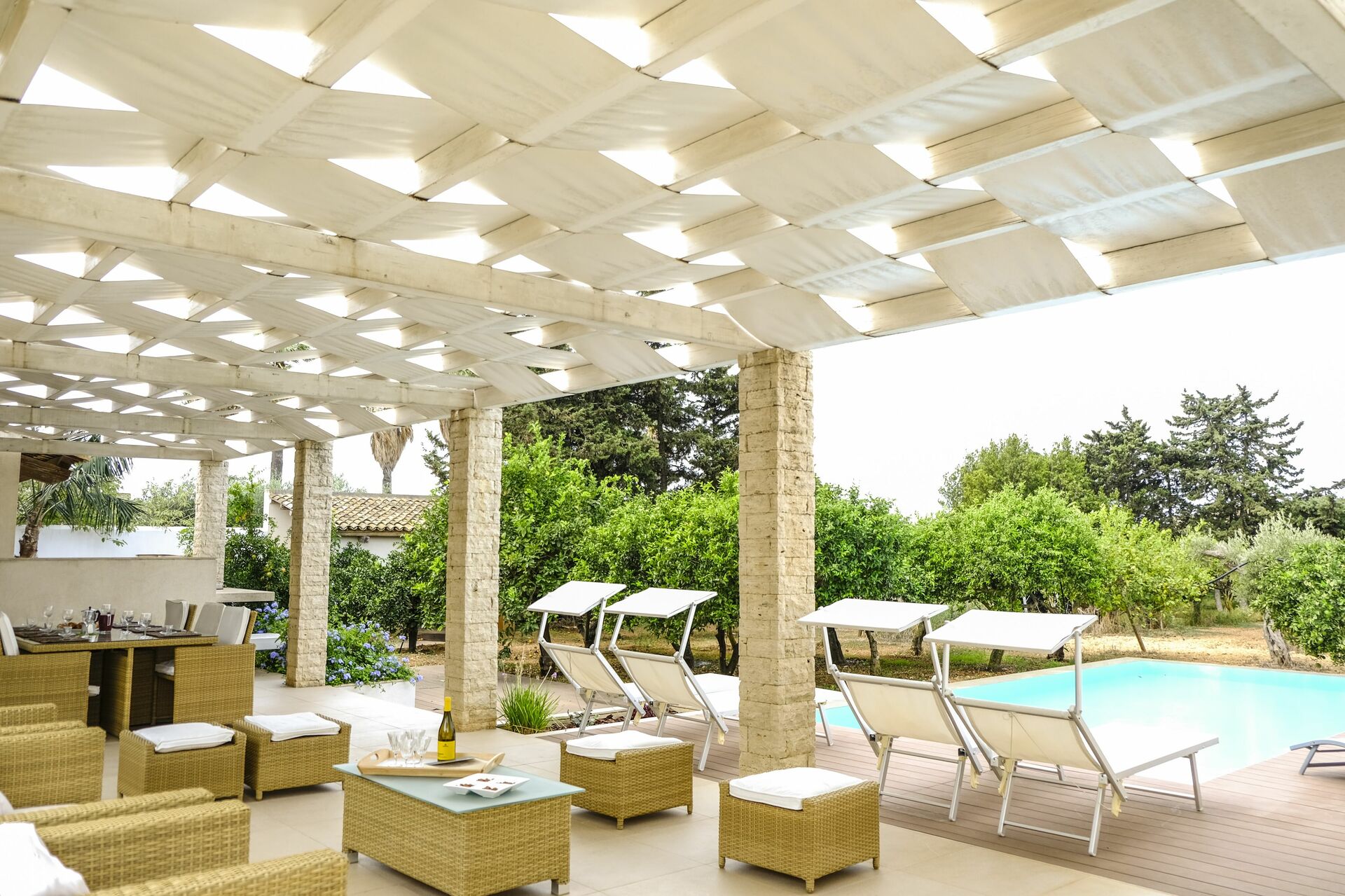 La maison est entourée d'une plantation d'agrumes parfumée. La piscine et le patio sont parfaits pour passer d'agréables moments de détente en plein air.