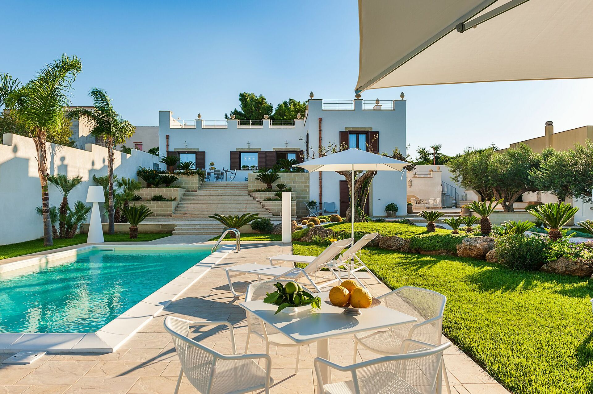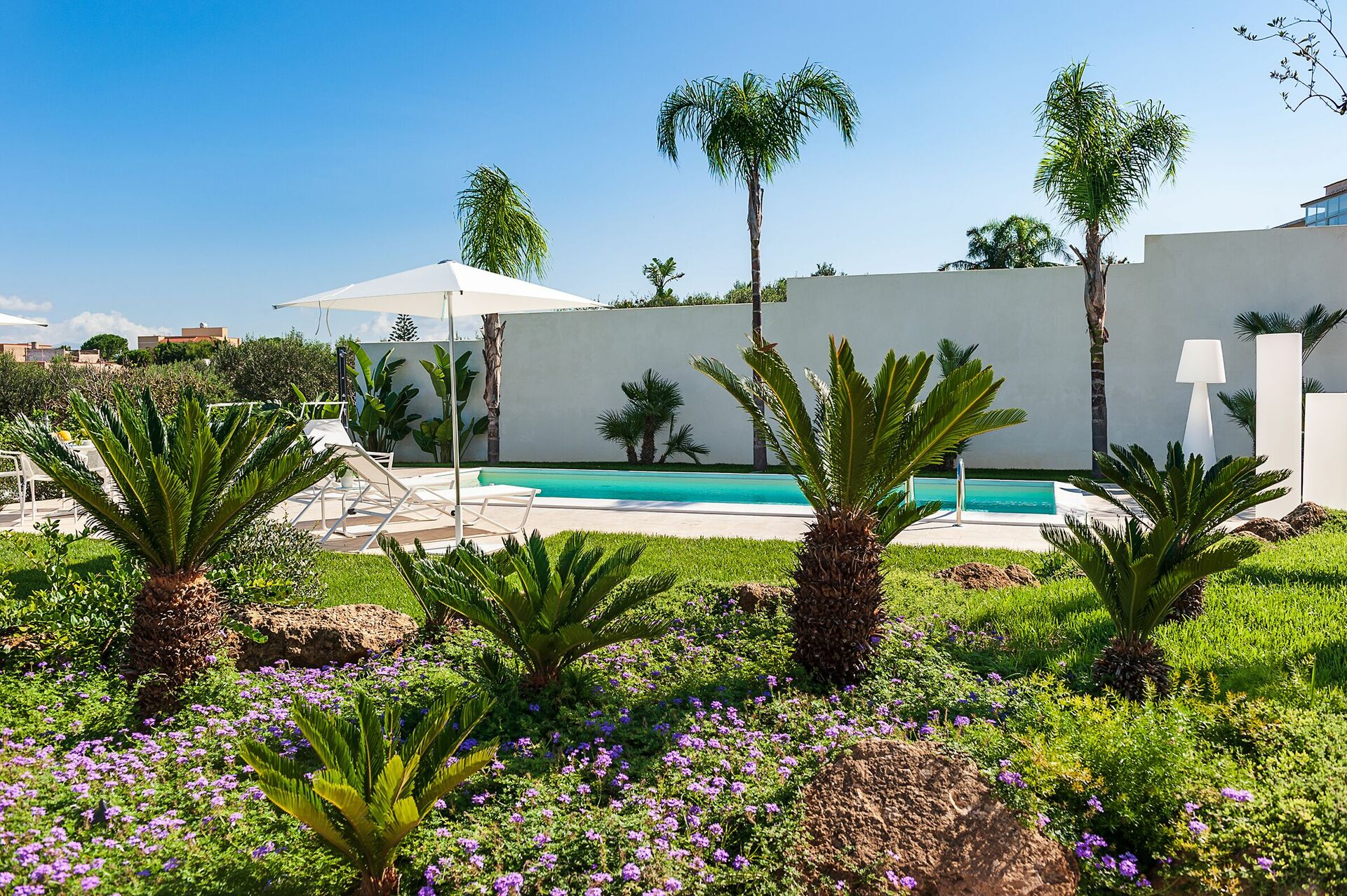 Extérieurs: Terrasses, jardin, piscine privée, solarium.