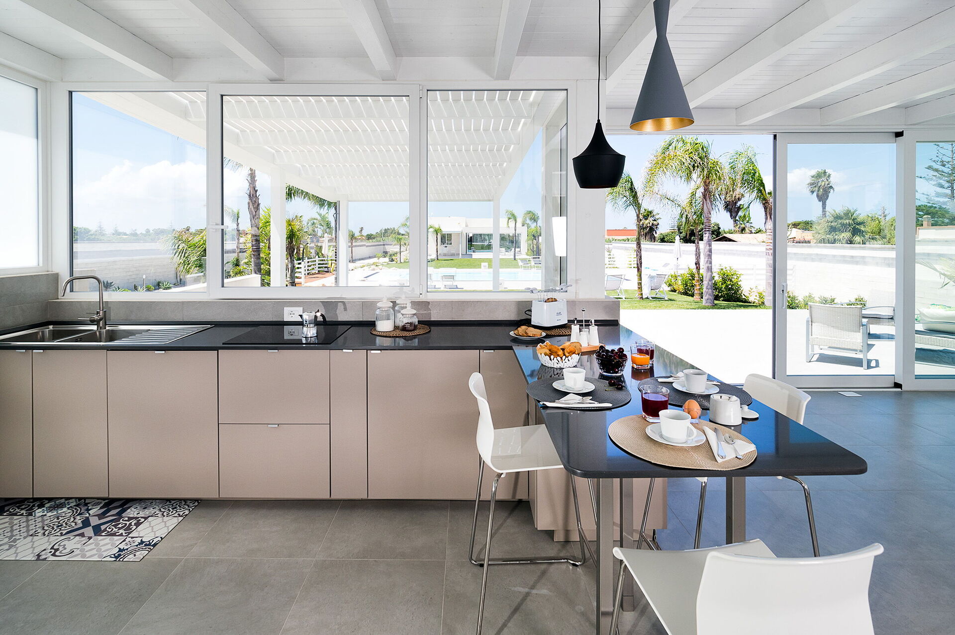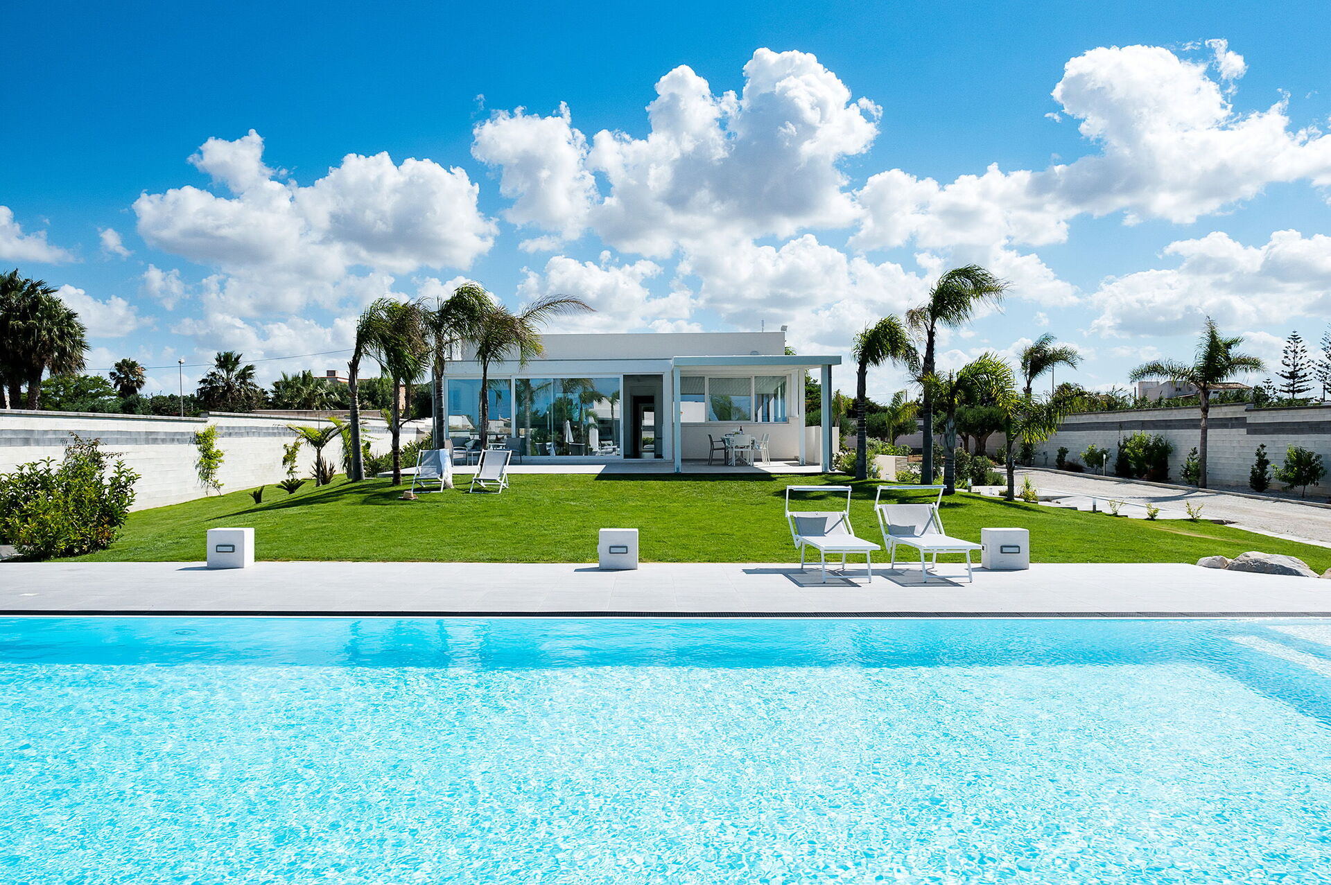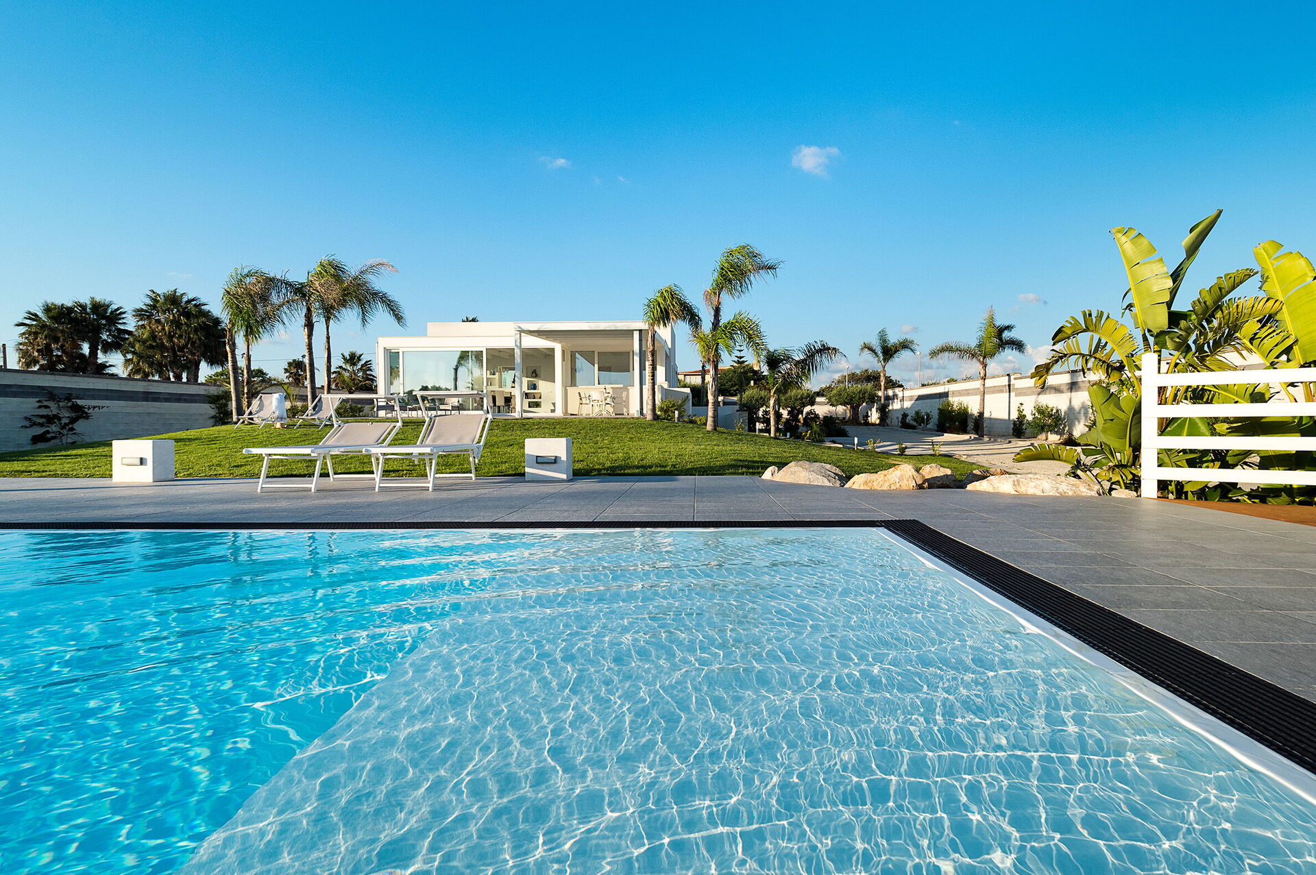Diantha est une villa moderne avec piscine commune pour des vacances en Sicile.