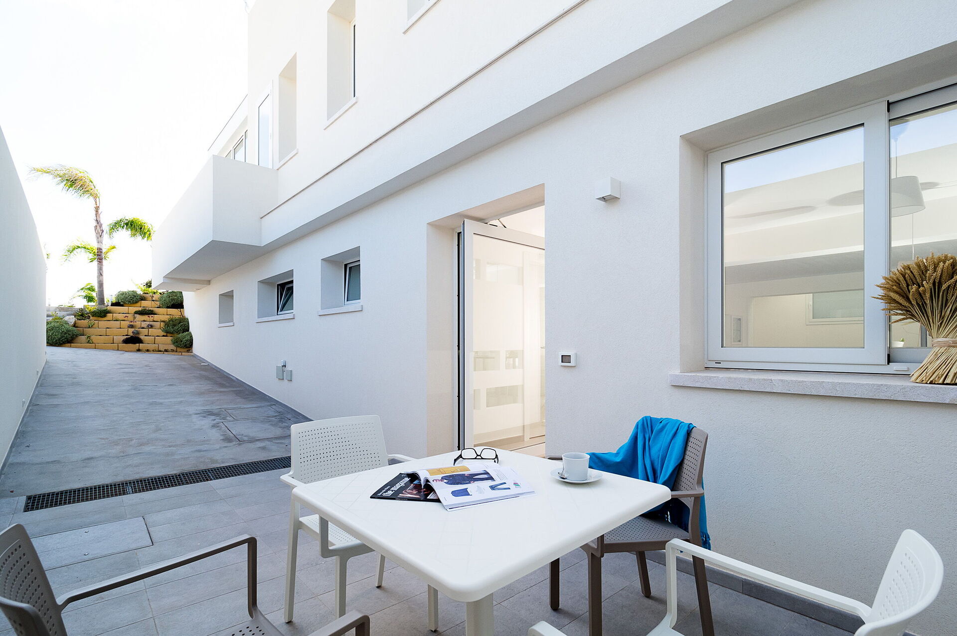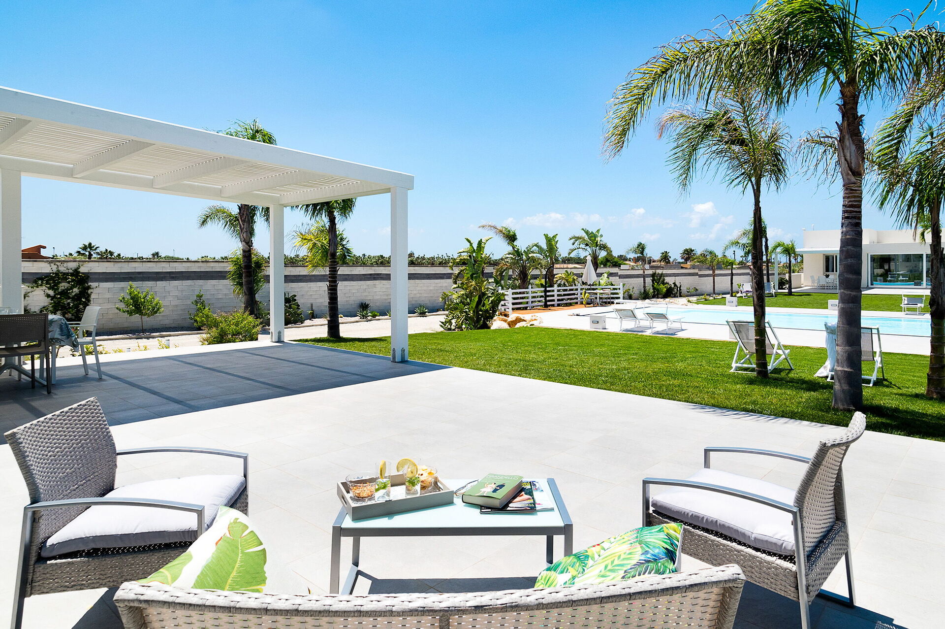 La résidence dispose d'une véranda équipée pour les repas en plein air et, avec les autres espaces extérieurs, elle garantit des moments de détente qui rendront vos vacances en Sicile uniques.