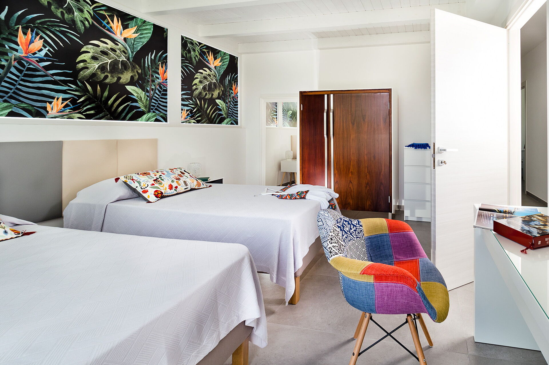 La villa est de construction récente et s'étend sur deux étages non communicants: elle se compose d'un rez-de-chaussée et d'un étage inférieur et, grâce à ses 5 chambres, elle peut accueillir confortablement jusqu'à 10 personnes.