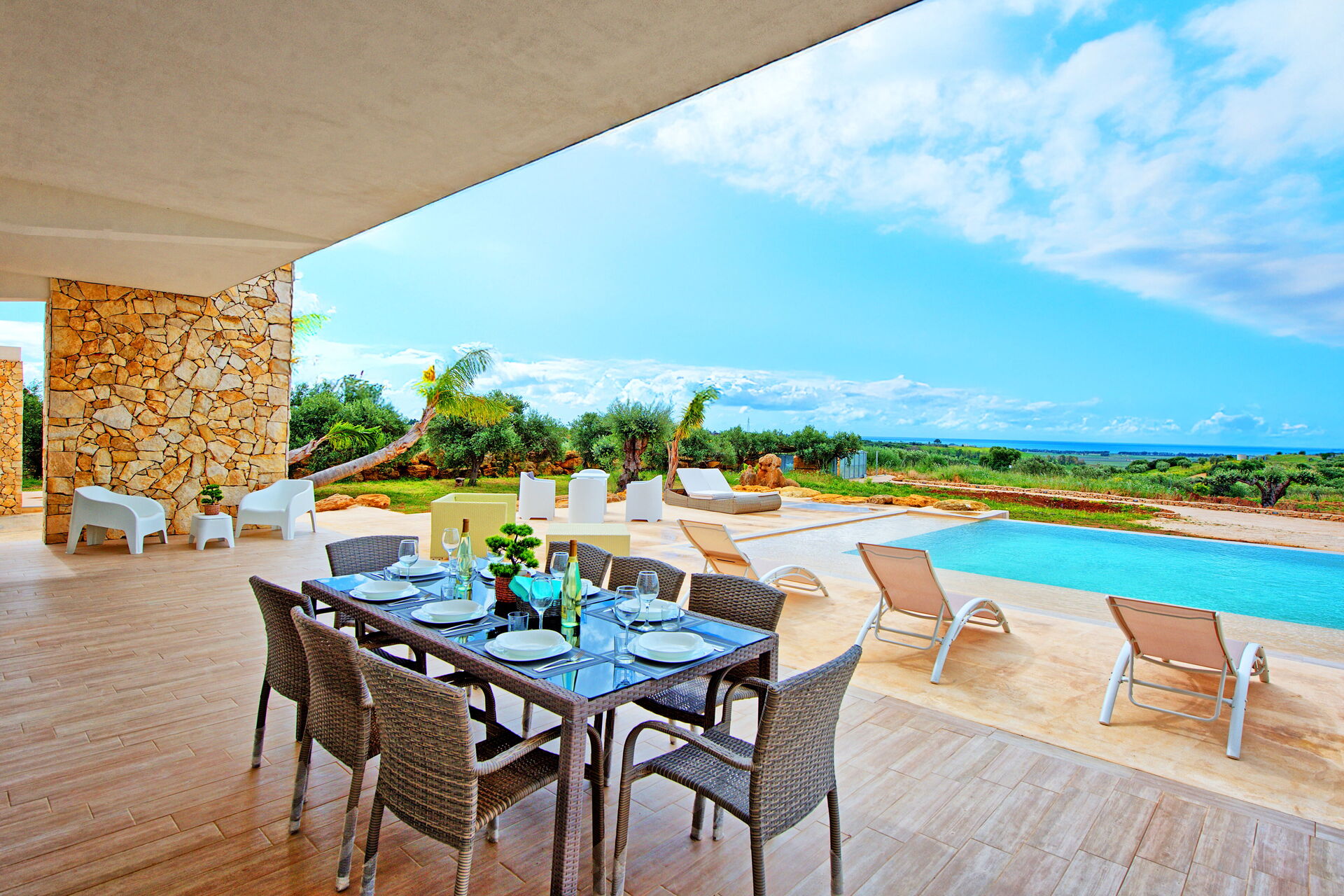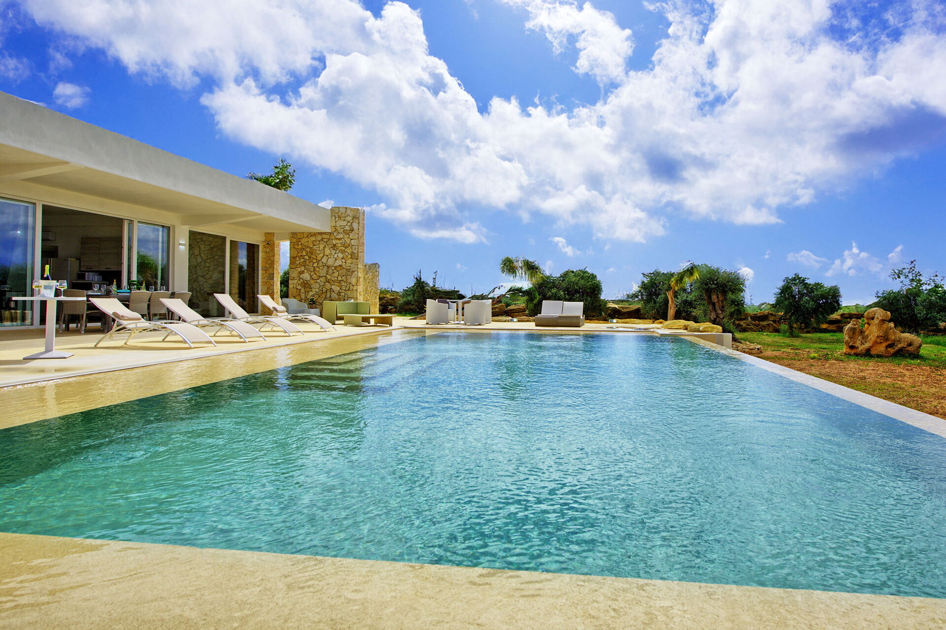 Villa Infinito est une villa moderne avec piscine privée à louer pour des vacances en Sicile. Elle est située dans un emplacement calme et ensoleillé, aux environs de Menfi et à quelques kilomètres de la mer: à proximité, Selinunte et Sciacca méritent également une visite.