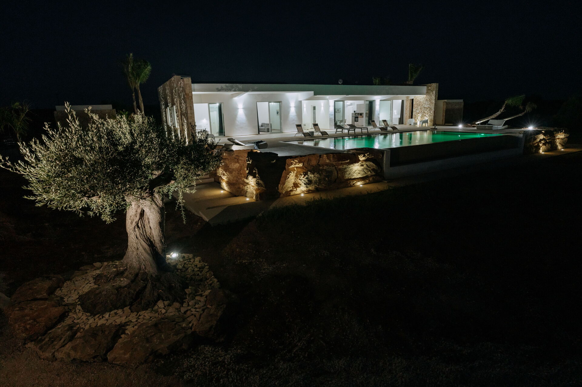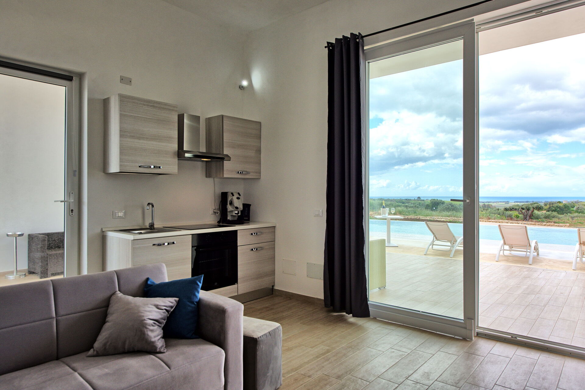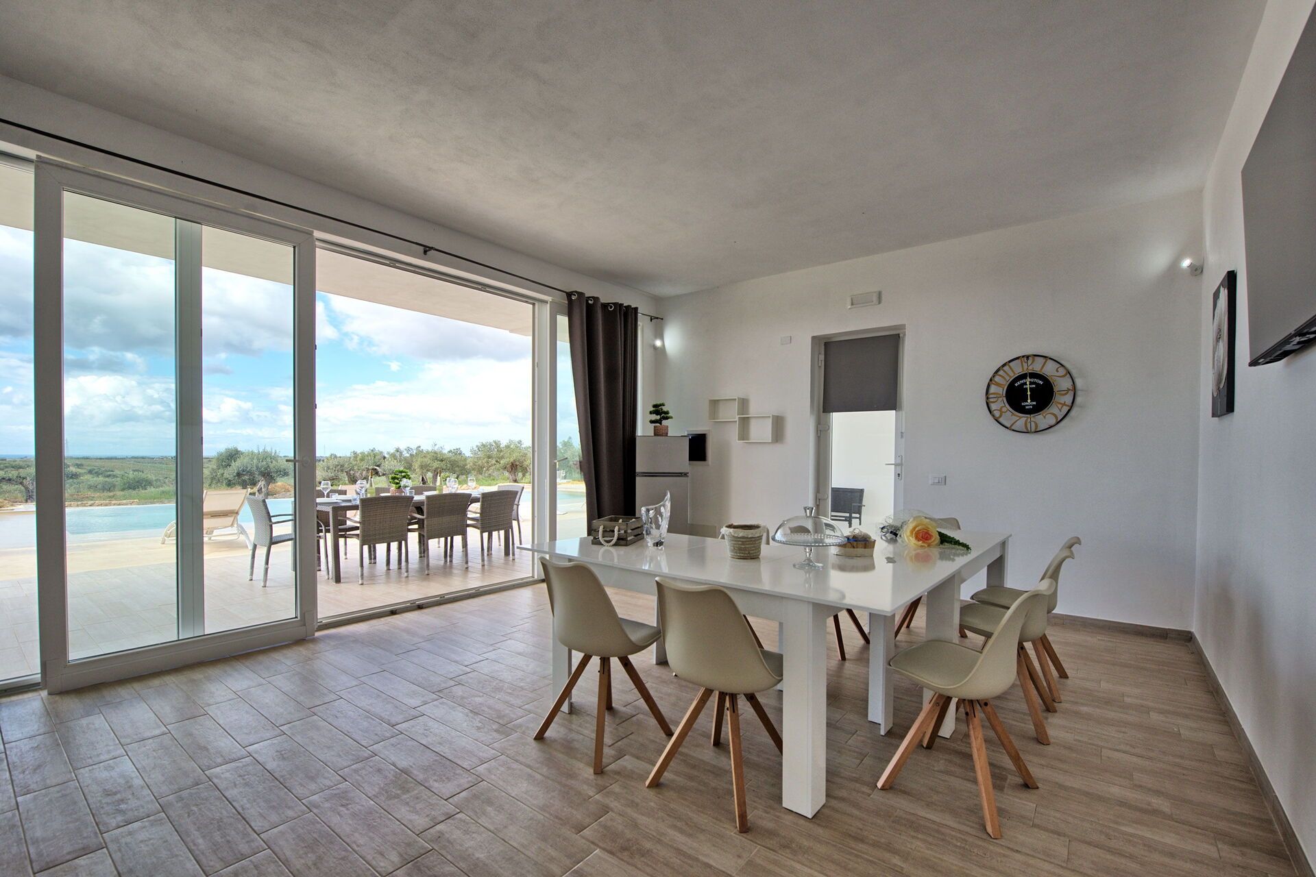 Villa Infinito propose des intérieurs accueillants et lumineux, décorés avec goût et conçus pour répondre aux exigences de la vie contemporaine. De grandes baies vitrées permettent de profiter, même depuis l'intérieur, d'une vue fantastique sur la campagne, la mer et sur les superbes couchers de soleil.