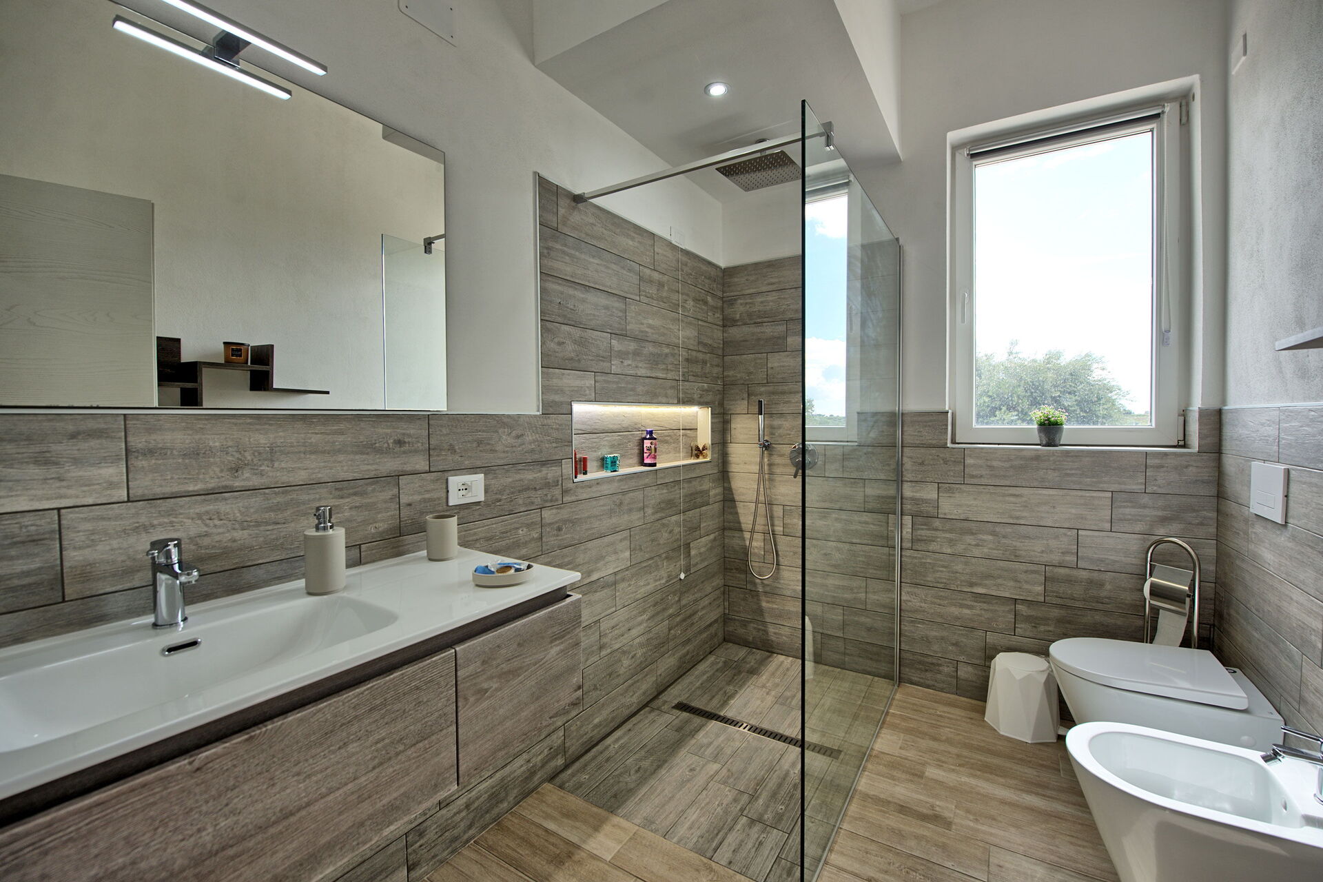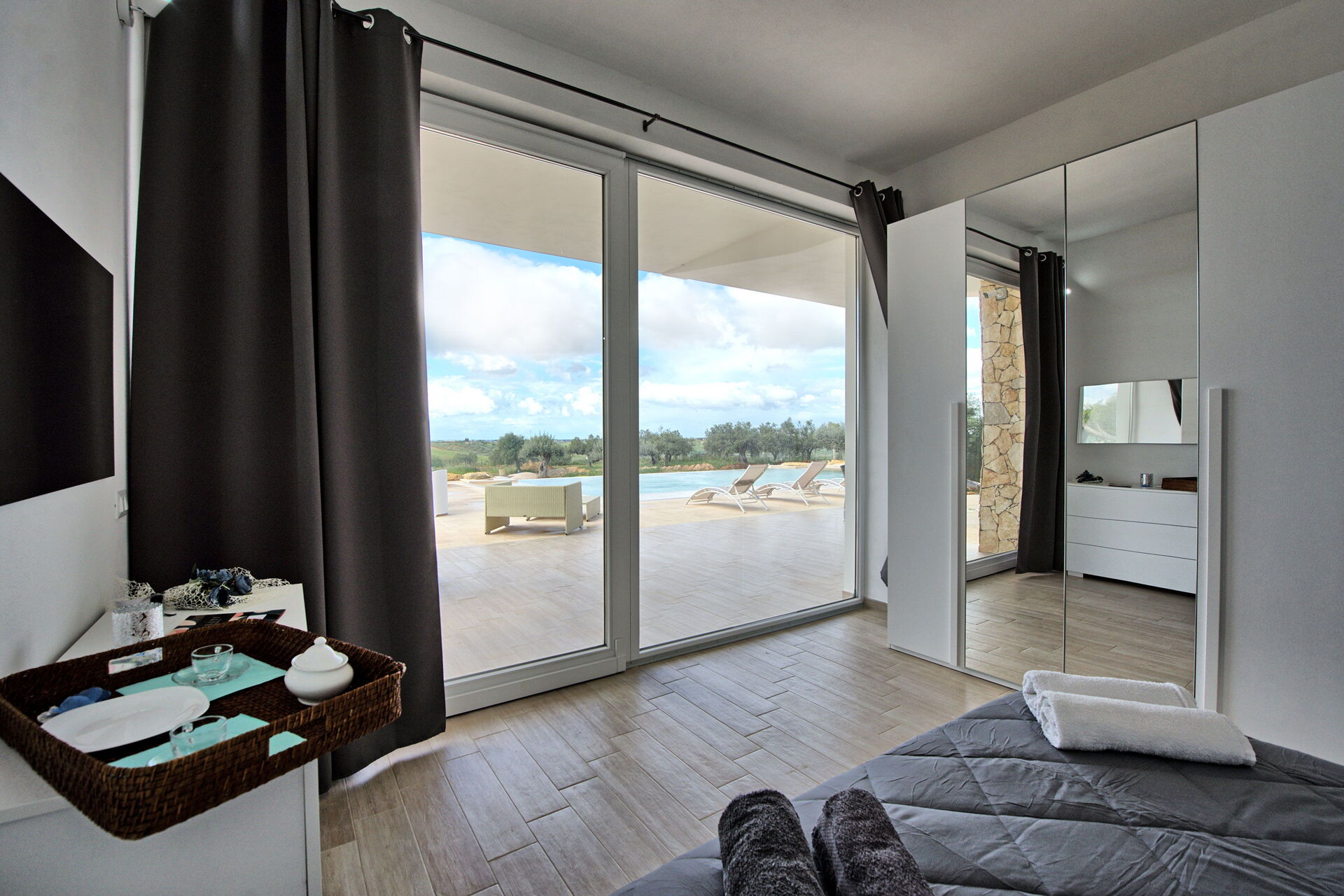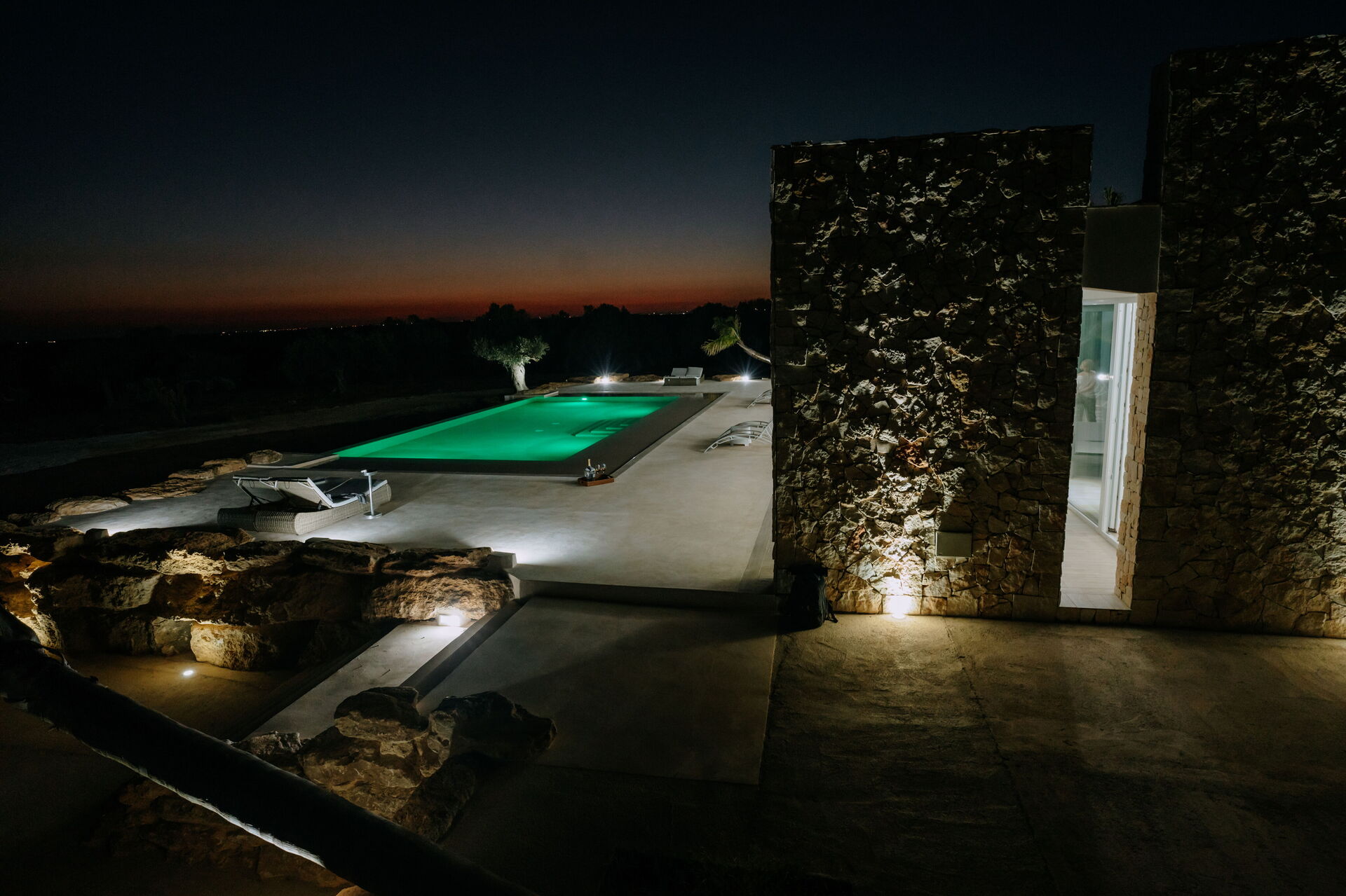 Villa Infinito propose des intérieurs accueillants et lumineux, décorés avec goût et conçus pour répondre aux exigences de la vie contemporaine. De grandes baies vitrées permettent de profiter, même depuis l'intérieur, d'une vue fantastique sur la campagne, la mer et sur les superbes couchers de soleil.