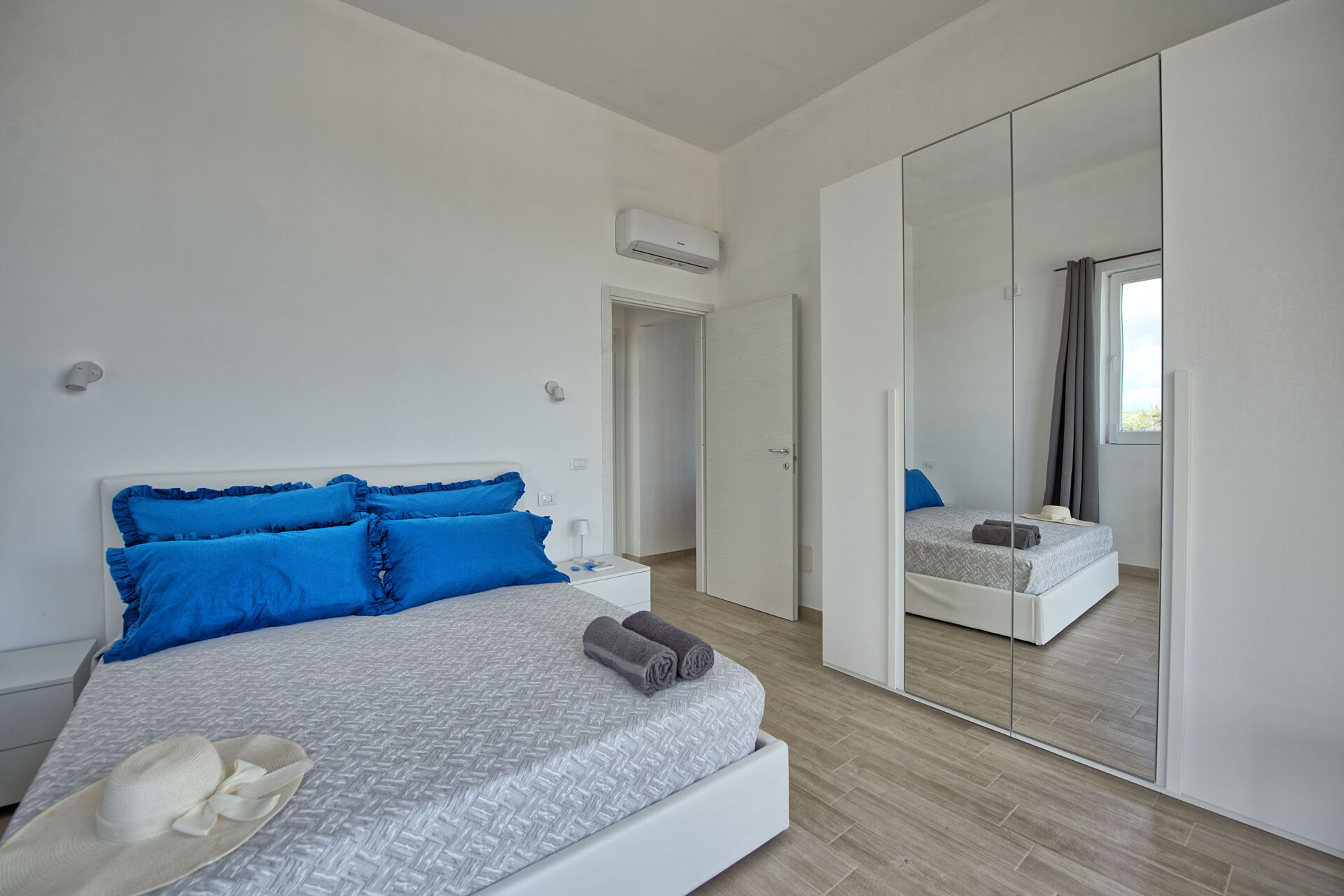 Unglaublich schöne und durchdachte Villa mit fantastischem Meerblick. Es gibt 2 Wohneinheiten, jeweils 2 Schlafzimmer und jeweils 1 Bad. Im Aussenbereich nochmal 2 Duschen, Toiletten und vor allem einen traumhaften Infinity-Pool und alles super sauber. Das Haus mit seiner Südausrichtung ist so toll konzipiert, dass man immer irgendwo Schatten hat. Es gibt neben den Liegestühlen viele Sitzgelegenheiten ums Haus herum, die wir besonders am Abend viel genutzt haben um gemütlich zusammen zu sitzen. In ca. 10 Minuten kommt man mit dem Auto nach Porto Palo. Sehr einfach zu parken dort und in 15 min. zu Fuß an den Strand „la Solette“ - wunderschön, sauberstes Wasser, nicht überlaufen, keine Autos - einfach toll! Auch die Altstadt von Sciacca mit ihren kleinen Gassen und Blick über den Hafen ist wärmstens zu empfehlen. Katia und Ihre Familie hat uns sehr herzlich empfangen, schnell kommuniziert und immer alles möglich gemacht. Sie haben diese Villa selber entworfen und gebaut - unglaublich!